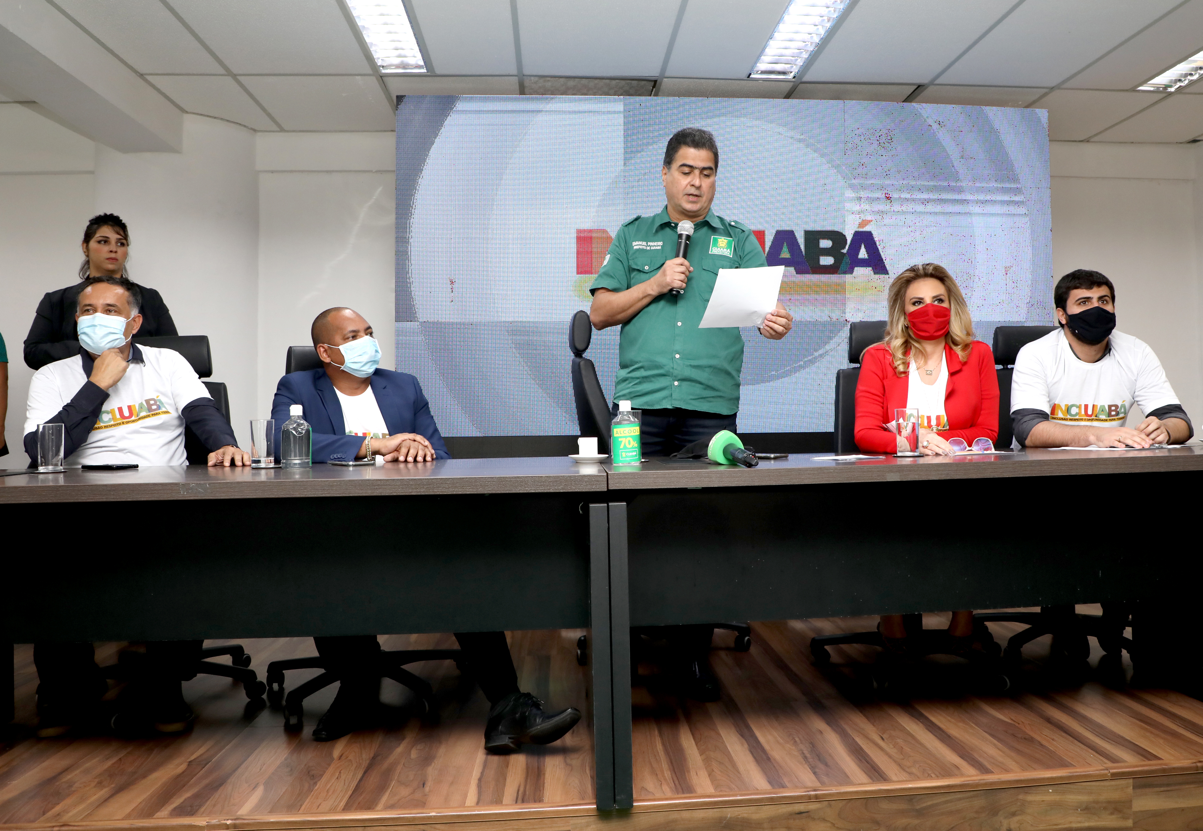 O prefeito de Cuiabá, Emanuel Pinheiro e a primeira-dama Márcia Pinheiro, lançaram na tarde desta quinta-feira (22), no auditório do Palácio Alencastro, o projeto Incluiabá - Inclusão, Respeito e Oportunidade. A iniciativa é pioneira em todo o país no que é atinente à criação de vagas e ingresso ao mercado de trabalho da população LGBTQIA+, a pessoa com deficiência, imigrantes e outros grupos sociais.
