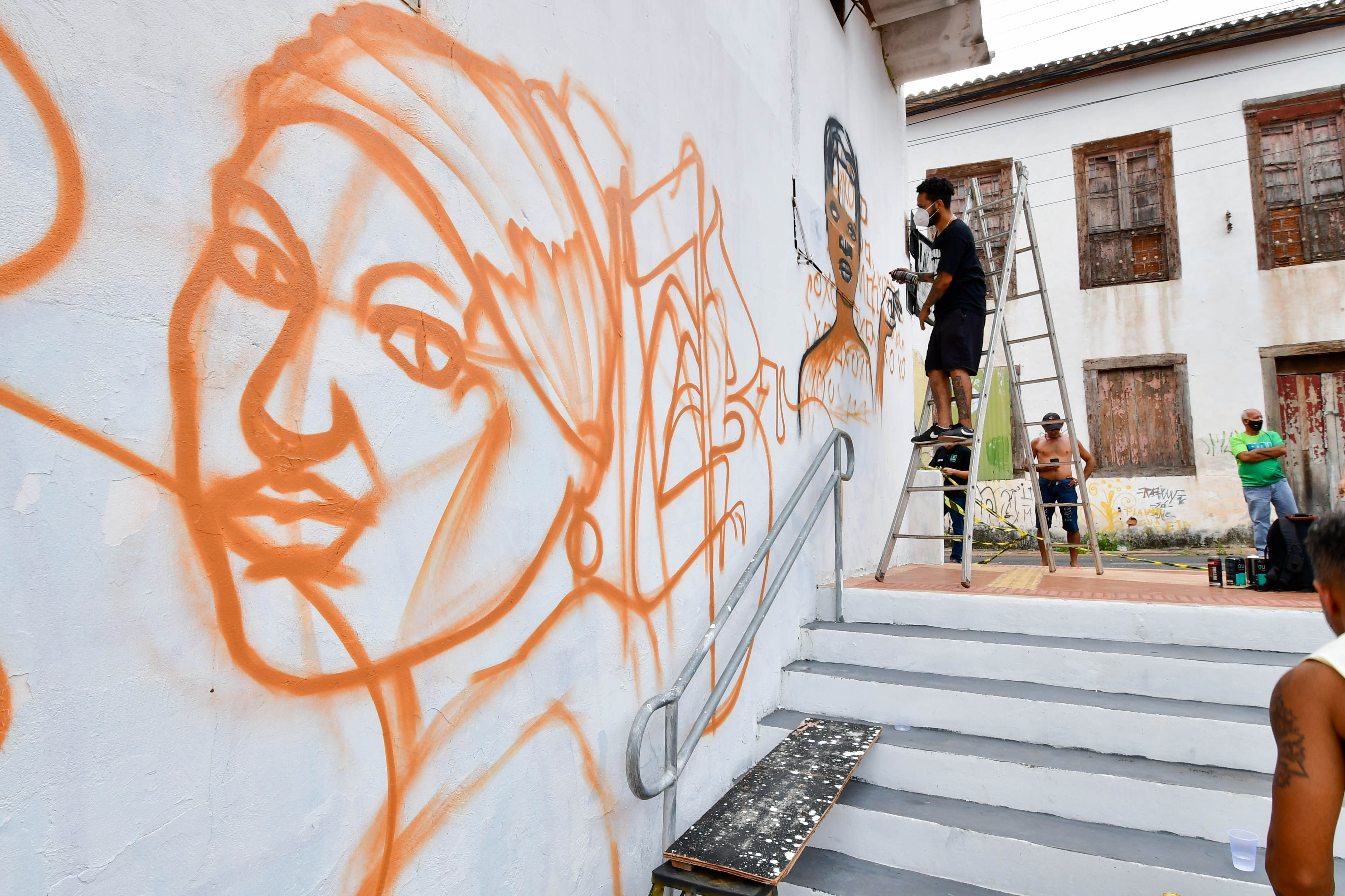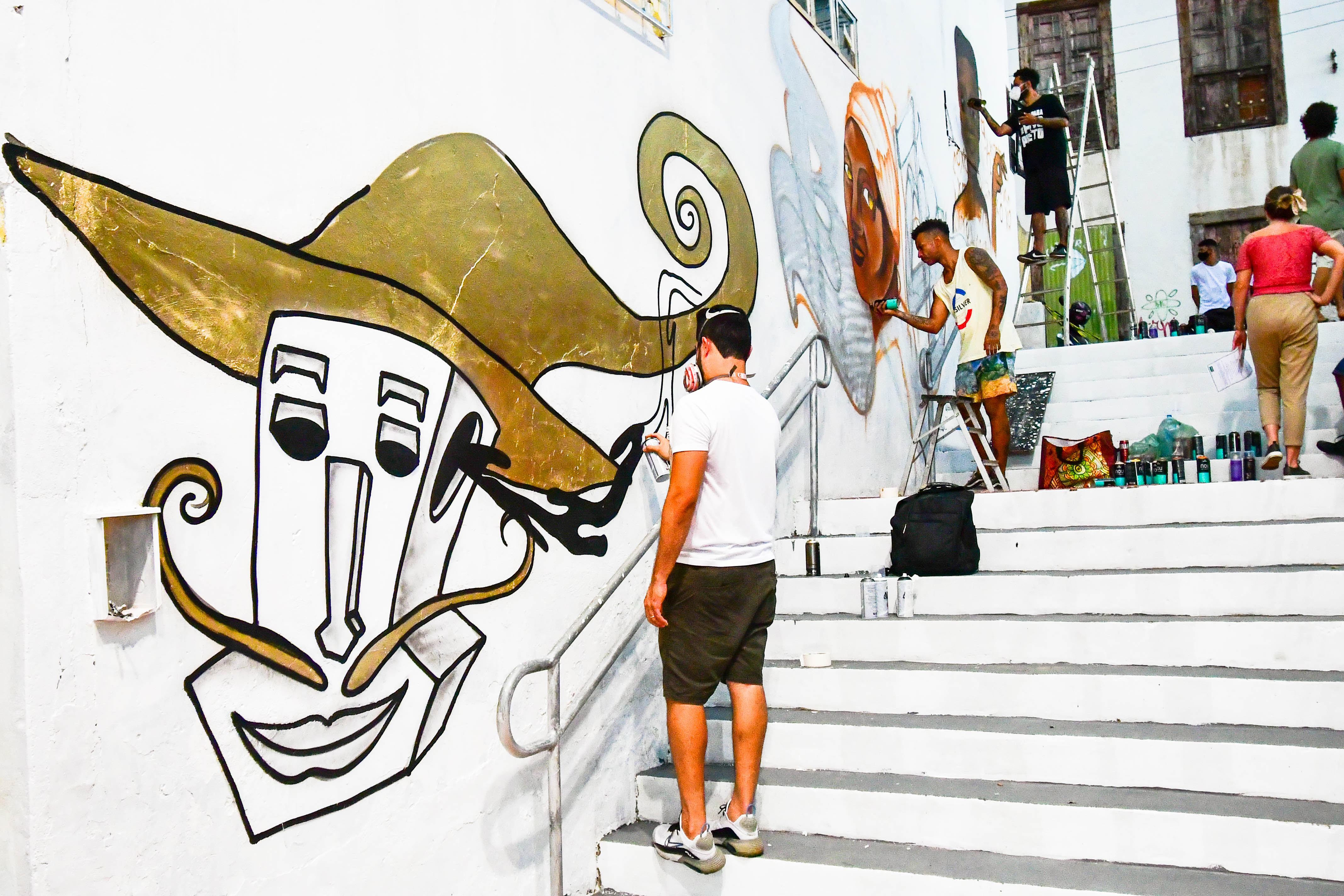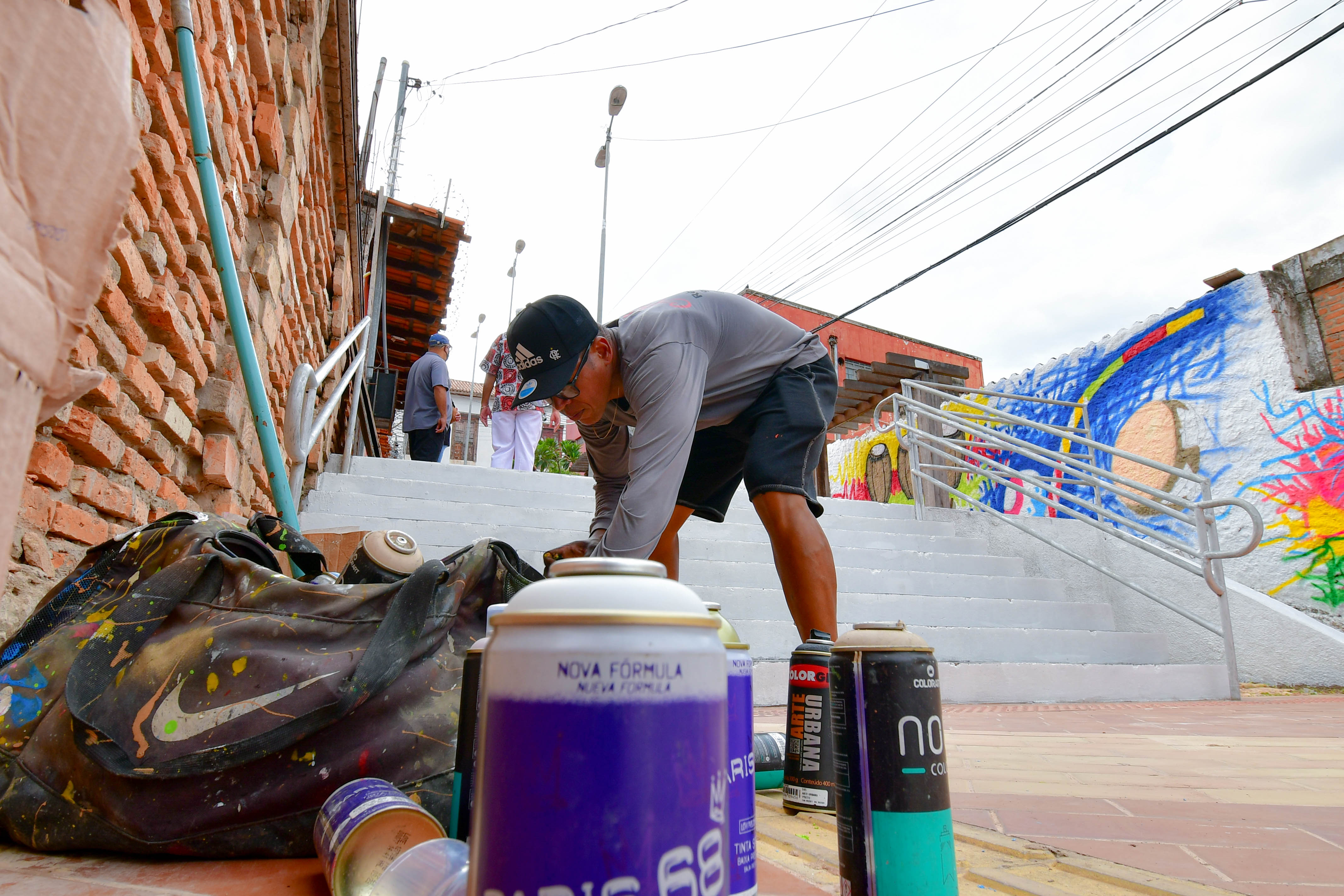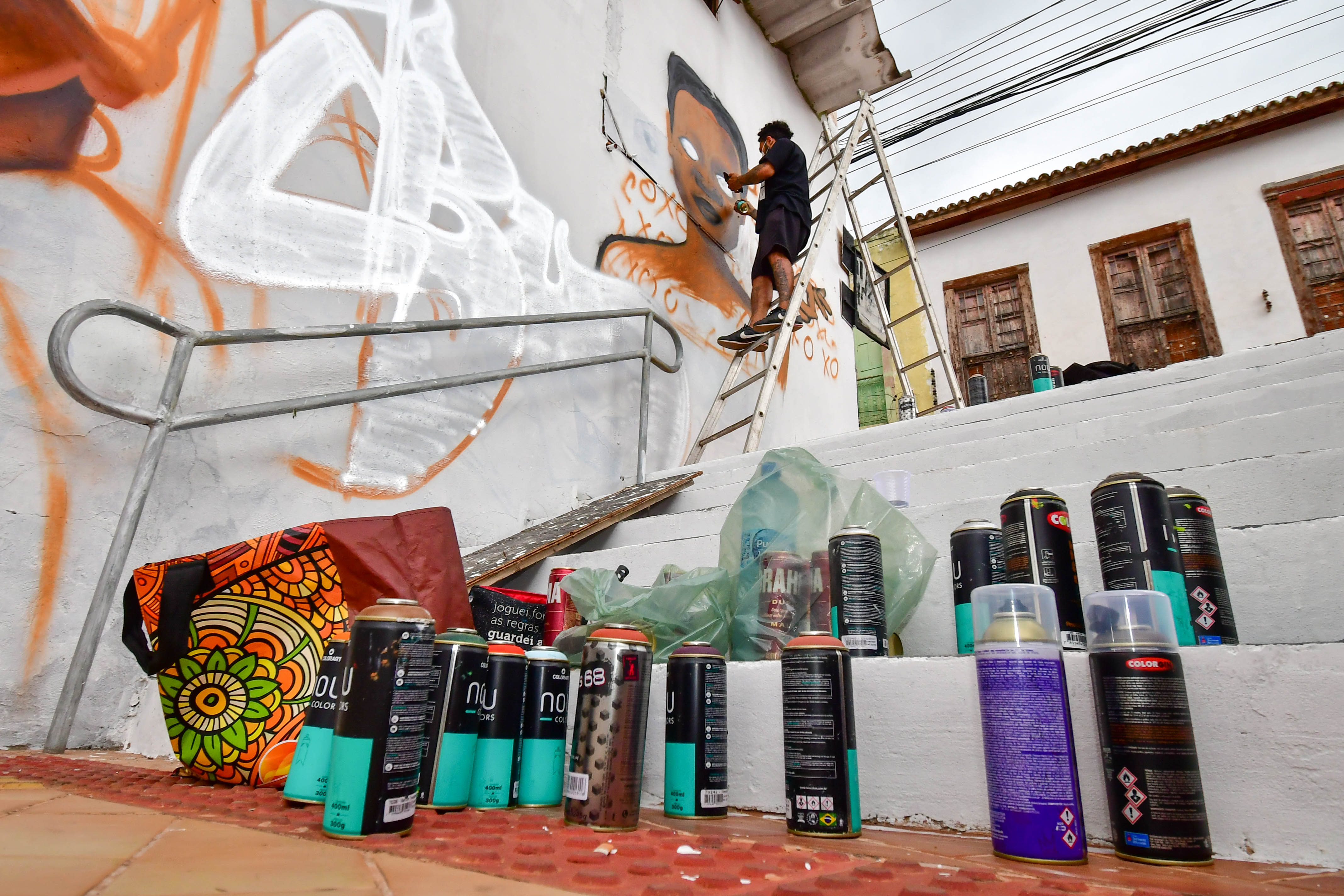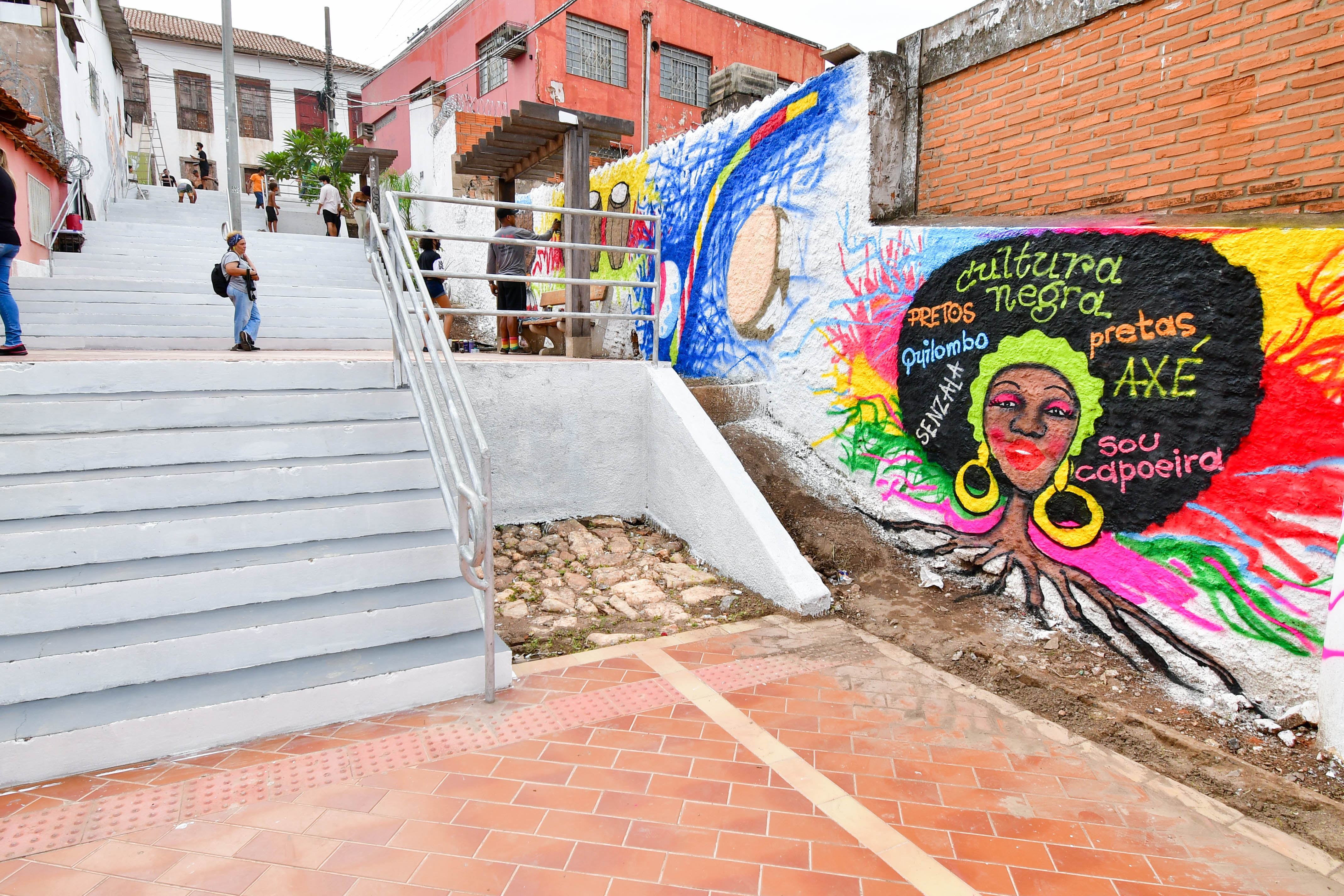 A escadaria do Beco Alto, localizado no Centro Histórico de Cuiabá, foi ponto de encontro no último sábado (13) de artistas plásticos e grafiteiros. A ação, uma homenagem no mês em que celebra-se o dia dac Consciência Negra (20 de novembro), contou ainda com muita música, dança, capoeira e poesias. Assim foi o encontro ‘Arte na Rua: O Último Tom da Cor', realizado pela Prefeitura de Cuiabá, por meio da Secretaria de Cultura, Esporte e Lazer, e o Museu da Imagem e Som (Misc).