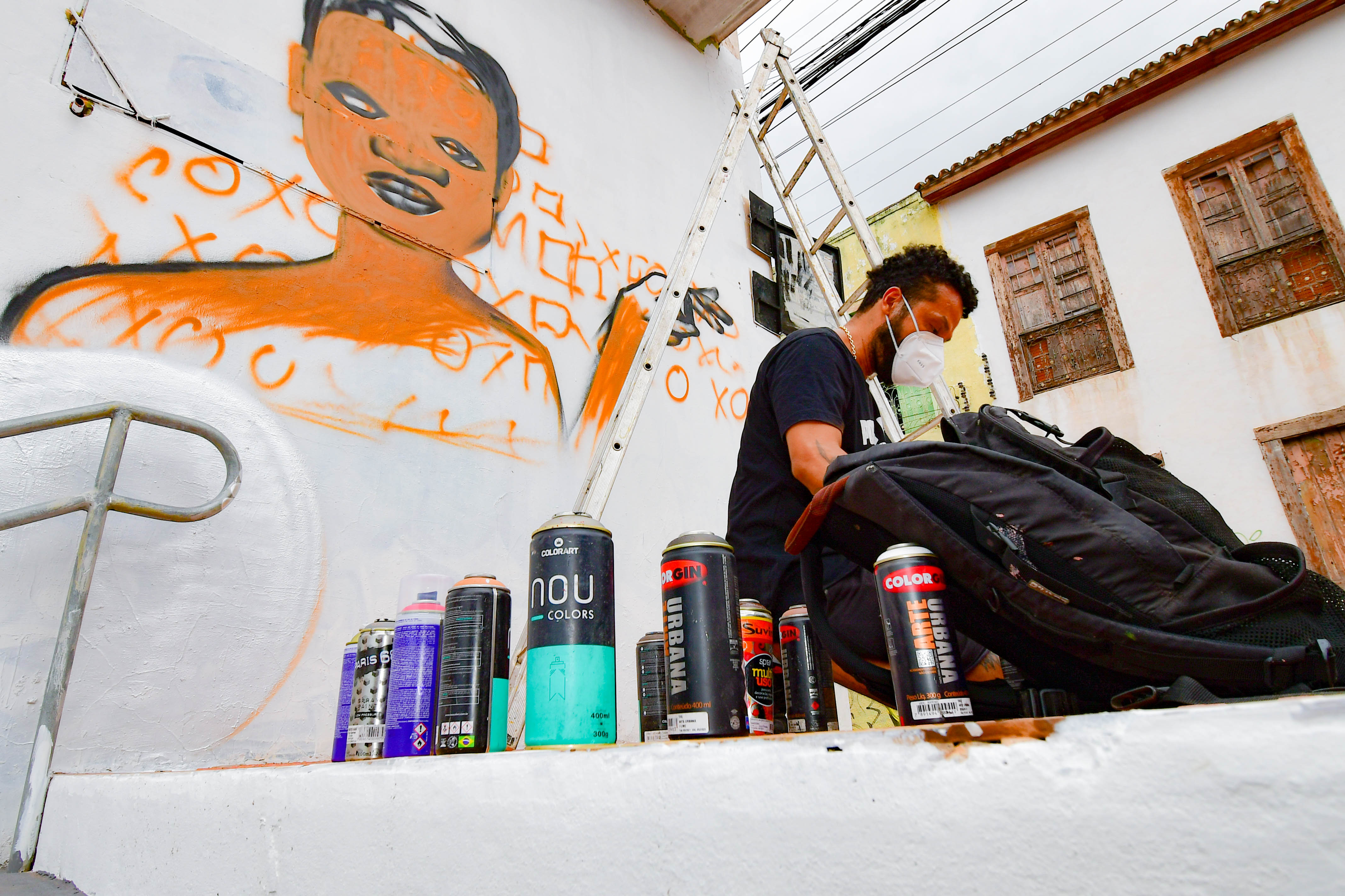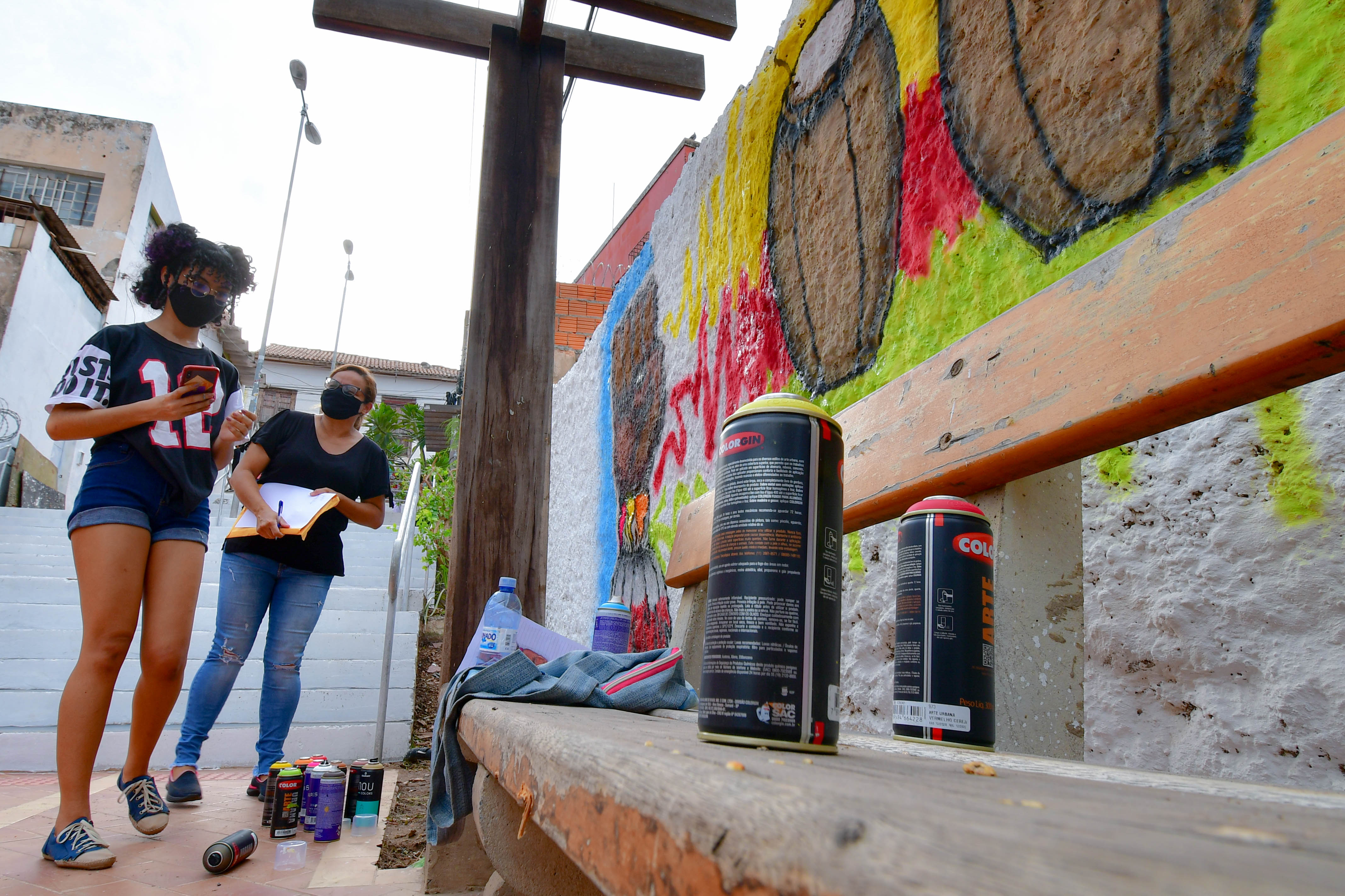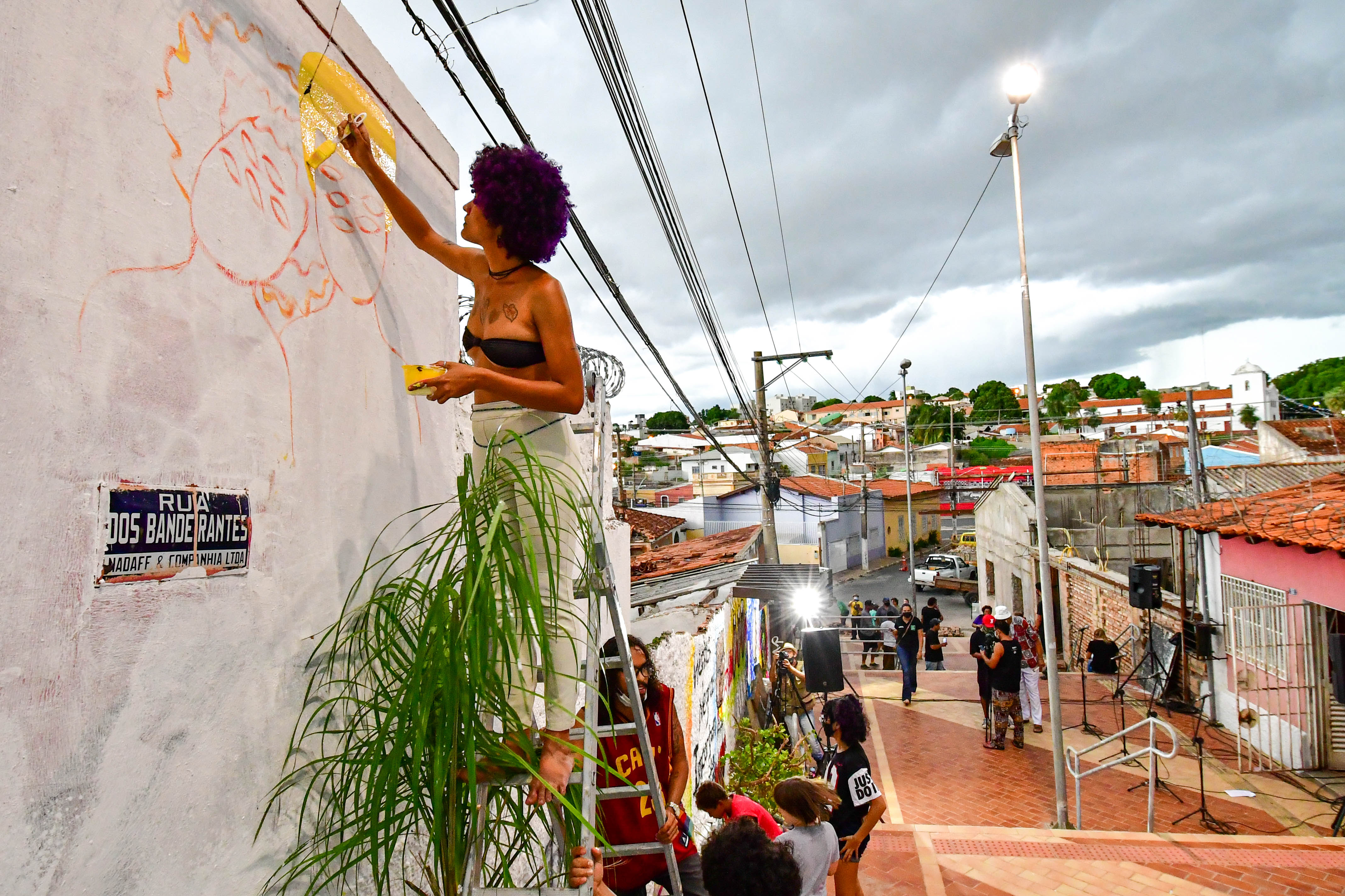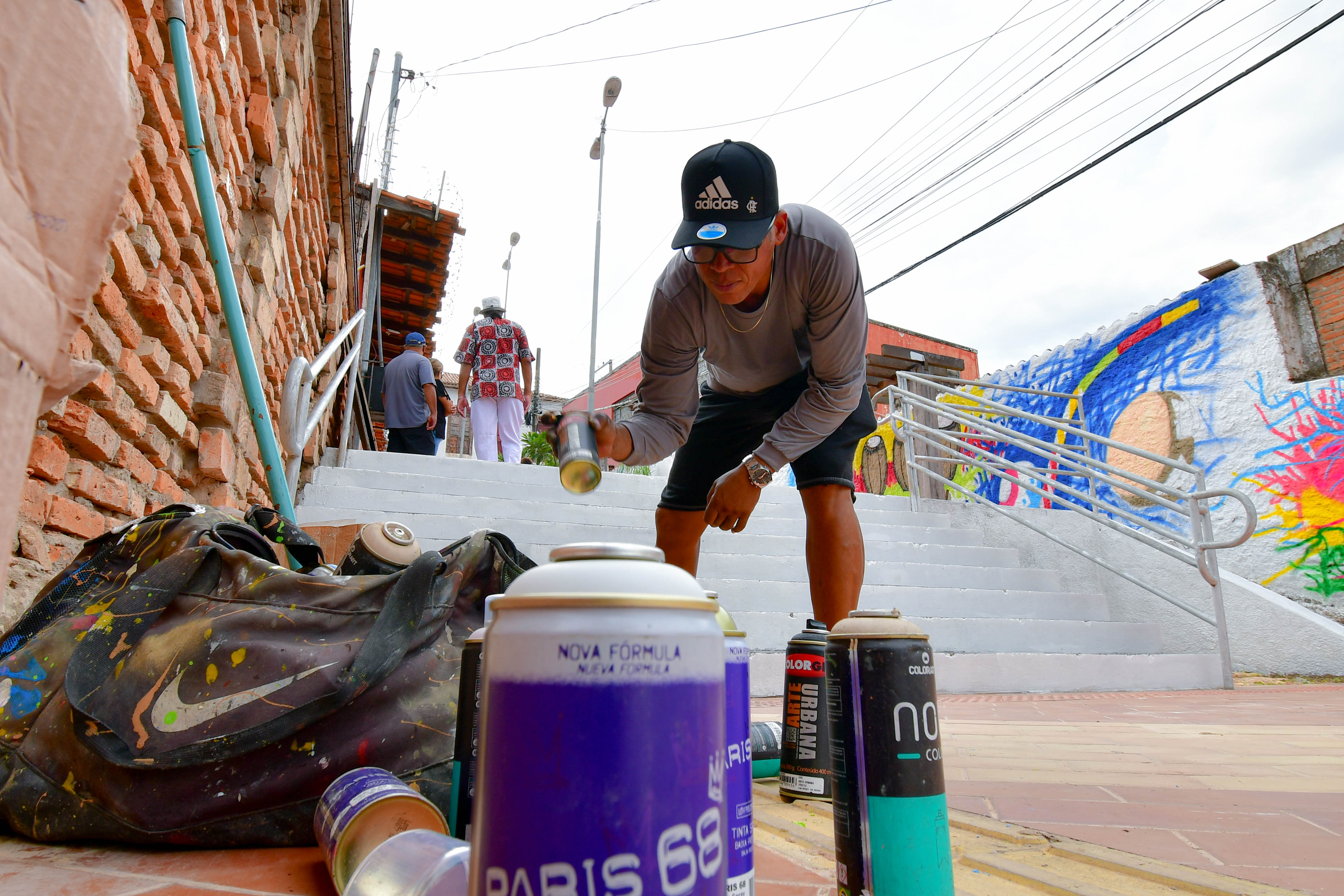 A escadaria do Beco Alto, localizado no Centro Histórico de Cuiabá, foi ponto de encontro no último sábado (13) de artistas plásticos e grafiteiros. A ação, uma homenagem no mês em que celebra-se o dia dac Consciência Negra (20 de novembro), contou ainda com muita música, dança, capoeira e poesias. Assim foi o encontro ‘Arte na Rua: O Último Tom da Cor', realizado pela Prefeitura de Cuiabá, por meio da Secretaria de Cultura, Esporte e Lazer, e o Museu da Imagem e Som (Misc).