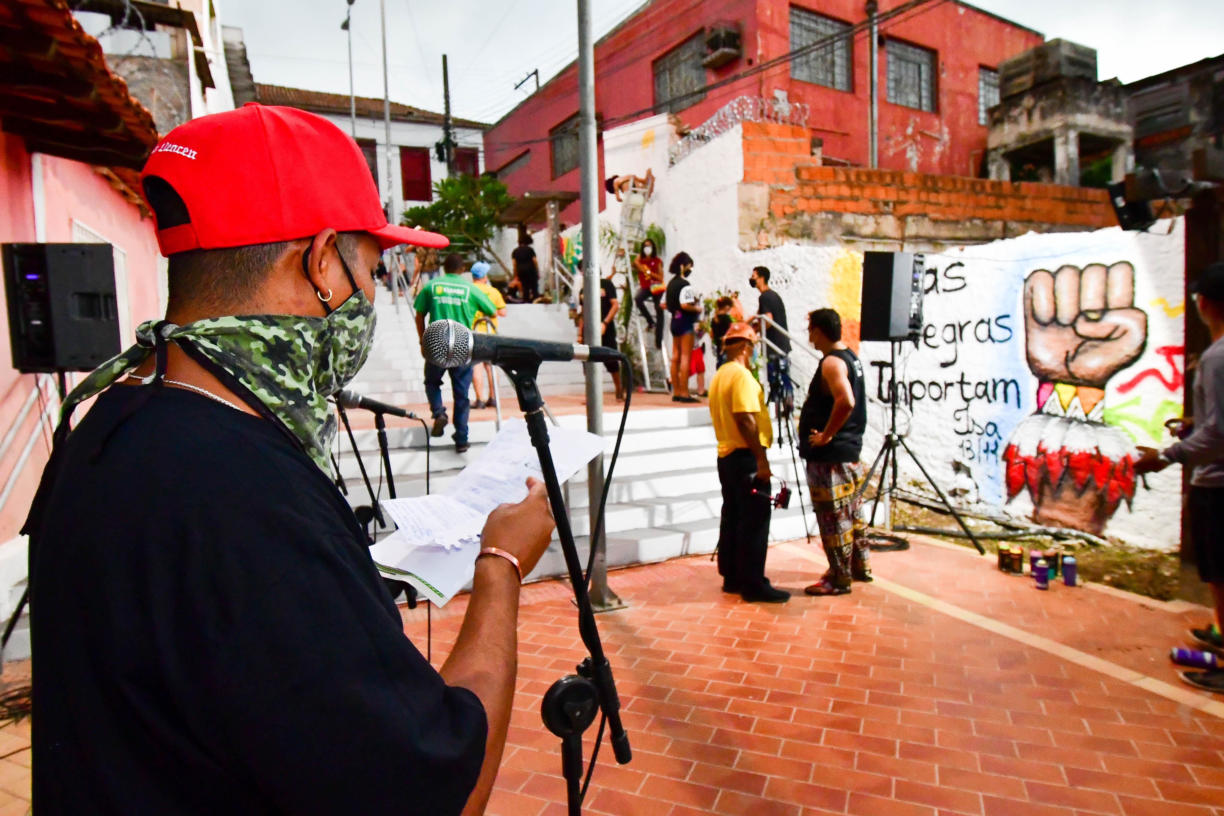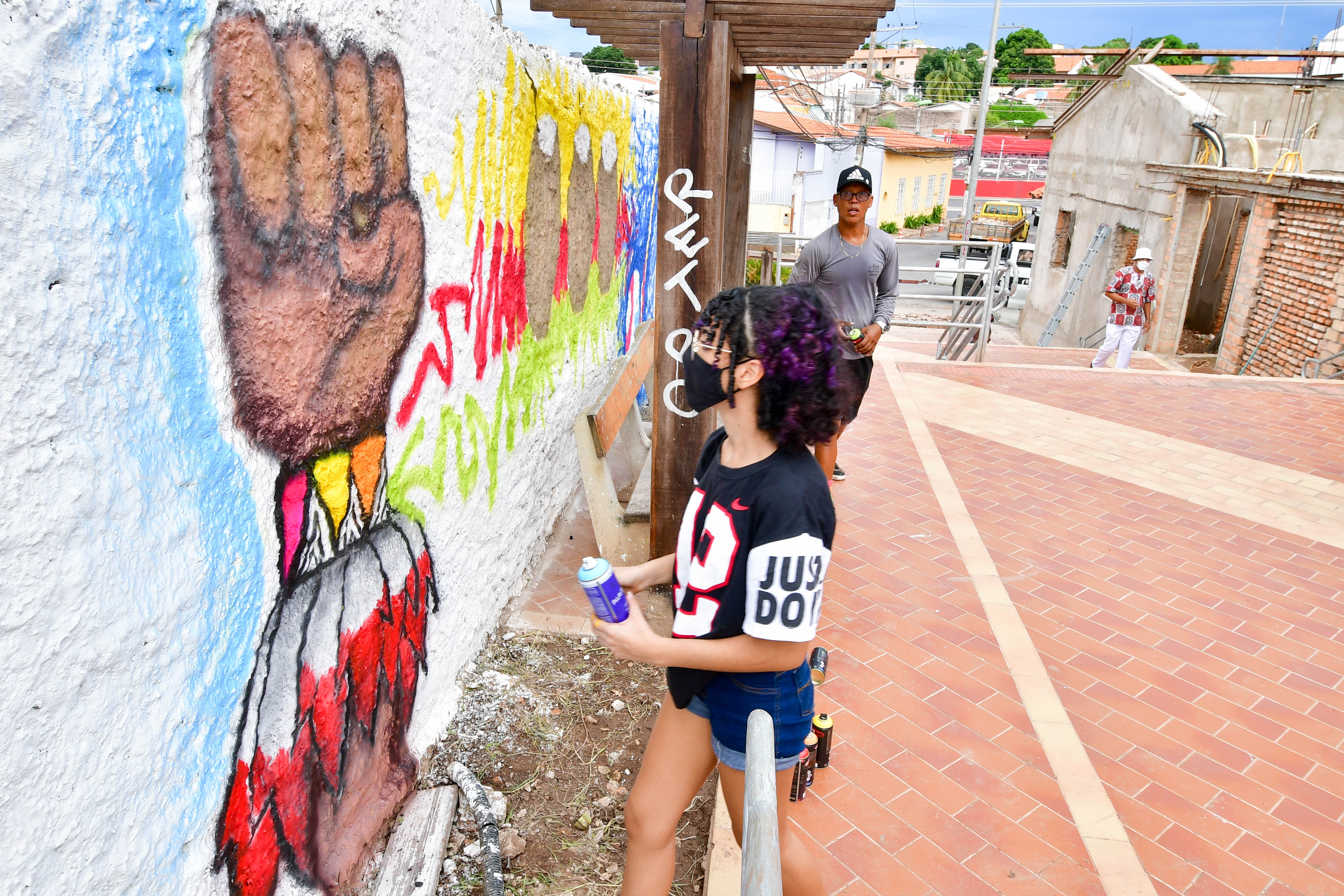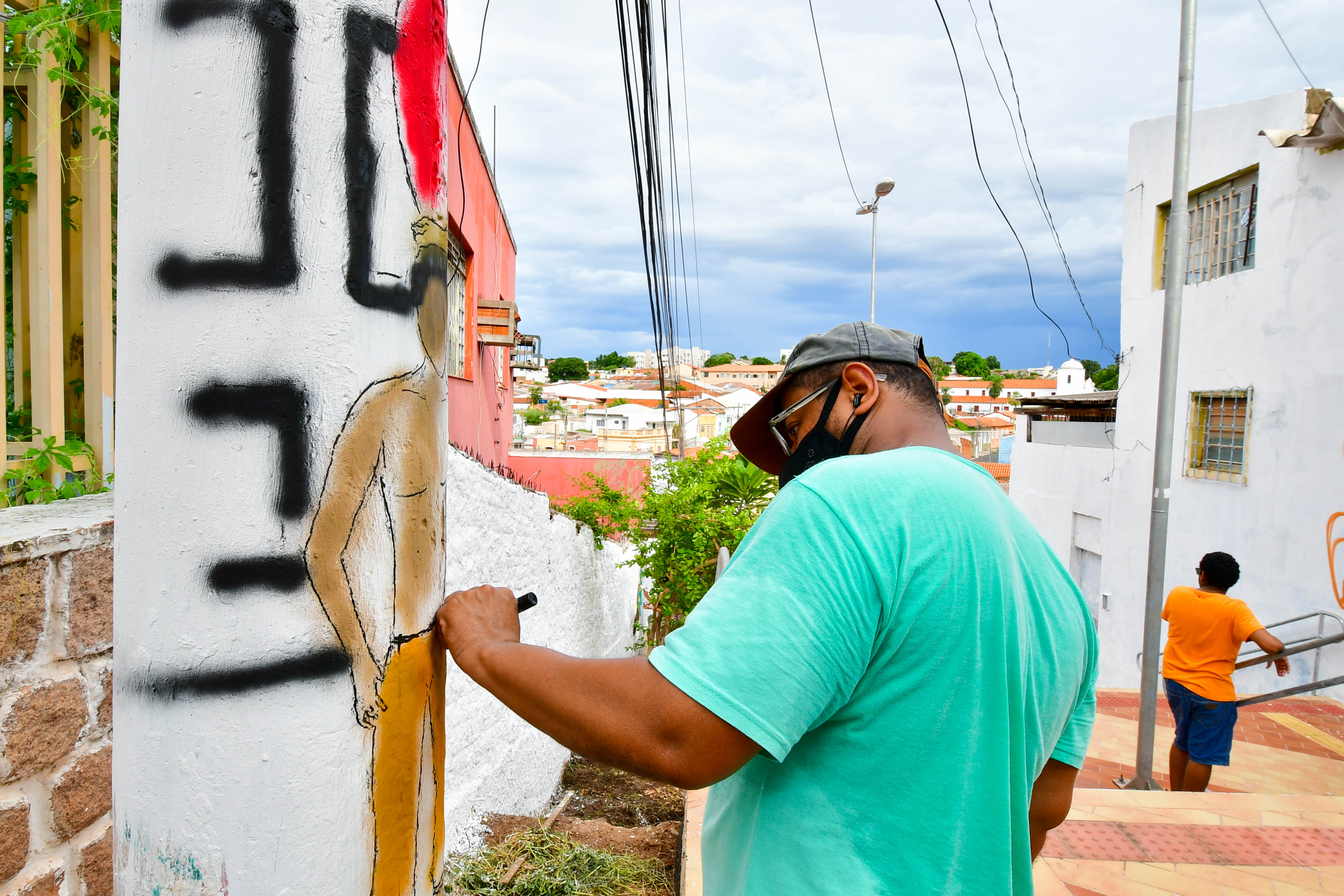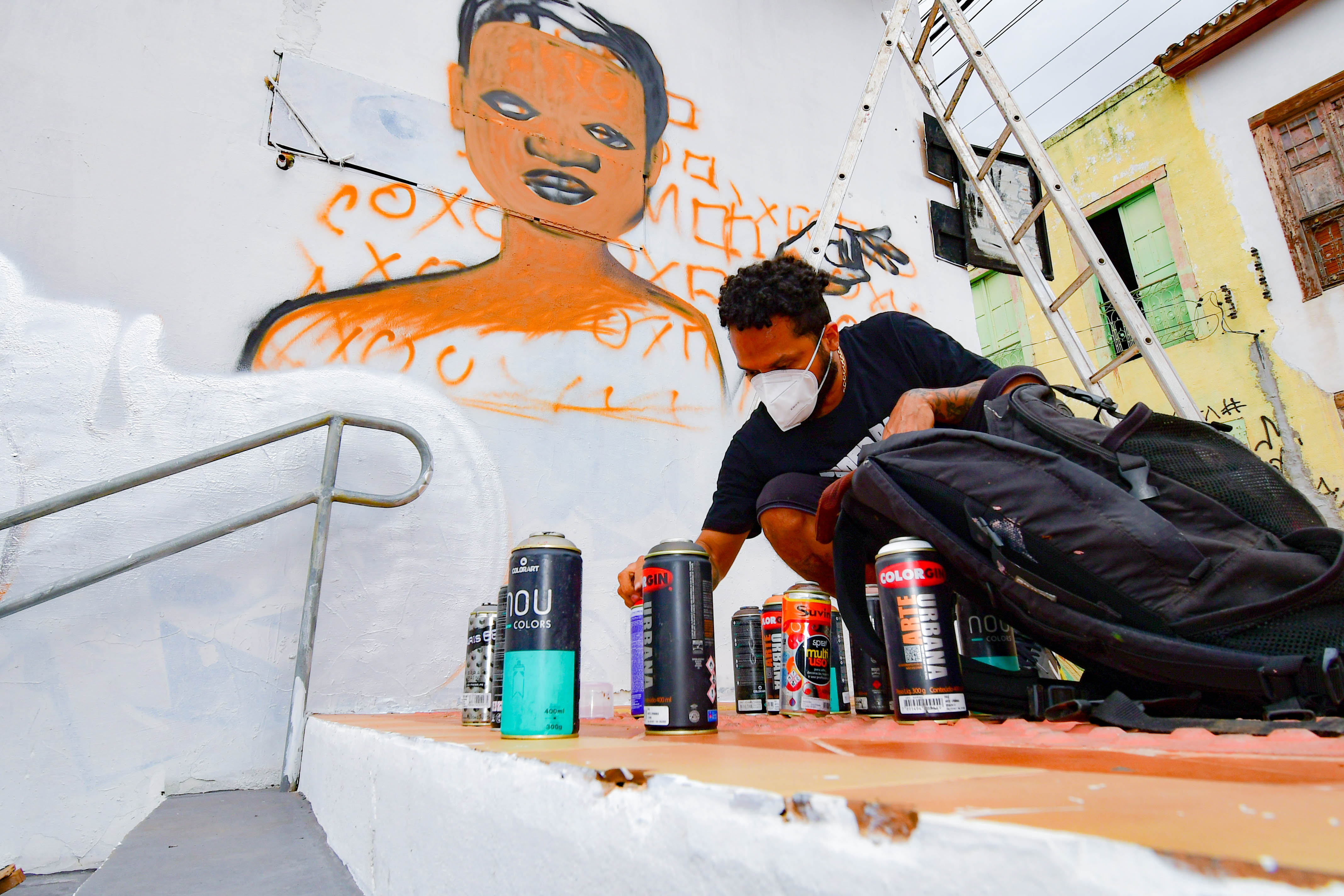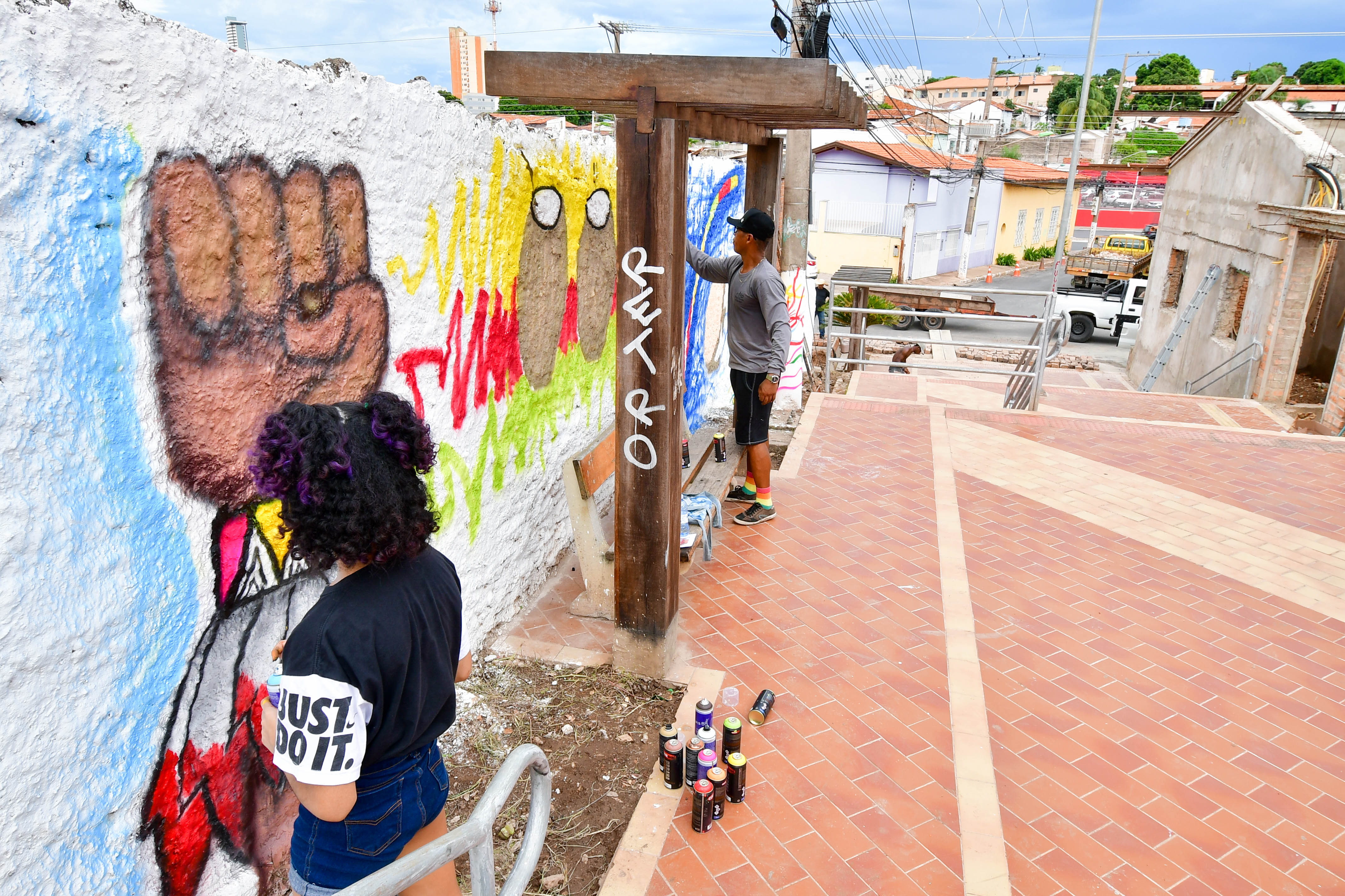 A escadaria do Beco Alto, localizado no Centro Histórico de Cuiabá, foi ponto de encontro no último sábado (13) de artistas plásticos e grafiteiros. A ação, uma homenagem no mês em que celebra-se o dia dac Consciência Negra (20 de novembro), contou ainda com muita música, dança, capoeira e poesias. Assim foi o encontro ‘Arte na Rua: O Último Tom da Cor', realizado pela Prefeitura de Cuiabá, por meio da Secretaria de Cultura, Esporte e Lazer, e o Museu da Imagem e Som (Misc).