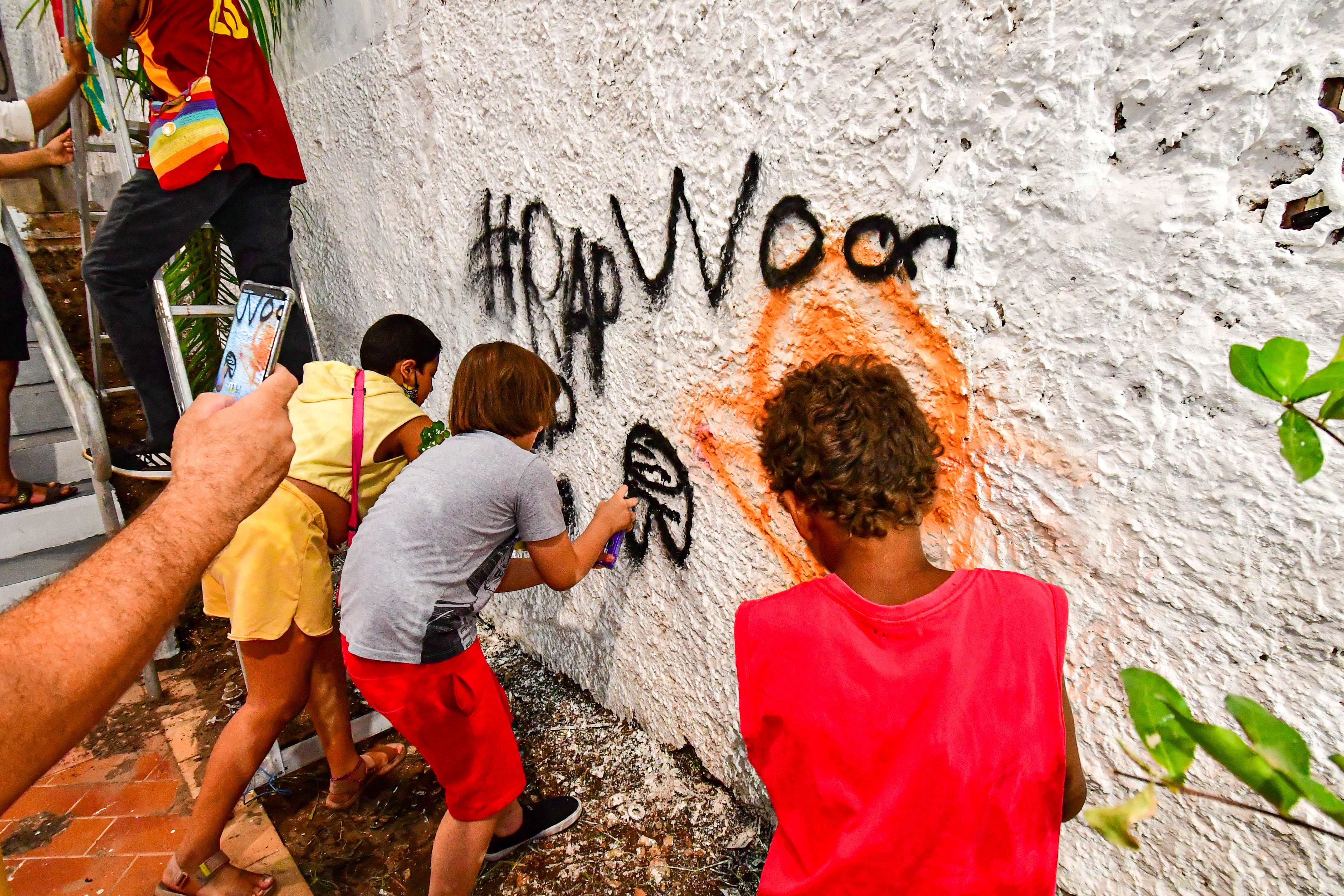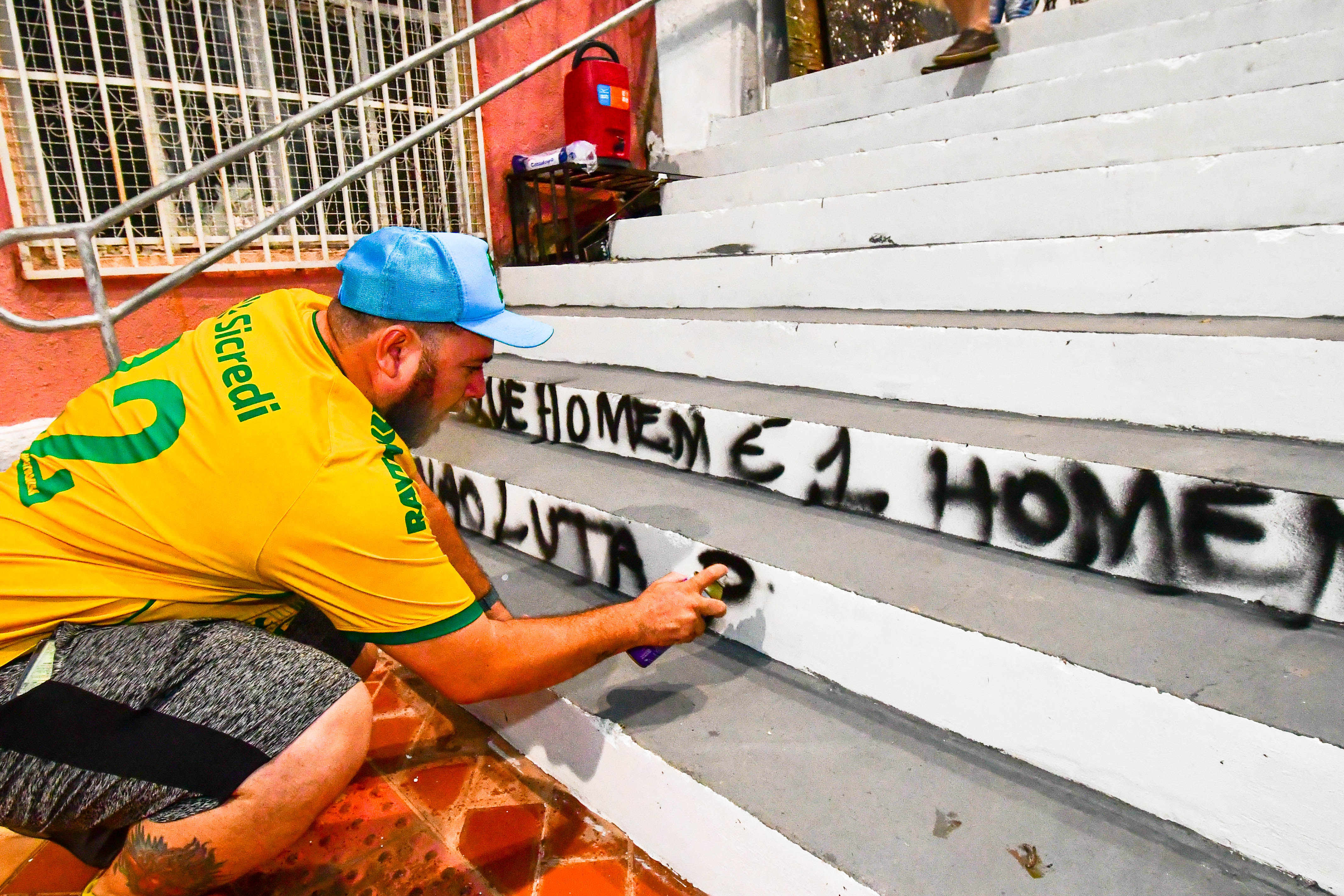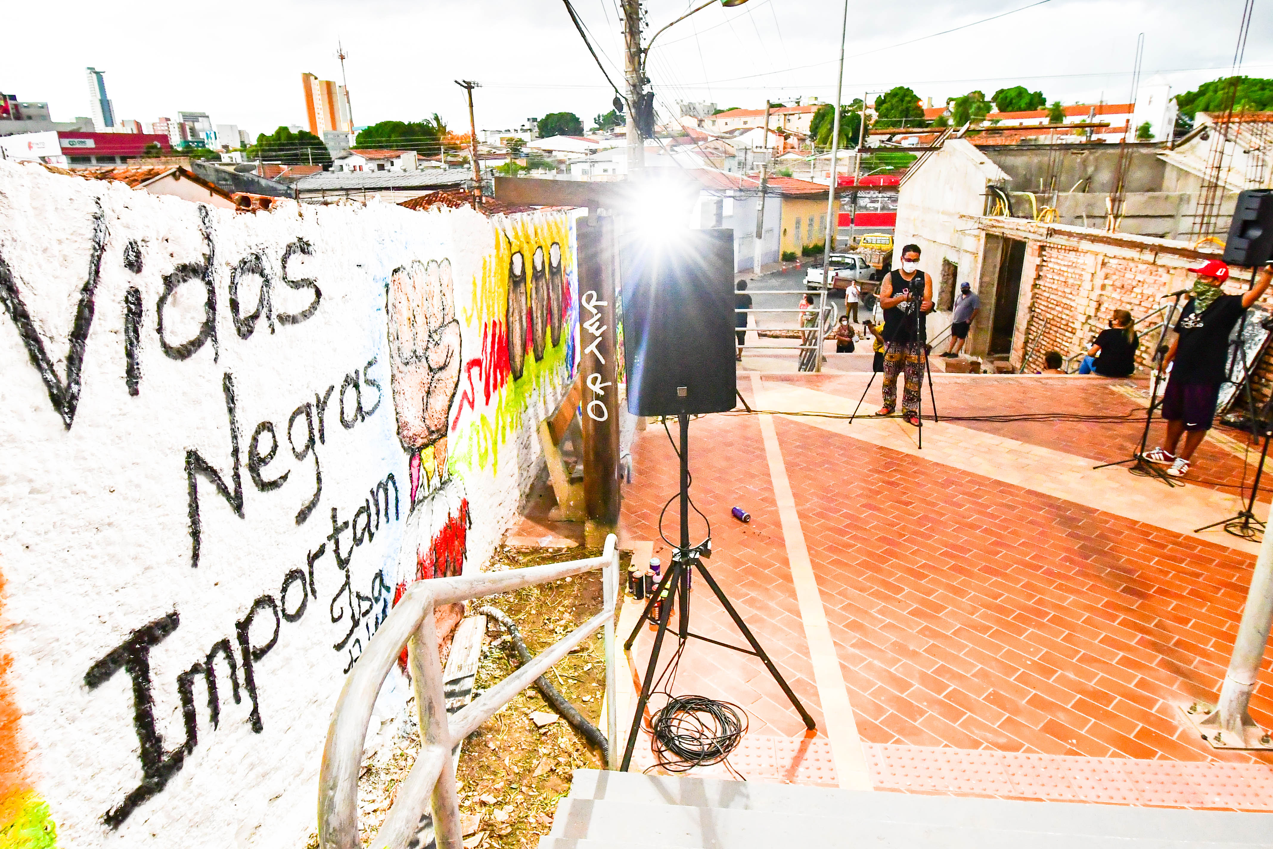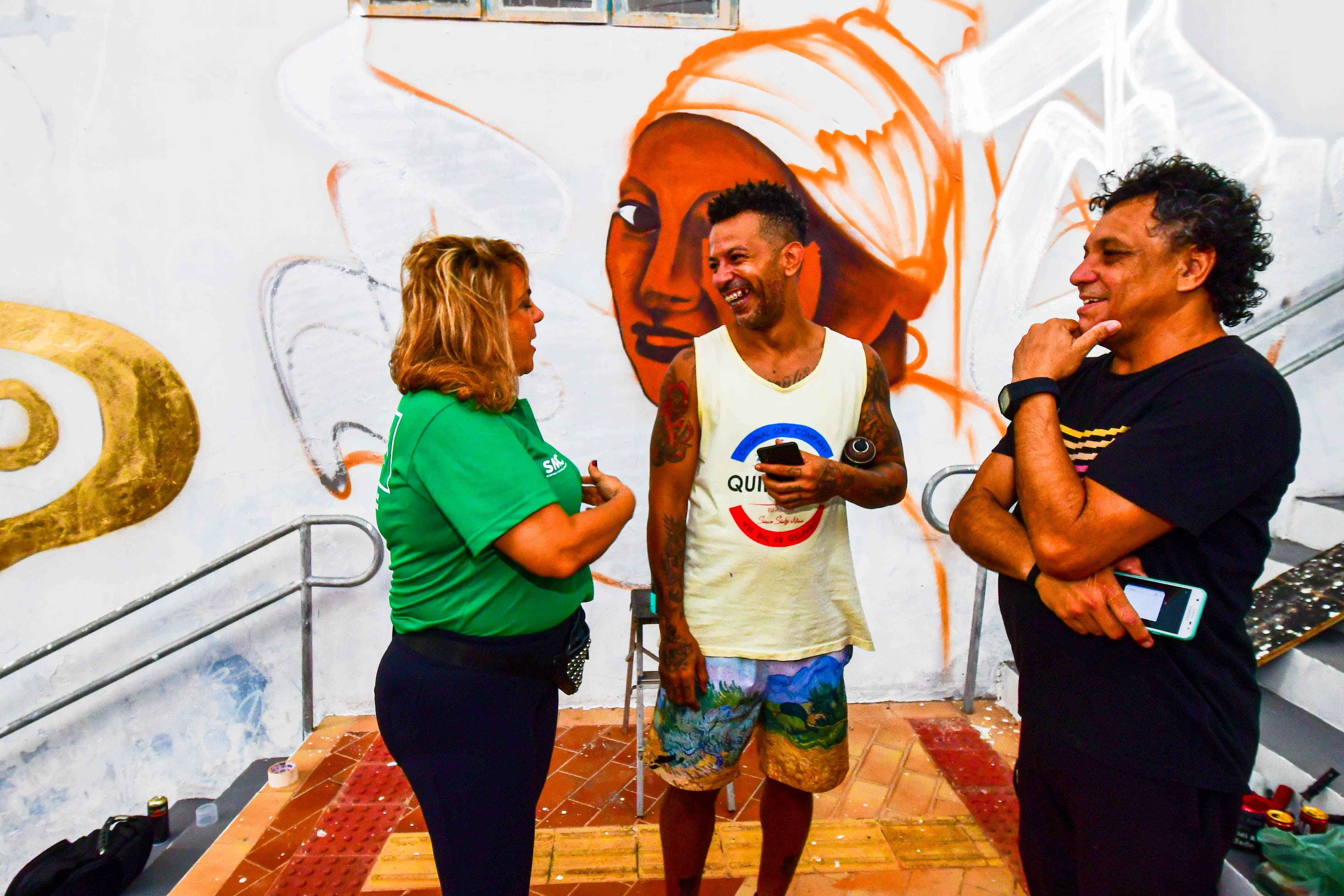 A escadaria do Beco Alto, localizado no Centro Histórico de Cuiabá, foi ponto de encontro no último sábado (13) de artistas plásticos e grafiteiros. A ação, uma homenagem no mês em que celebra-se o dia dac Consciência Negra (20 de novembro), contou ainda com muita música, dança, capoeira e poesias. Assim foi o encontro ‘Arte na Rua: O Último Tom da Cor', realizado pela Prefeitura de Cuiabá, por meio da Secretaria de Cultura, Esporte e Lazer, e o Museu da Imagem e Som (Misc).