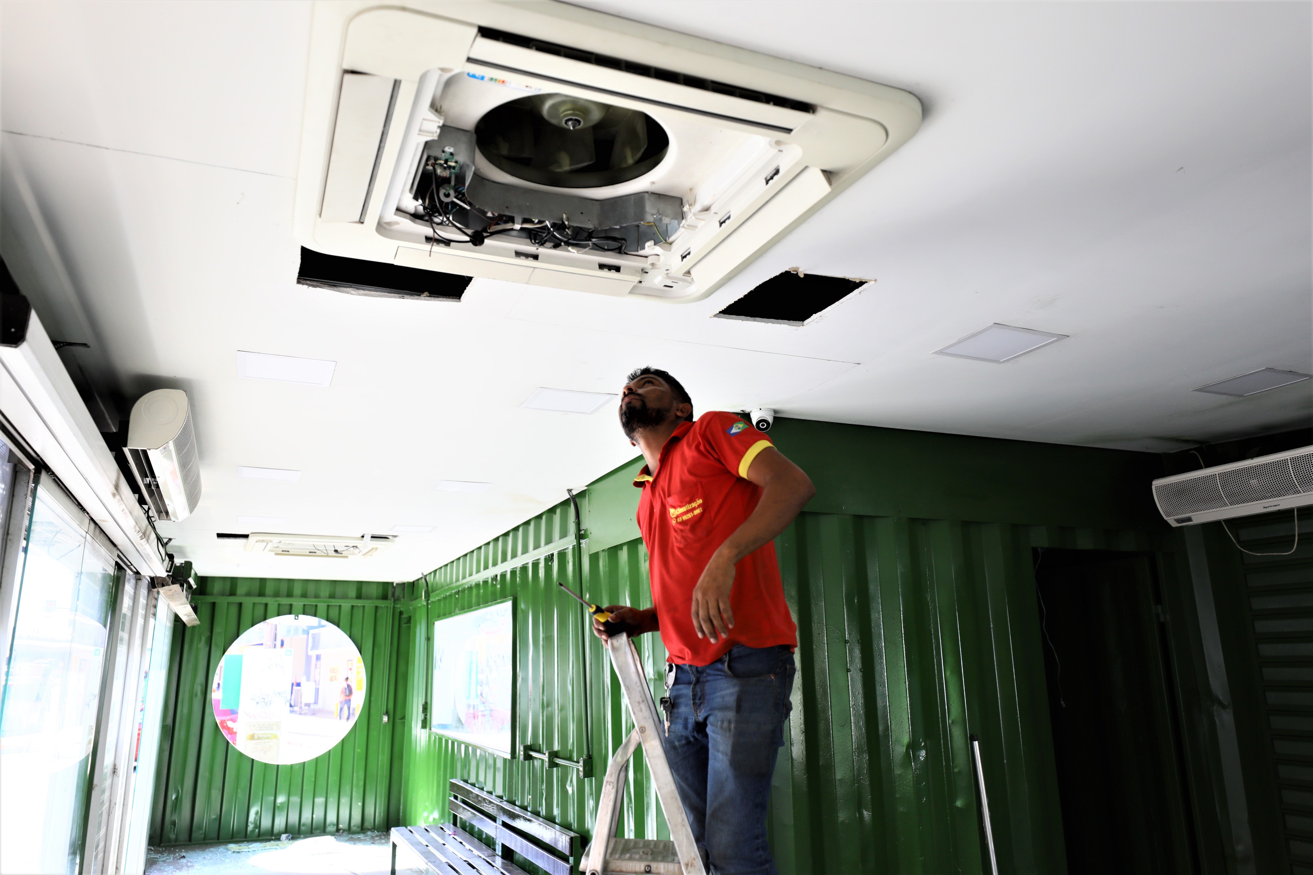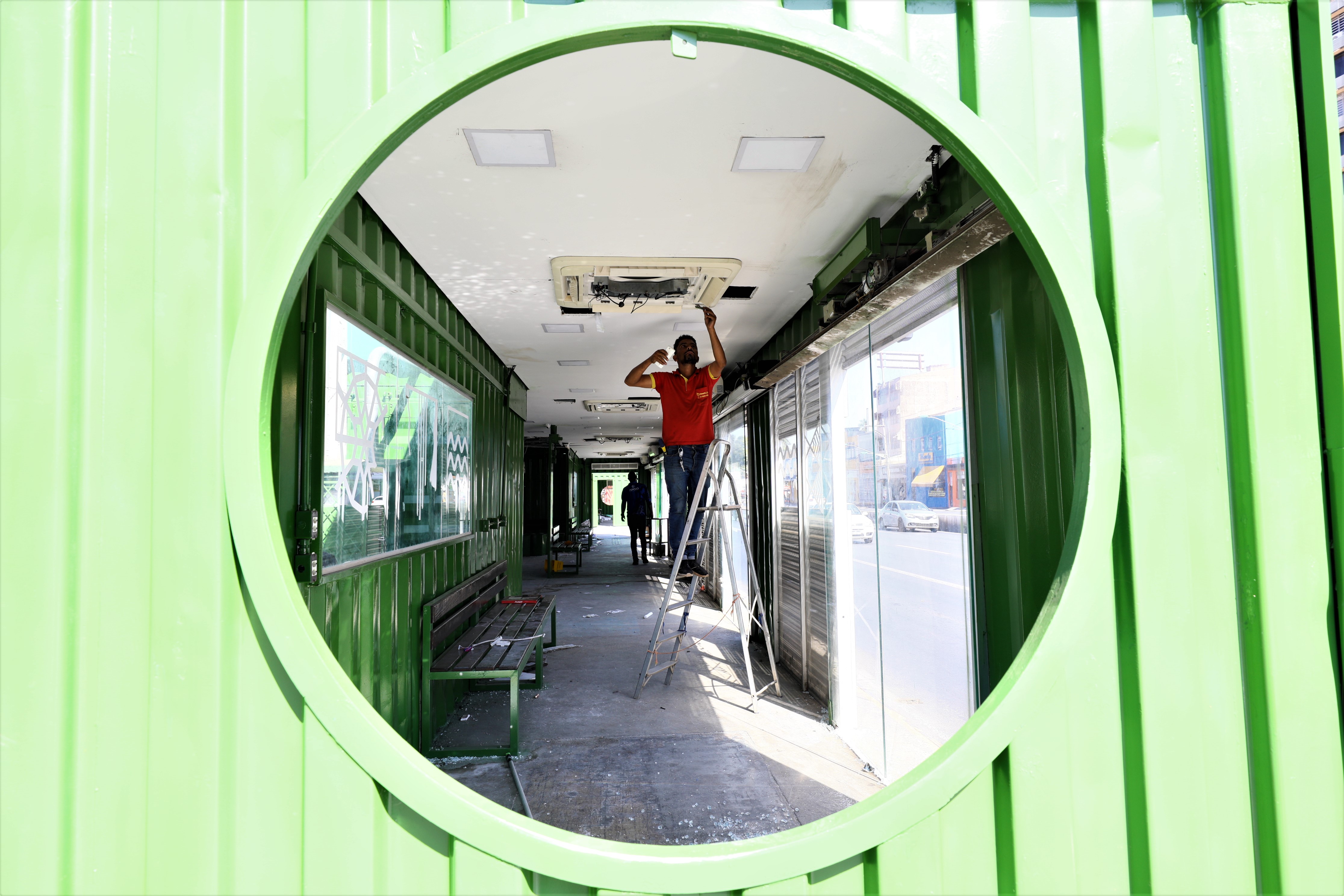 Como parte da obra, a Limpurb promoveu a instalação de novos ares-condicionados nos dois módulos. No total, são 11 aparelhos distribuídos ao longo da estação, que ajudarão a melhorar a temperatura do ambiente. Os testes são necessários para garantir o bom funcionamento dos equipamentos que, após a entrega, também receberão manutenções periódicas.