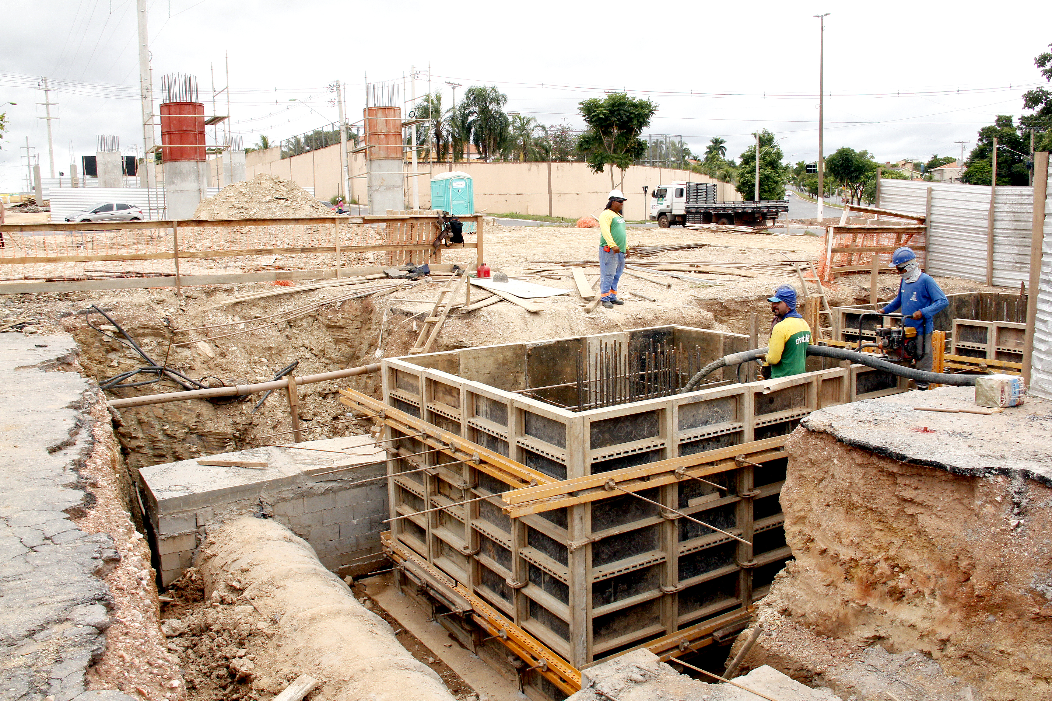 Igualmente, na Avenida Profª Edna Maria Albuquerque Affi (Av. das Torres) uma estrutura semelhante está sendo edificada. No local, o trabalho se encontra em um estágio mais avançado, com os pilares de sustentação prontos e recebendo a construção das vigas transversais. De acordo com o planejamento, nas próximas semanas as etapas de infra e mesoestrutura devem ser concluídas, iniciando a fase de superestrutura.