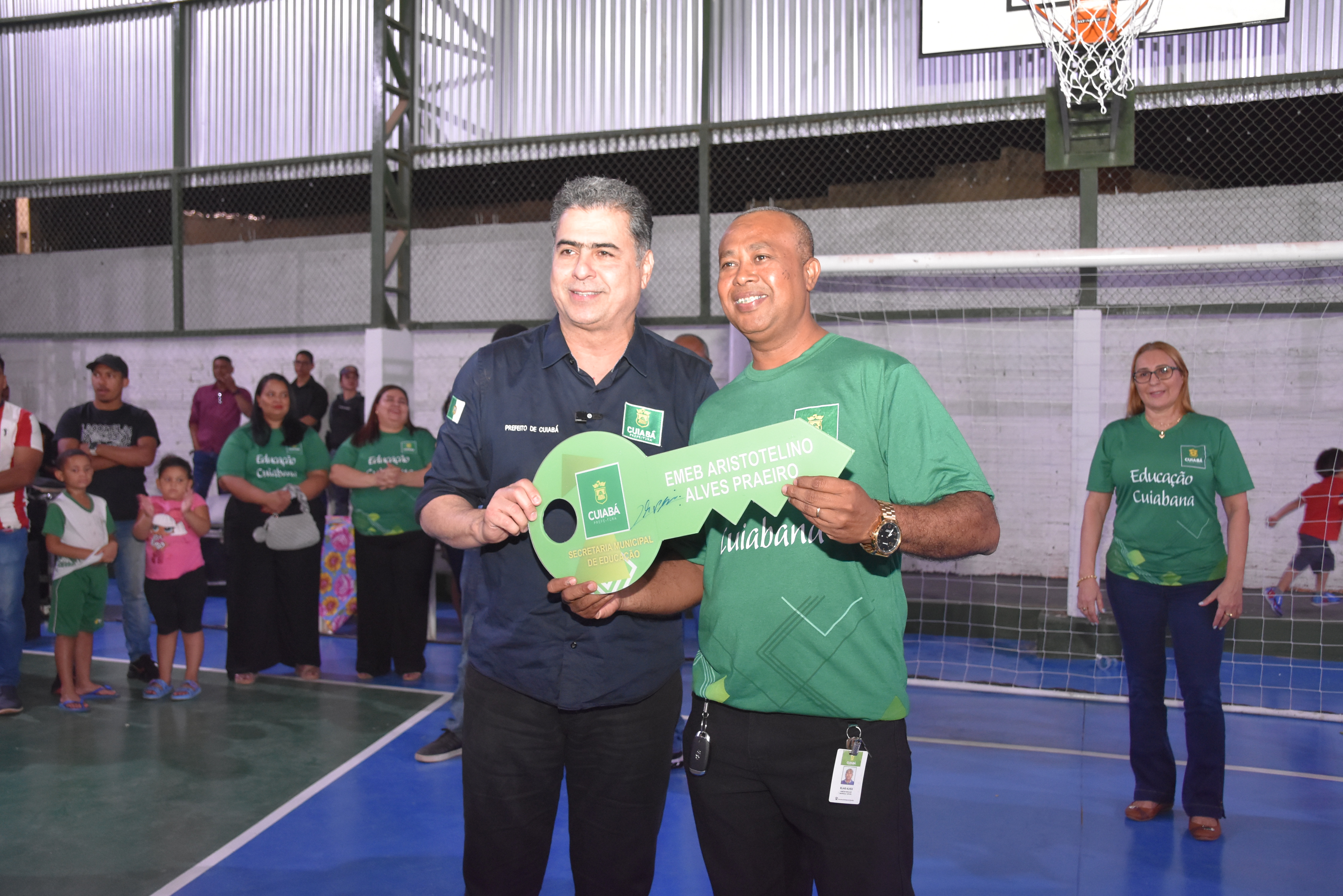 O prefeito Emanuel Pinheiro entregou nesta terça-feira (13), a 30ª obra do seu segundo mandato, na pasta da Educação. A readequação da Escola Municipal de Educação Básica (EMEB) Aristotelino Alves Praeiro, localizada no bairro 1º de Março. O evento foi marcado pela presença dos estudantes, suas famílias, dos profissionais da educação e lideranças comunitárias da região.