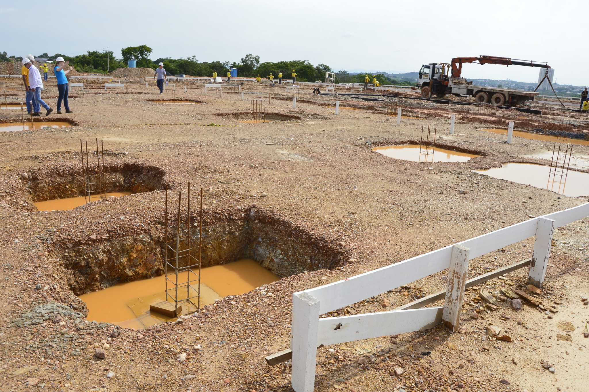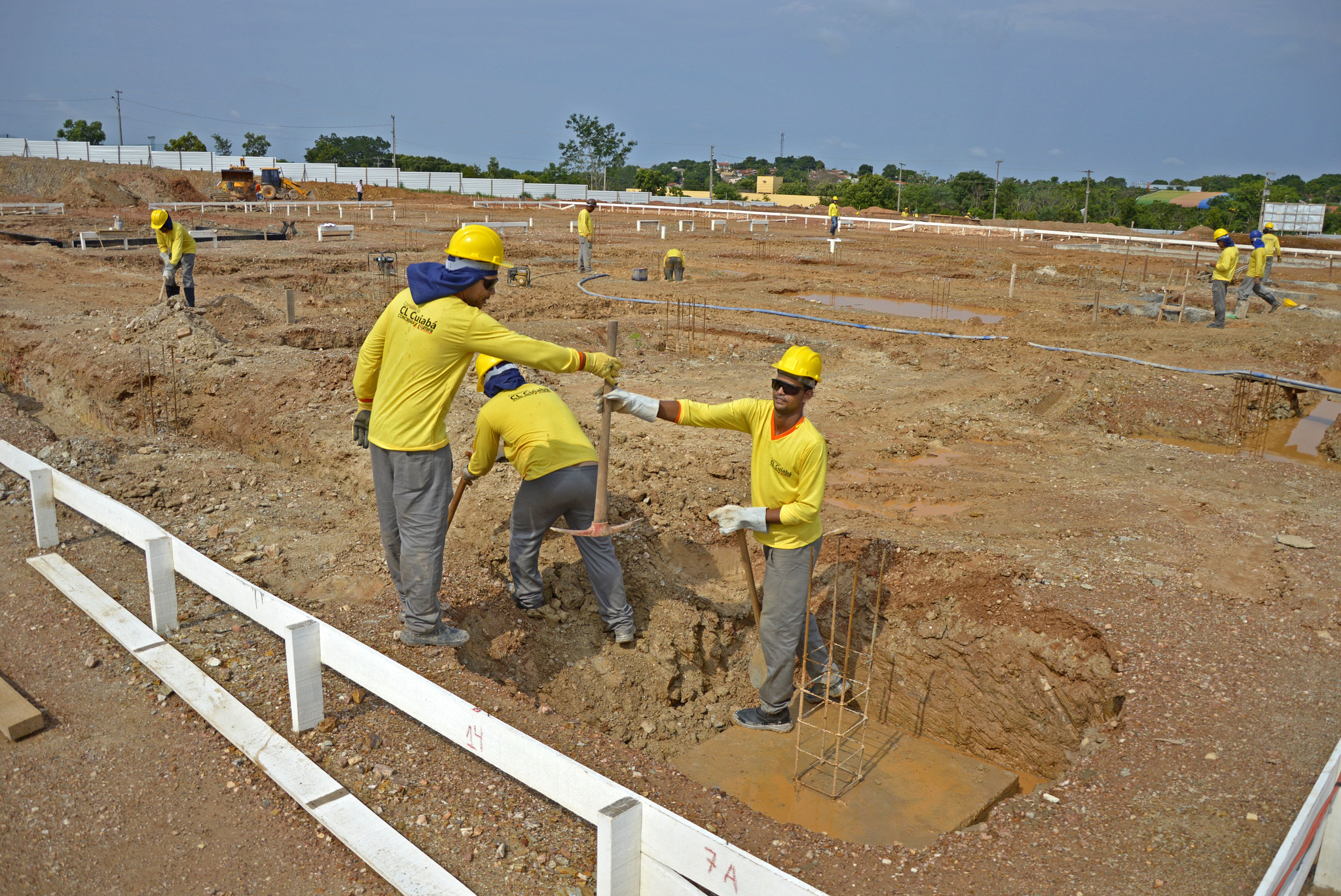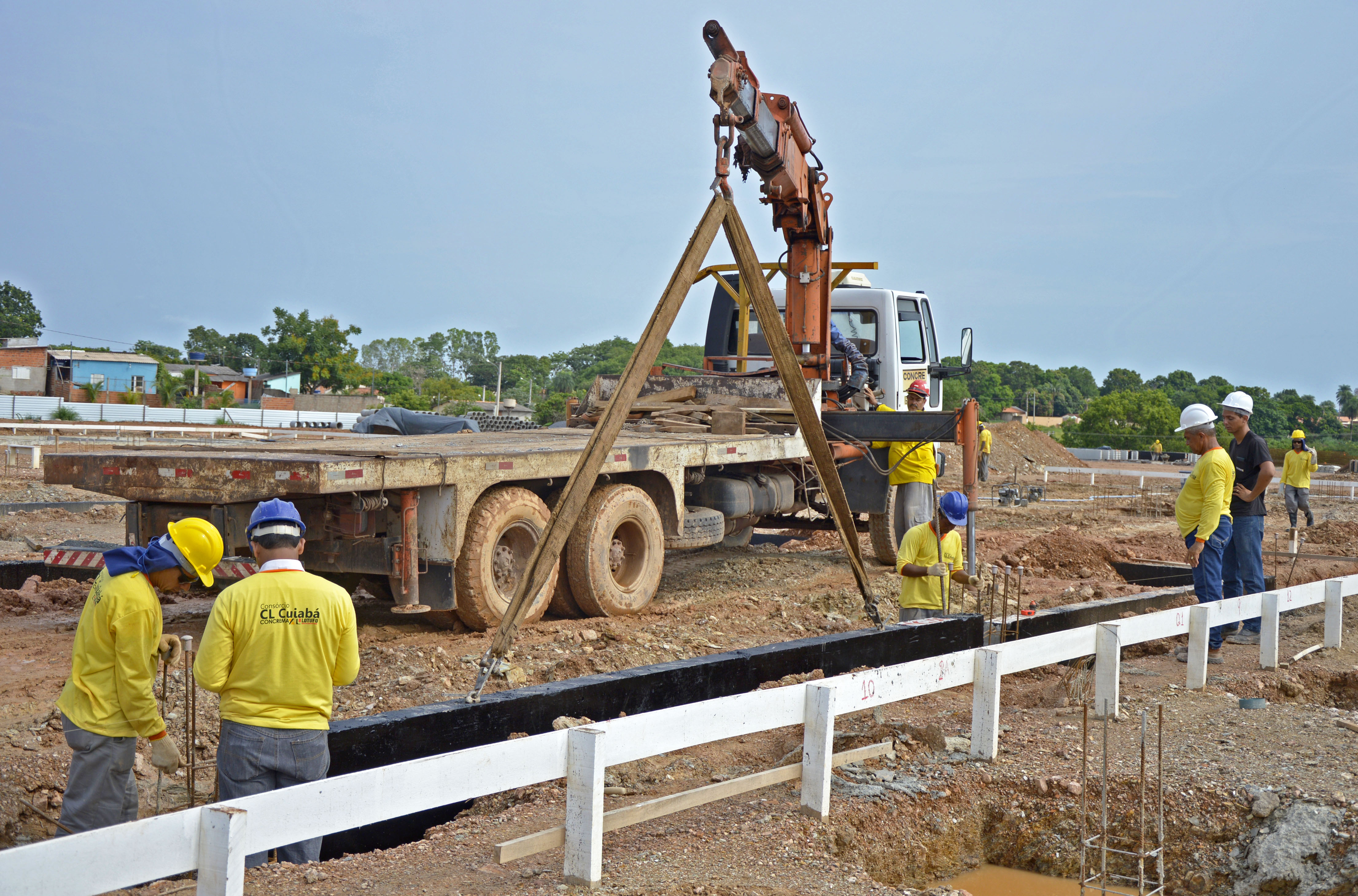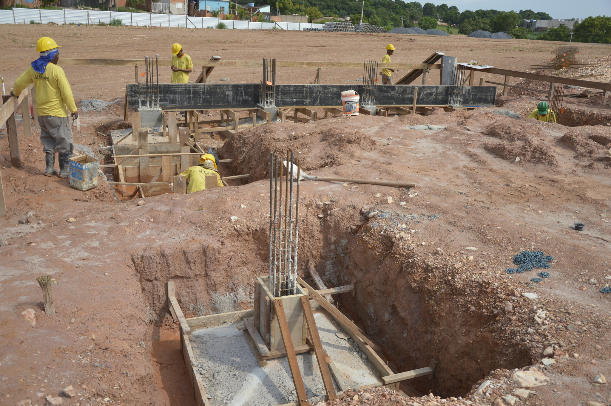 As obras do novo Hospital e Pronto-Socorro de Cuiabá chegaram à fase intermediária de fundação, após seis meses do início das obras, em julho do ano passado. Com todas as 152 sapatas concretadas, a fase agora é de instalação das vigas baldrames e as estacas hélice contínua, que dão sustentação à parte da estrutura predial, e início da drenagem mais rasa de águas pluviais.