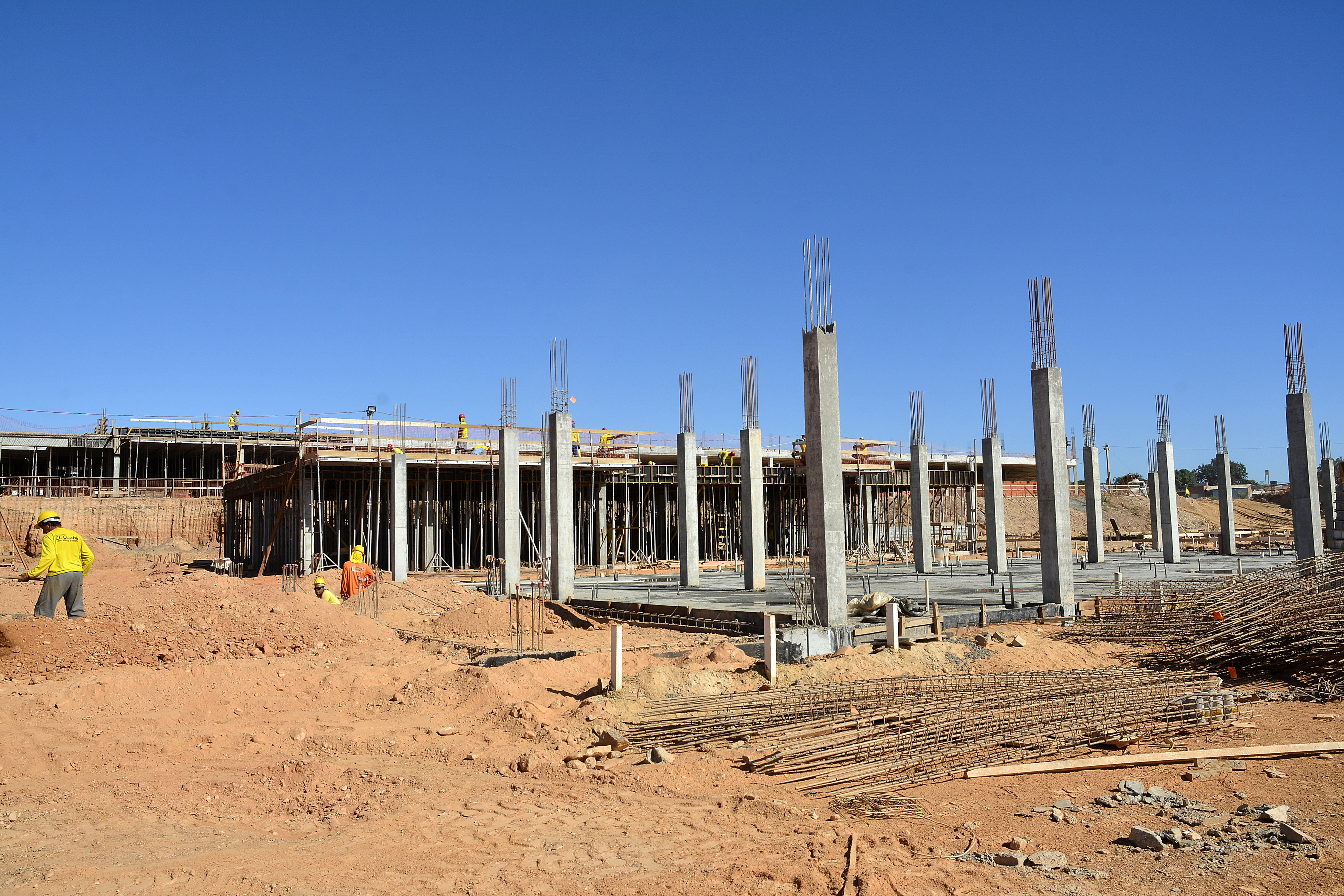 Após um ano do lançamento, completados neste sábado (02), as obras do novo Hospital e Pronto-Socorro de Cuiabá, considerada a mais importante na área da saúde nos últimos 30 anos para a saúde de Cuiabá e do Estado, já estão na fase de estruturação, com várias frentes de serviços concluídas. A base física dos edifícios um e dois estão com a alvenaria de elevação e encunhamento prontos, recebendo reboco, contrapiso, com finalização das lajes. Estes trabalhos já chegam a 95% de conclusão.
