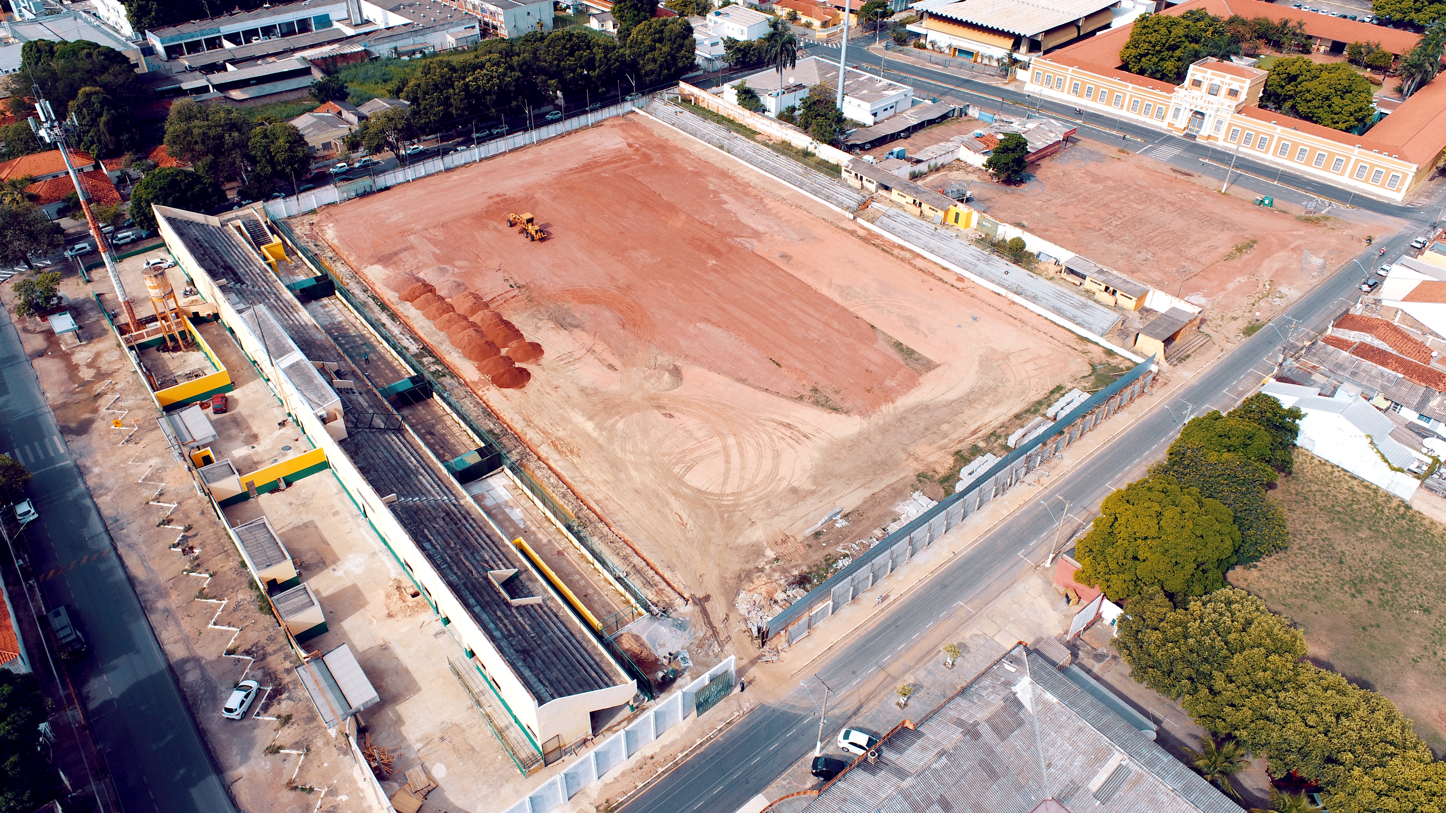 No último dia 09 de abril, a Secretaria de Serviços Urbanos iniciou a retirada do gramado para a implantação do sistema novo de drenagem e irrigação, que vai diminuir os custos de manutenção e consumo de água.
