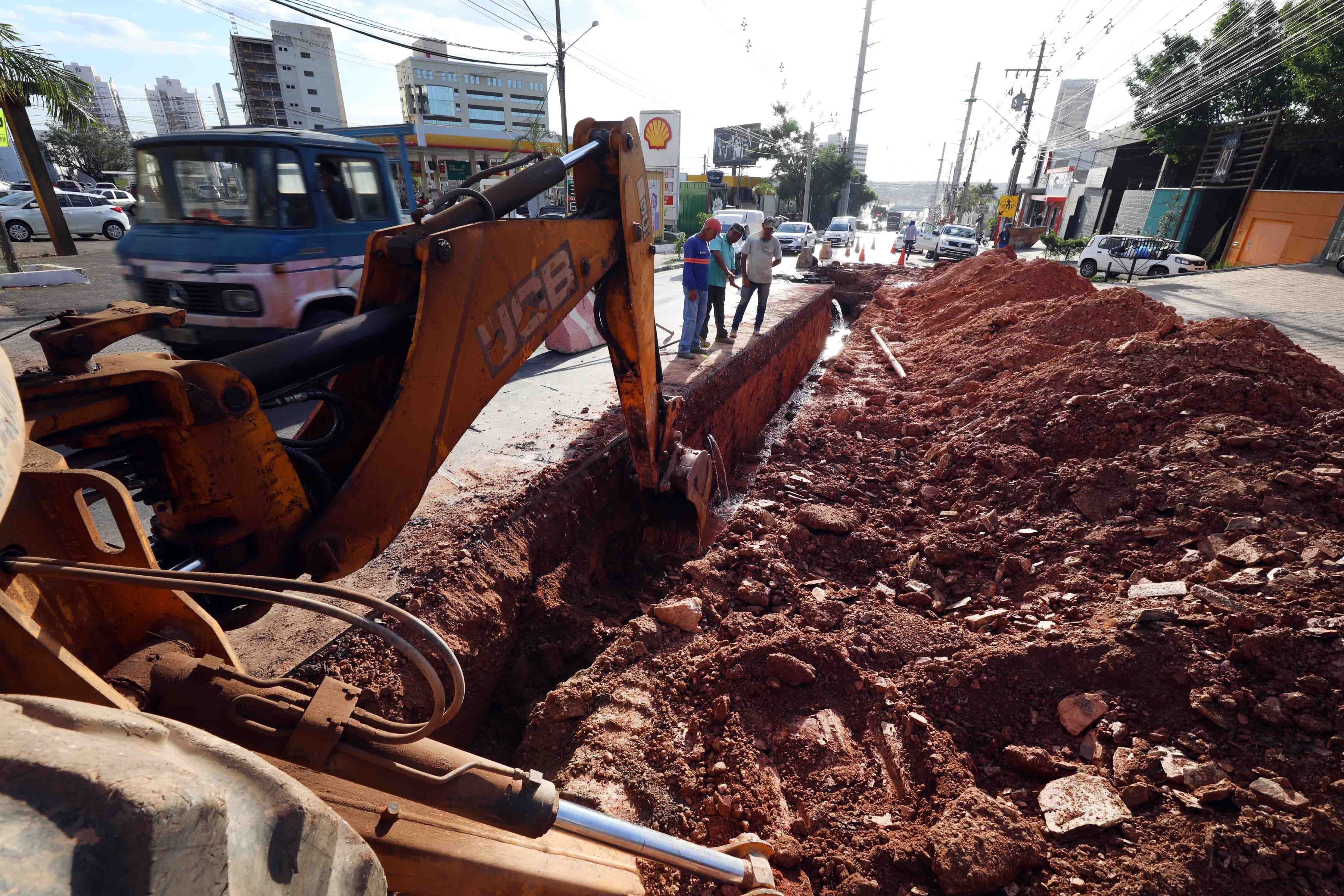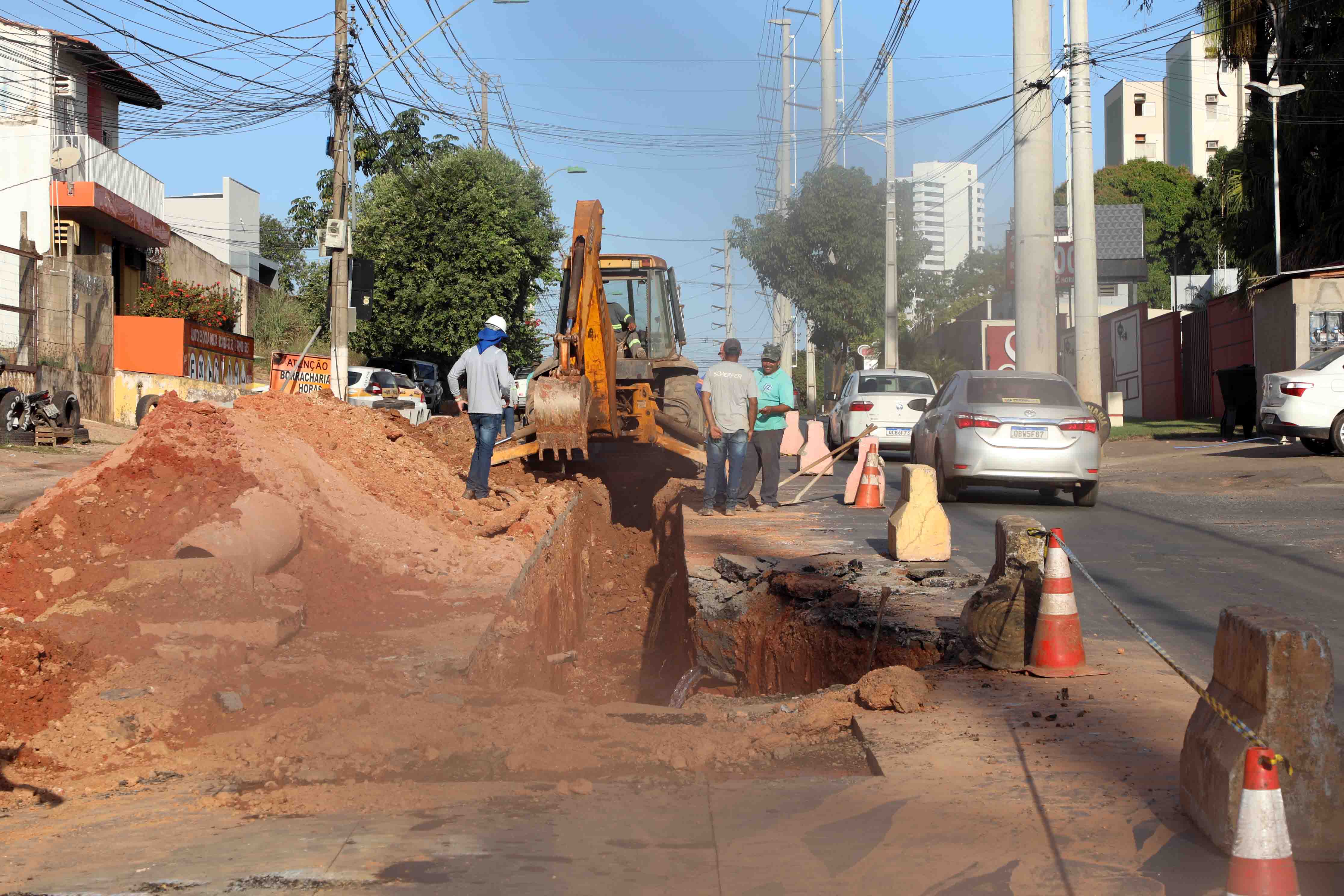 A Secretaria de Obras Públicas (SMOP) deu início, nesta quinta-feira (30), à segunda etapa de requalificação da rede de drenagem de águas pluviais na Avenida República do Líbano, localizada no bairro Paiaguás. O trabalho está concentrado nas proximidades da rotatória de acesso ao Departamento Estadual de Trânsito (Detran), onde é realizado o serviço de escavação.