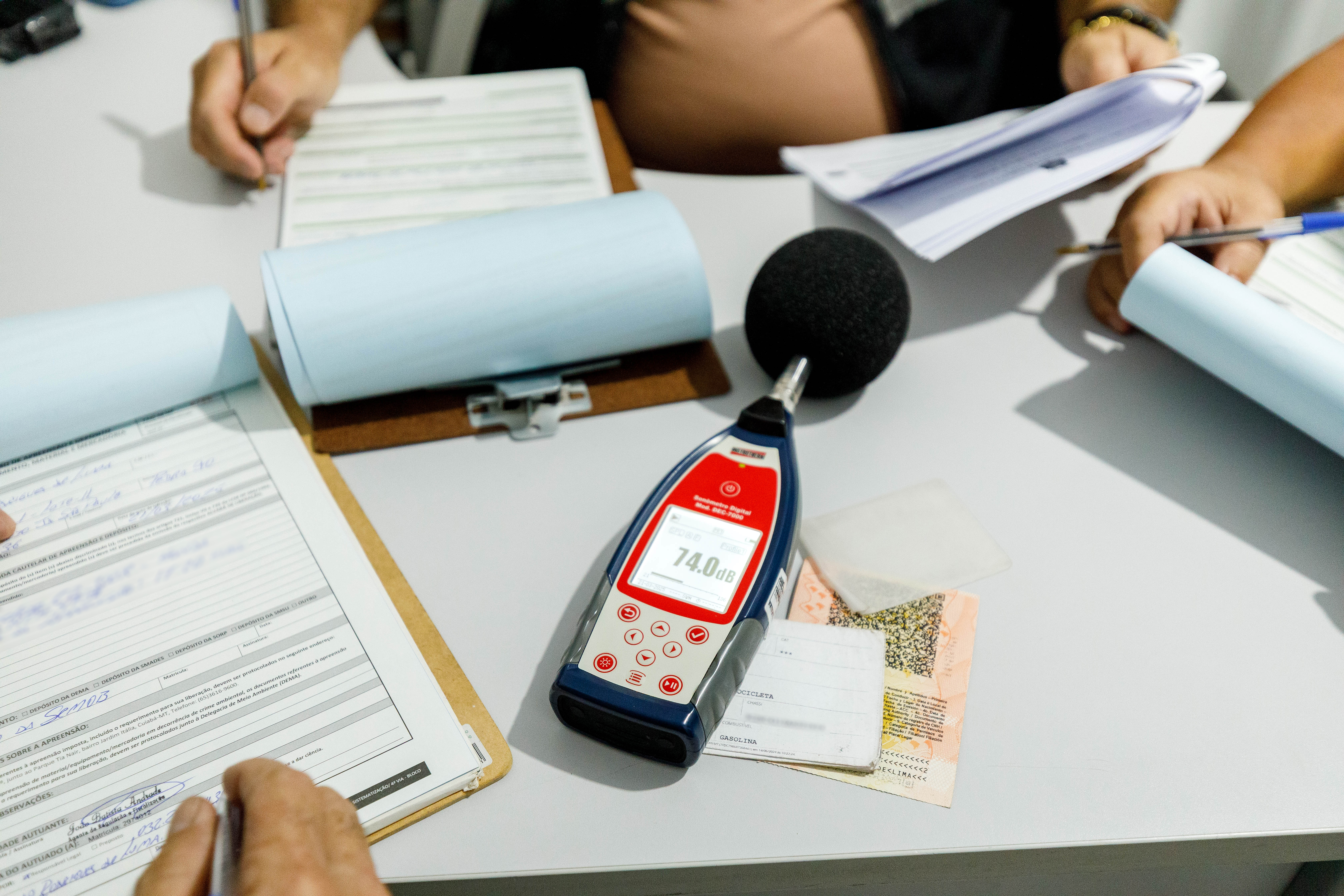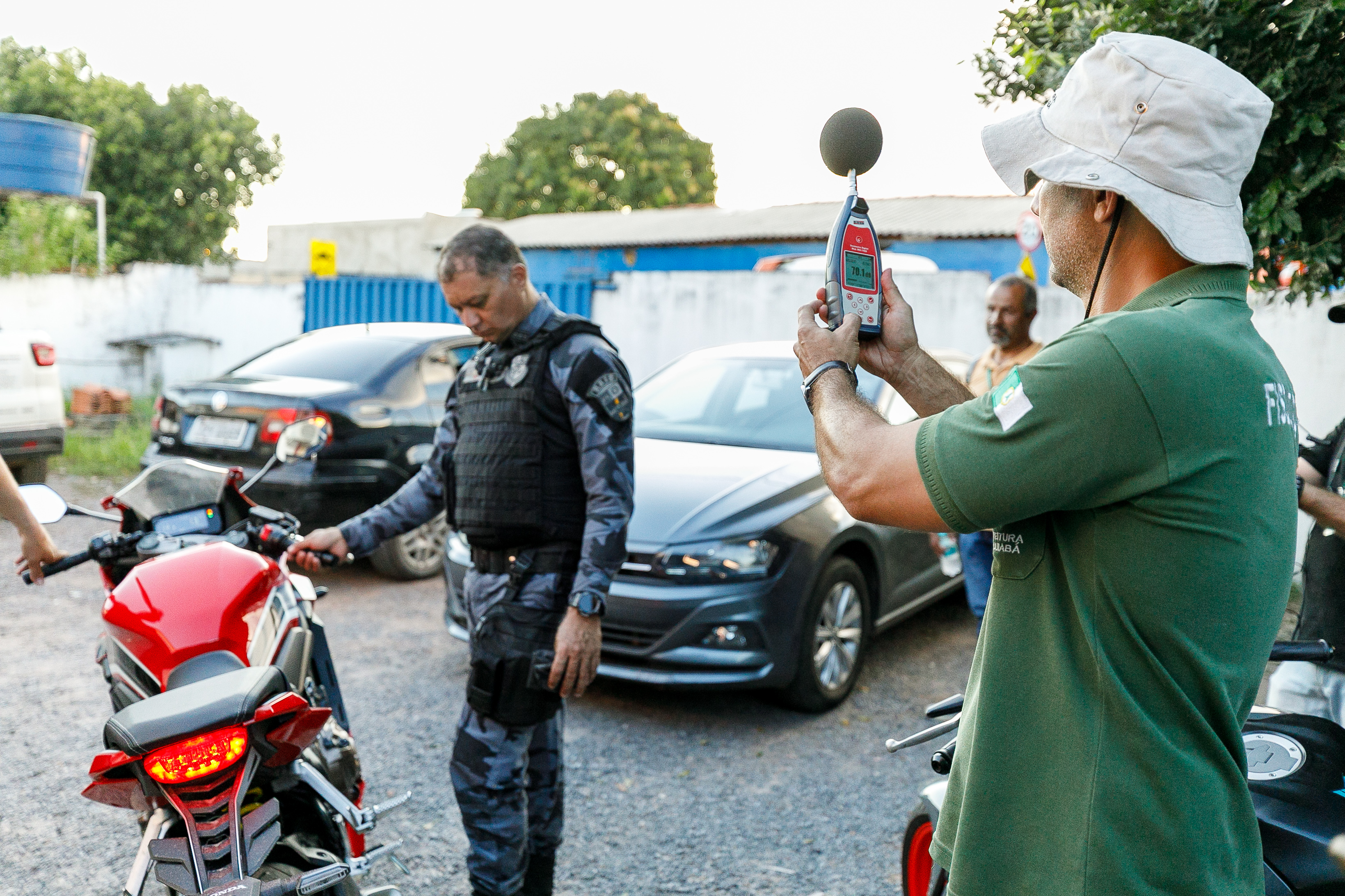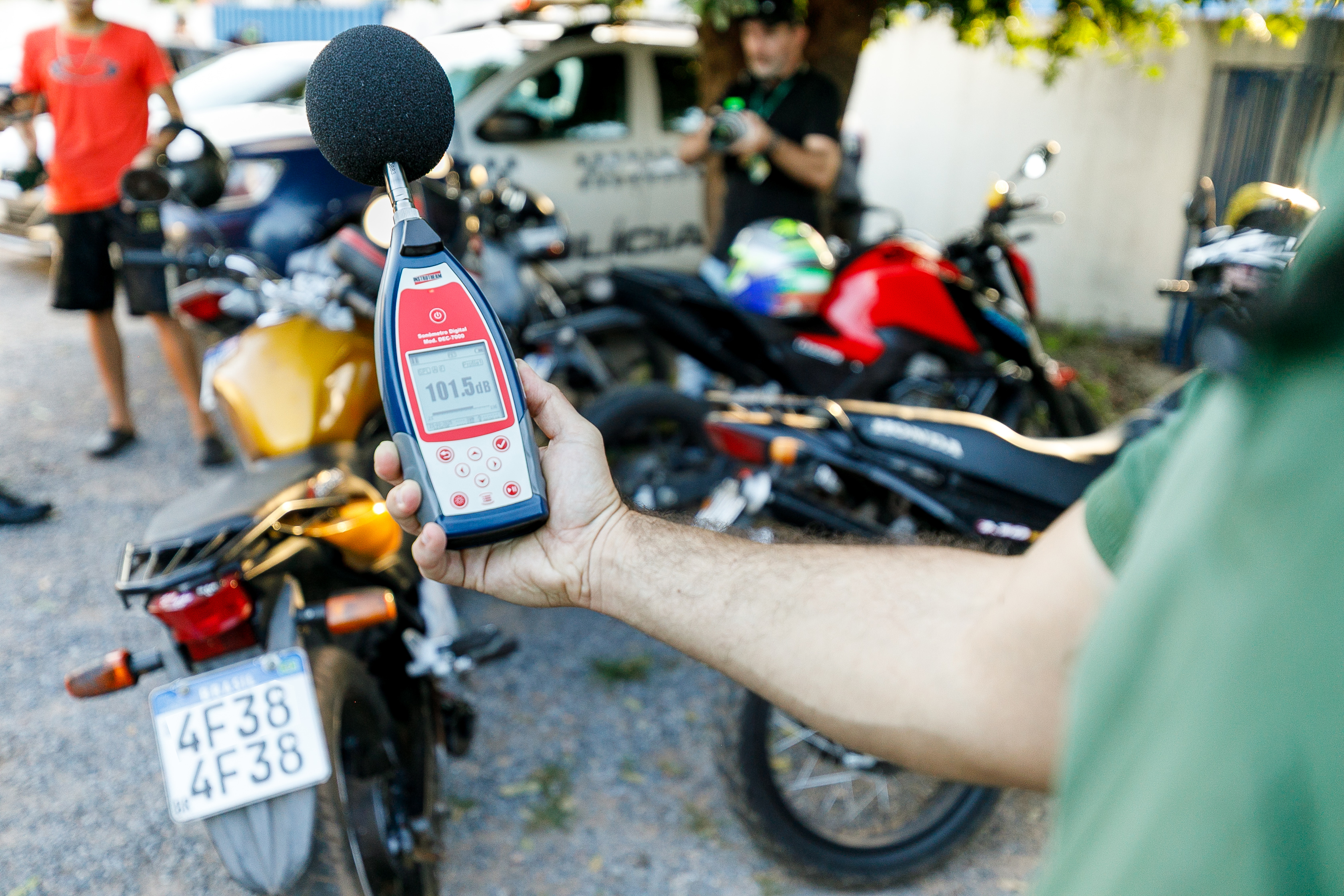 Lá, fiscais da Ordem Pública procederam com a medição dos sons emitidos pelos escapamentos, se verificando, a partir daí, índices elevados e incompatíveis com as normas de bem-estar social.