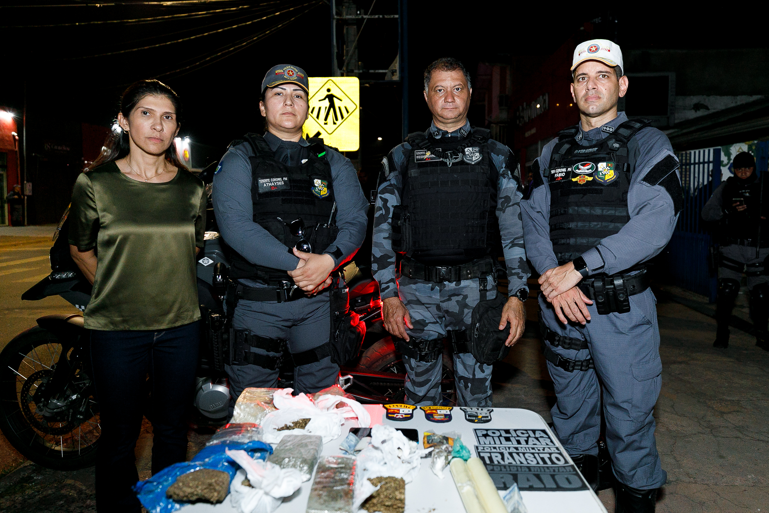 Durante a abordagem, foram cumpridos quatro mandados de prisão de foragidos da Justiça. Um motorista alcoolizado foi encaminhado à Central de Flagrantes. Ainda houve a apreensão de 2 kg de maconha e 1 kg de pasta base.