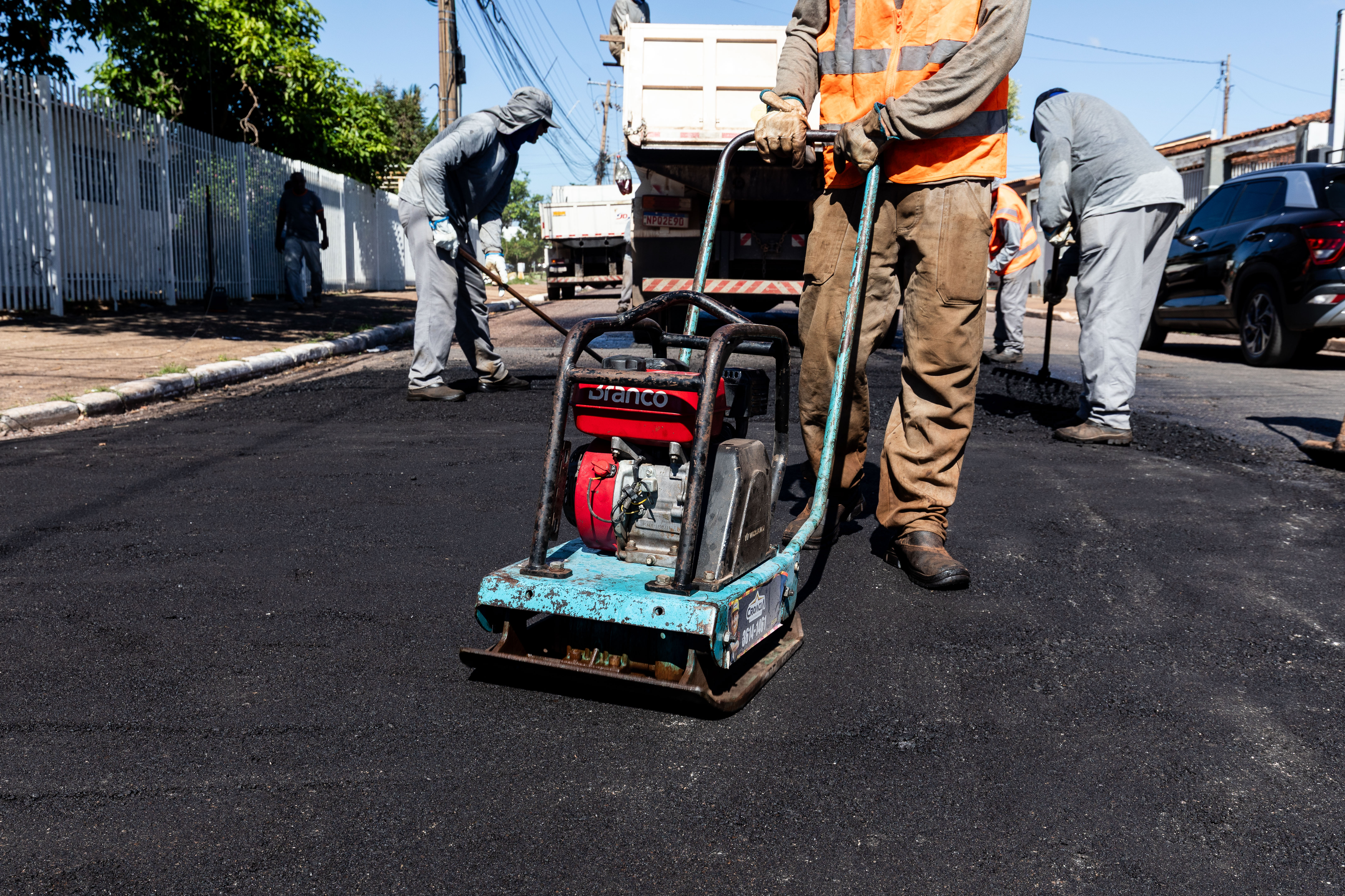 Ao todo, 130 colaboradores estão diretamente envolvidos na execução dos serviços, que seguem um padrão técnico rigoroso para garantir a durabilidade dos reparos. O processo inclui remoção da umidade com caminhão-pipa, limpeza com apoio de retroescavadeiras, aplicação de brita fina e, por fim, o preenchimento com asfalto quente, que é compactado e nivelado.