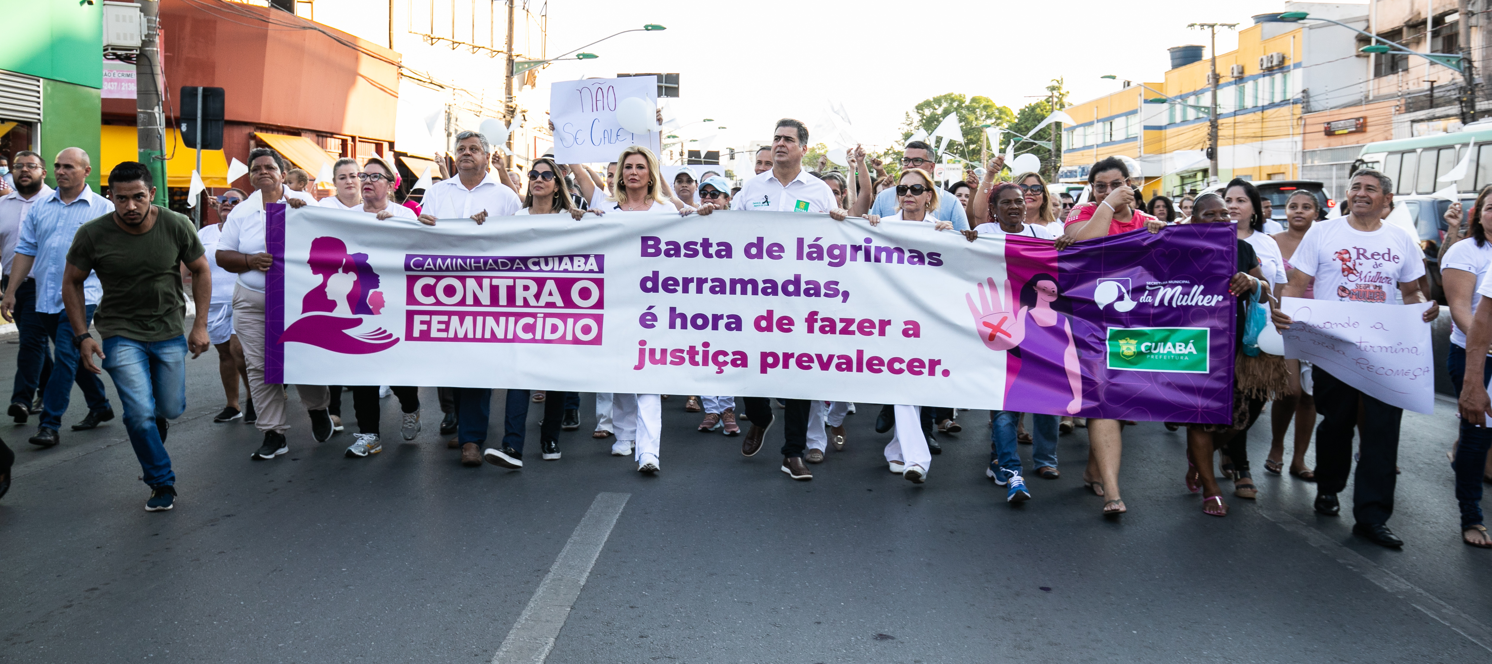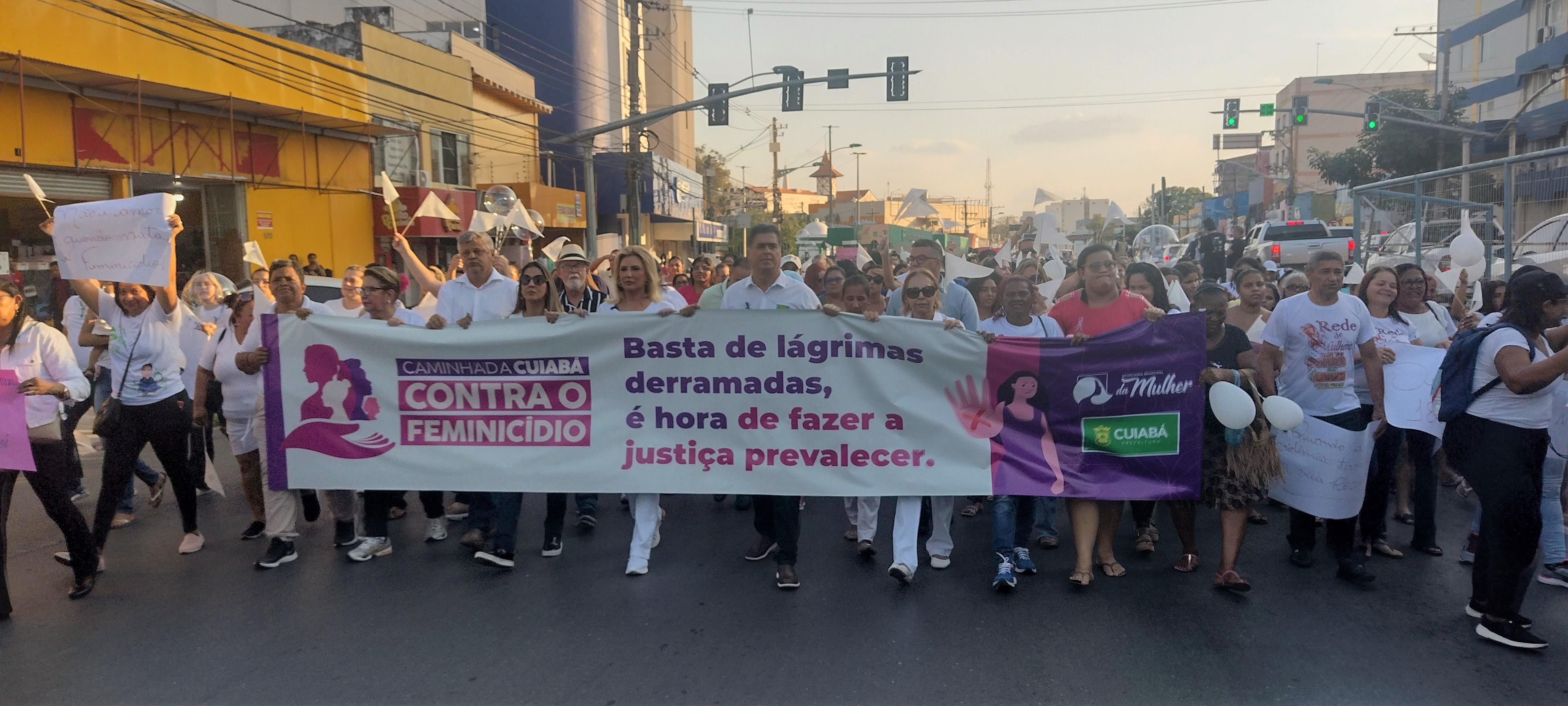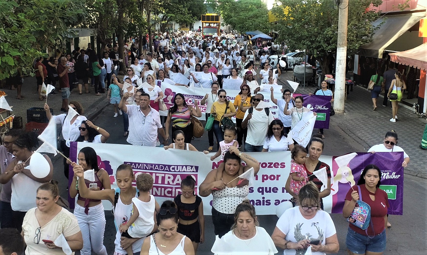 Uma grande caminhada, que reuniu cerca de 700 pessoas, tendo como força propulsora o combate aos feminicídios, tomou conta das ruas de Cuiabá na tarde de sexta-feira (1). O evento, organizado pela Prefeitura de Cuiabá por meio do Núcleo da Primeira-dama Márcia Pinheiro, percorreu as principais vias da cidade, promovendo uma reflexão que deve começar dentro de casa.