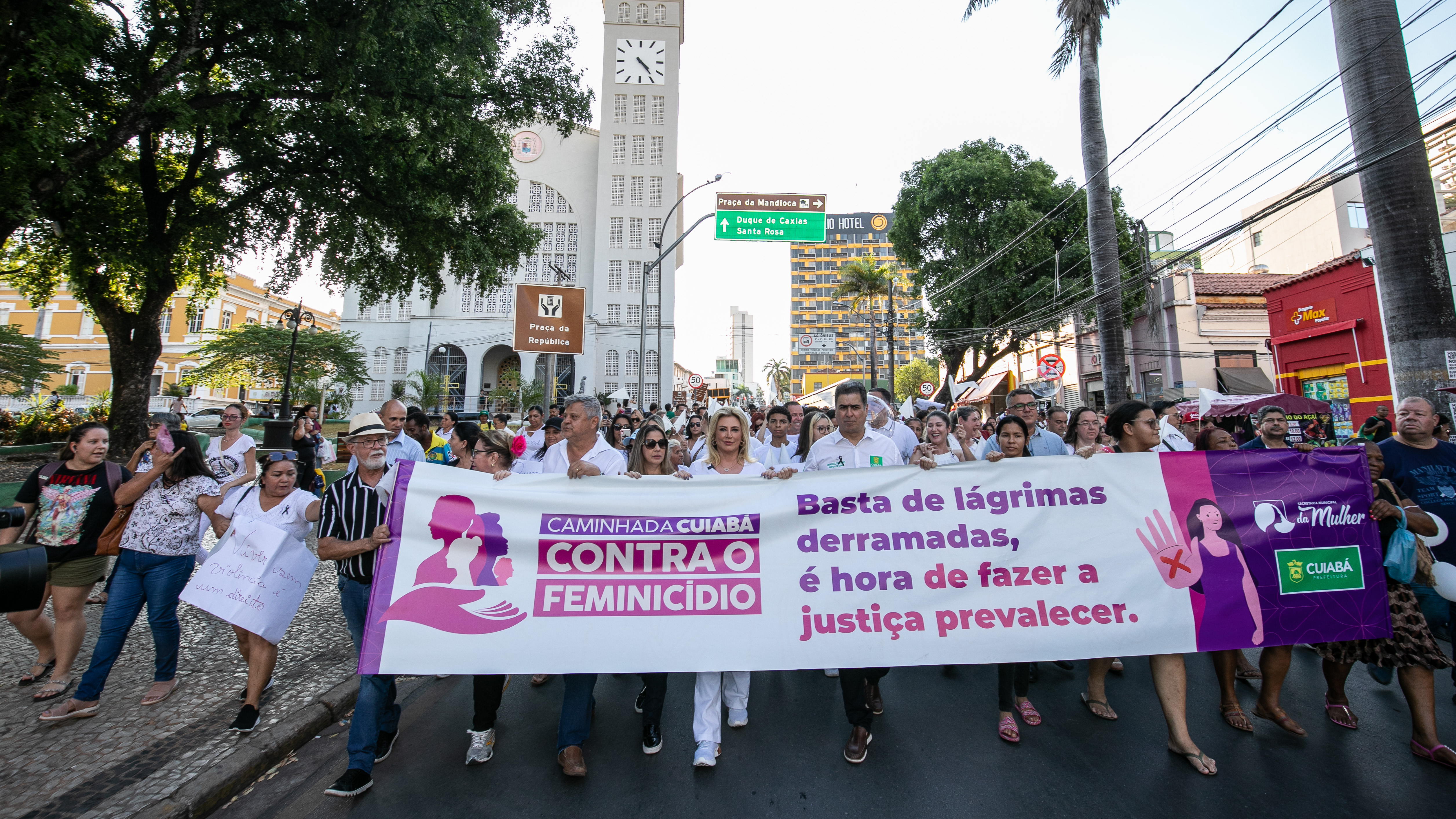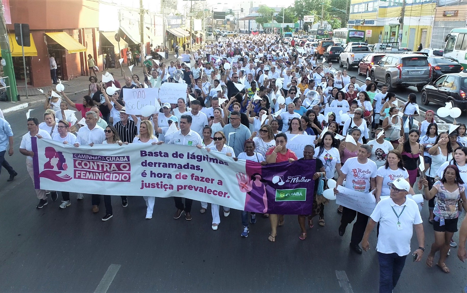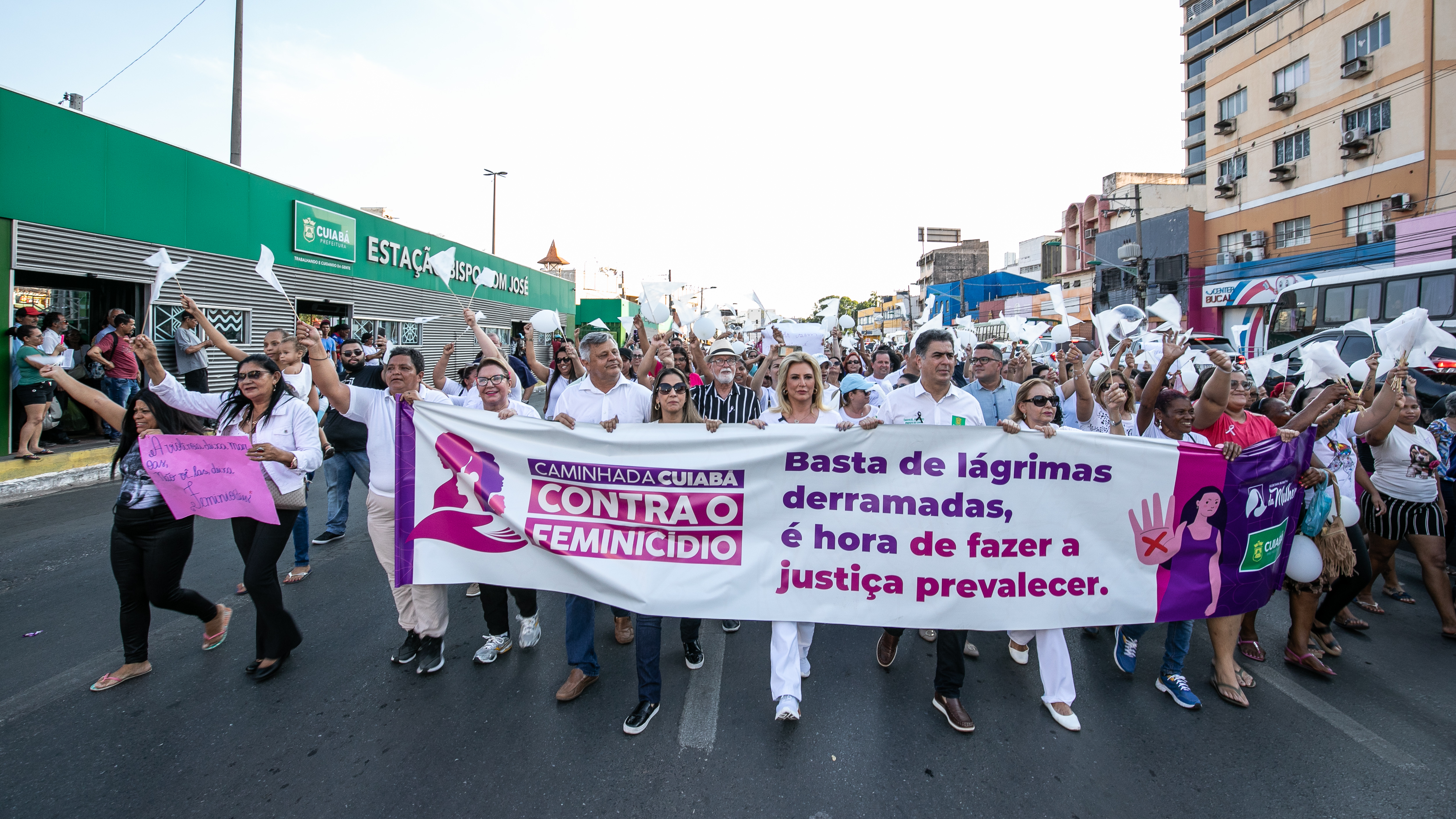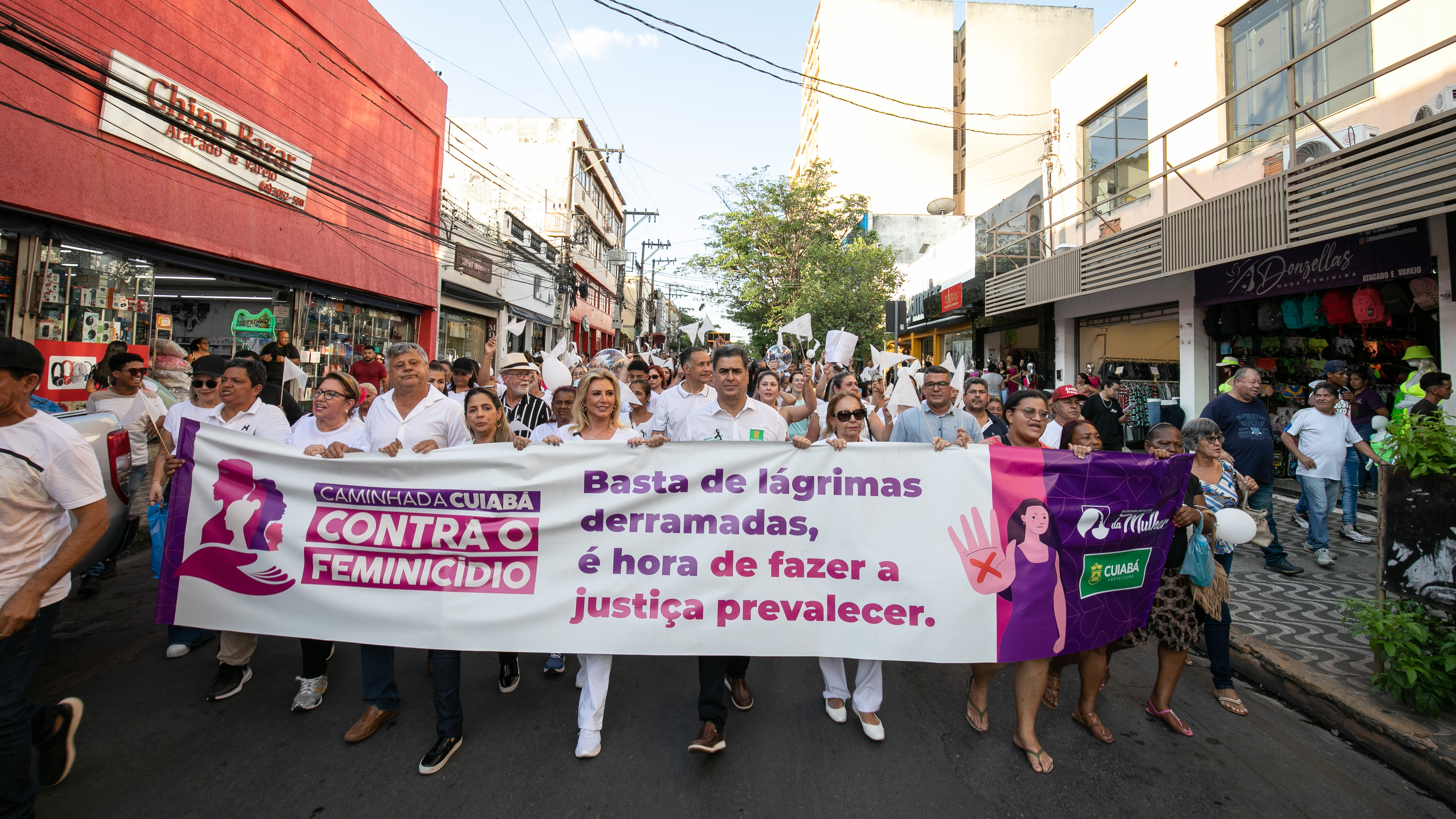 Uma grande caminhada, que reuniu cerca de 700 pessoas, tendo como força propulsora o combate aos feminicídios, tomou conta das ruas de Cuiabá na tarde de sexta-feira (1). O evento, organizado pela Prefeitura de Cuiabá por meio do Núcleo da Primeira-dama Márcia Pinheiro, percorreu as principais vias da cidade, promovendo uma reflexão que deve começar dentro de casa.