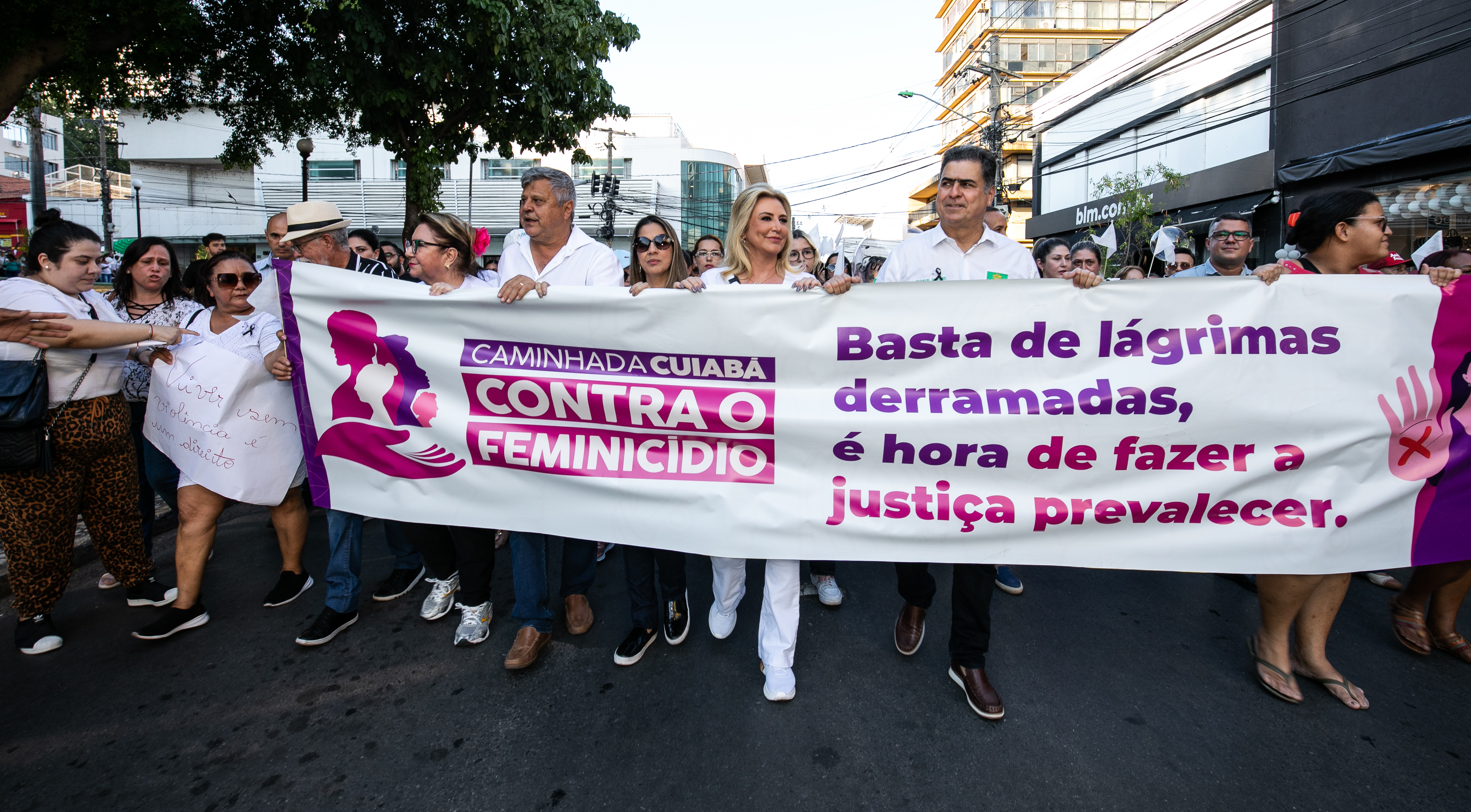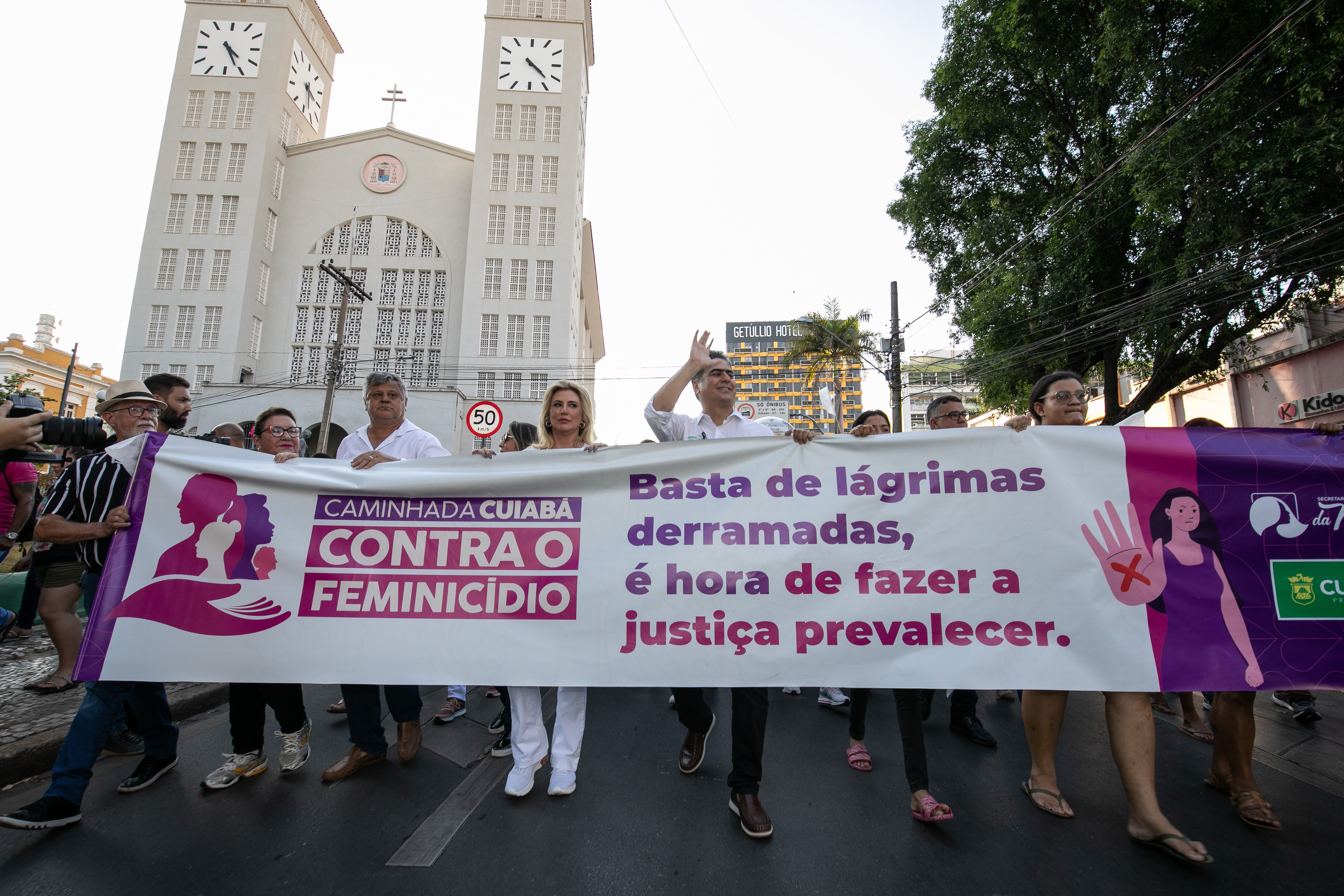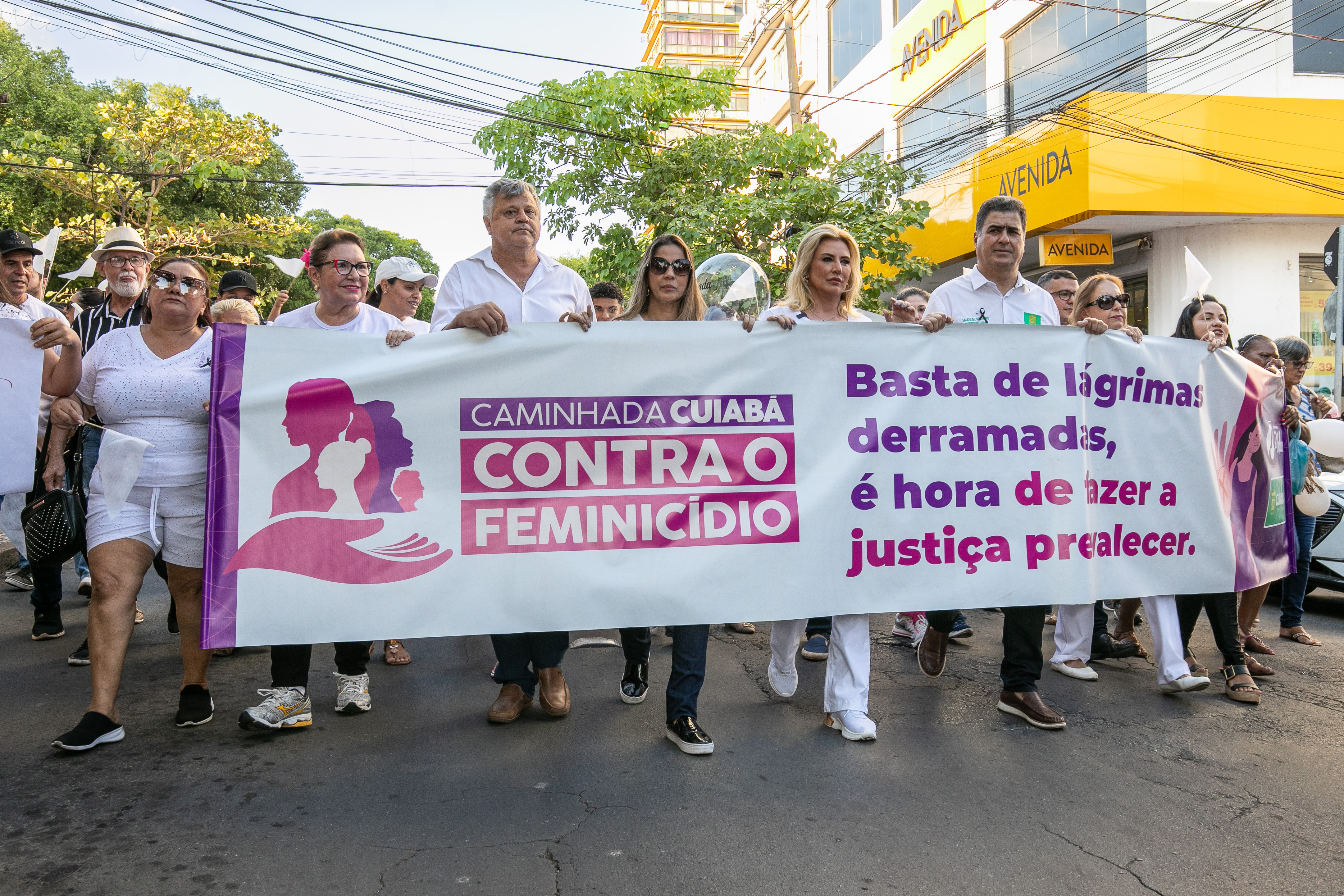O prefeito de Cuiabá, Emanuel Pinheiro, citou ainda que o combate à violência de gênero é um esforço contínuo que envolve ações em diferentes níveis, legislações e políticas. “A questão do feminicídio não pode ser tratada como apenas mais um tipo de violência penal, nem podemos simplificar o Código Penal de forma excessiva. O feminicídio é uma doença social que não devemos tolerar; precisamos fazer todos os esforços para combatê-lo e rejeitá-lo em nossa capital. A primeira-dama, Márcia Pinheiro, lidera essa causa que ganhou reconhecimento nacional, com o apoio de inúmeras autoridades e mulheres defensoras da causa. Todos demonstraram total apoio à iniciativa da primeira-dama, e estamos empenhados em fazer de Cuiabá uma referência na luta e repúdio ao feminicídio. Nesse combate, as mulheres são as principais vítimas. Já temos um programa inovador em todo o Brasil, chamado Solidariedade em Ação, criado pela primeira-dama Márcia Pinheiro. Através desse programa, oferecemos apoio financeiro às famílias que acolhem órfãos cujas mães foram vítimas de feminicídio. Algumas dessas famílias estão participando desta caminhada. Cuiabá desponta no cenário nacional por meio do Qualifica, especialmente desenhado pela primeira-dama de Cuiabá, Marcia Pinheiro, como ferramenta de transformação para mulheres que devem e podem empreender e quebrar o ciclo de violência”.