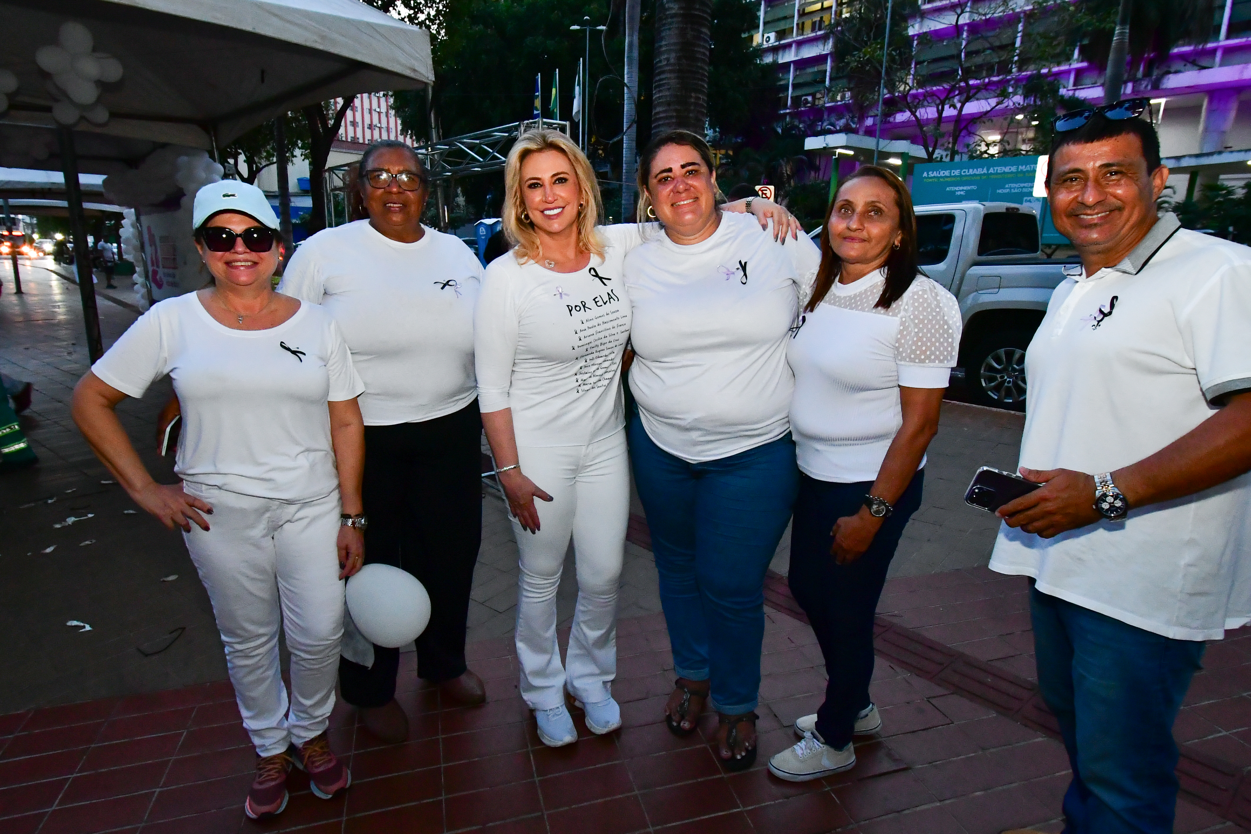 Organizada pela primeira-dama, caminhada contra os feminicidios toma conta das ruas de Cuiabá e reúne 700 pessoas