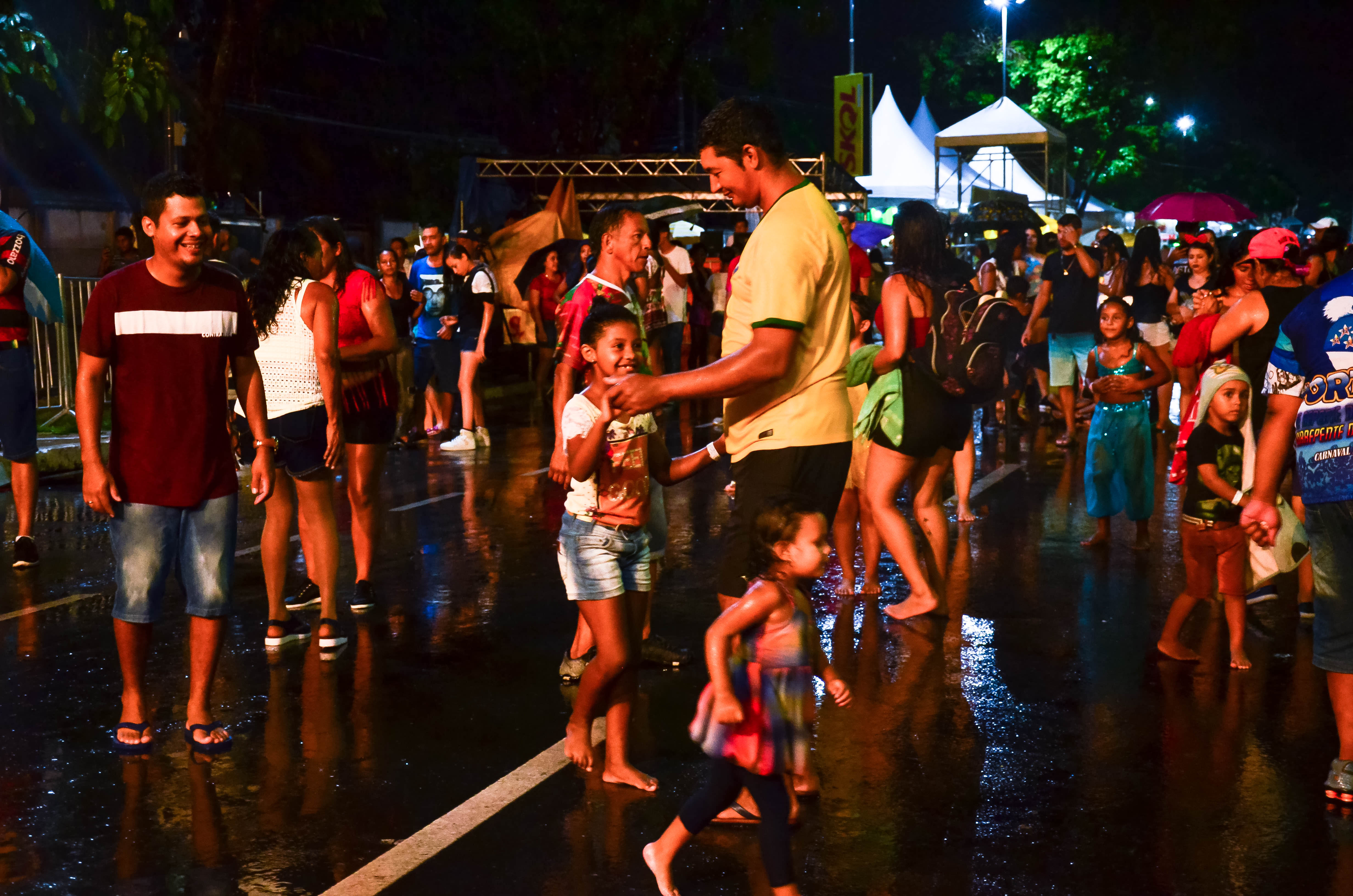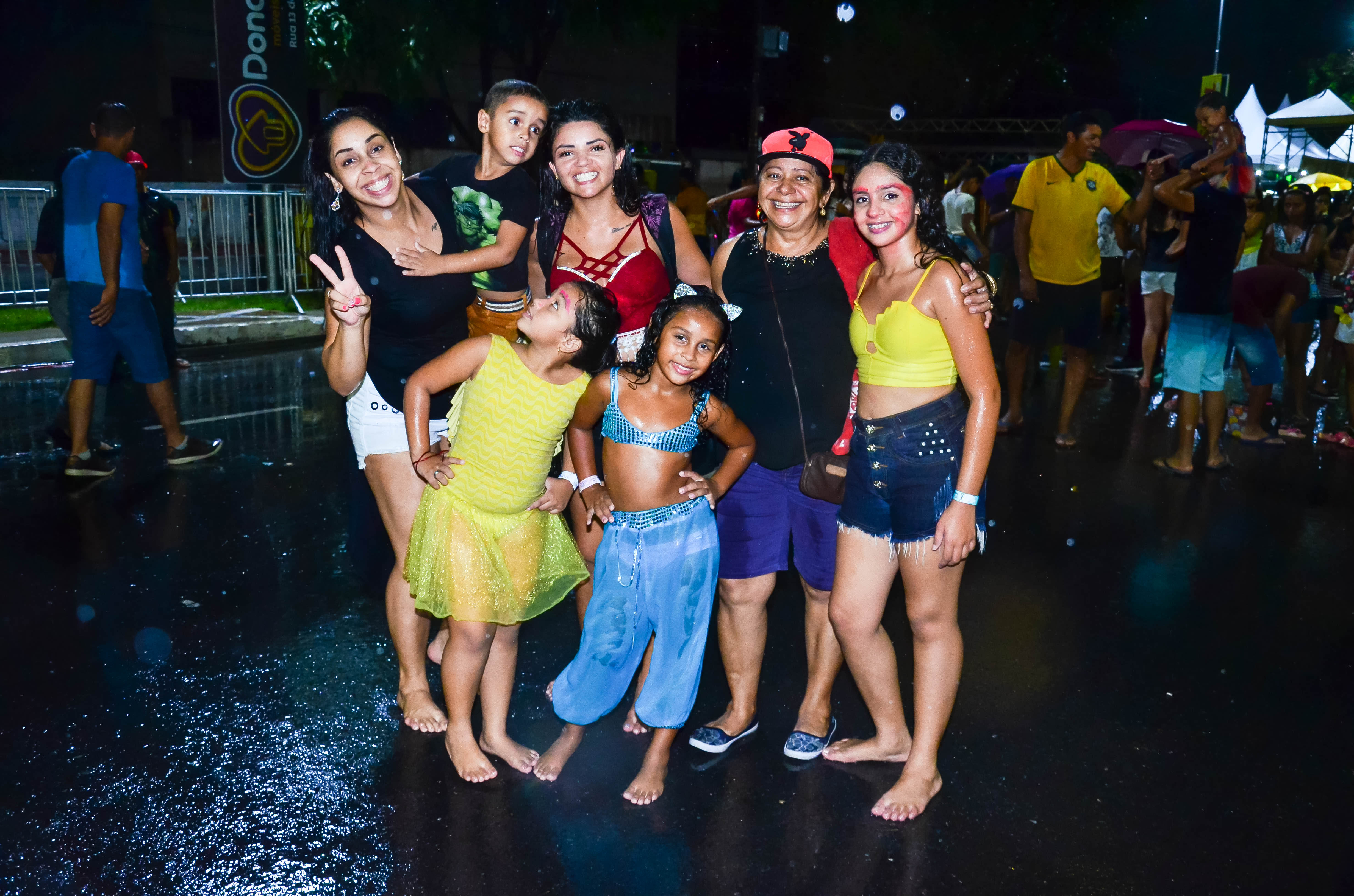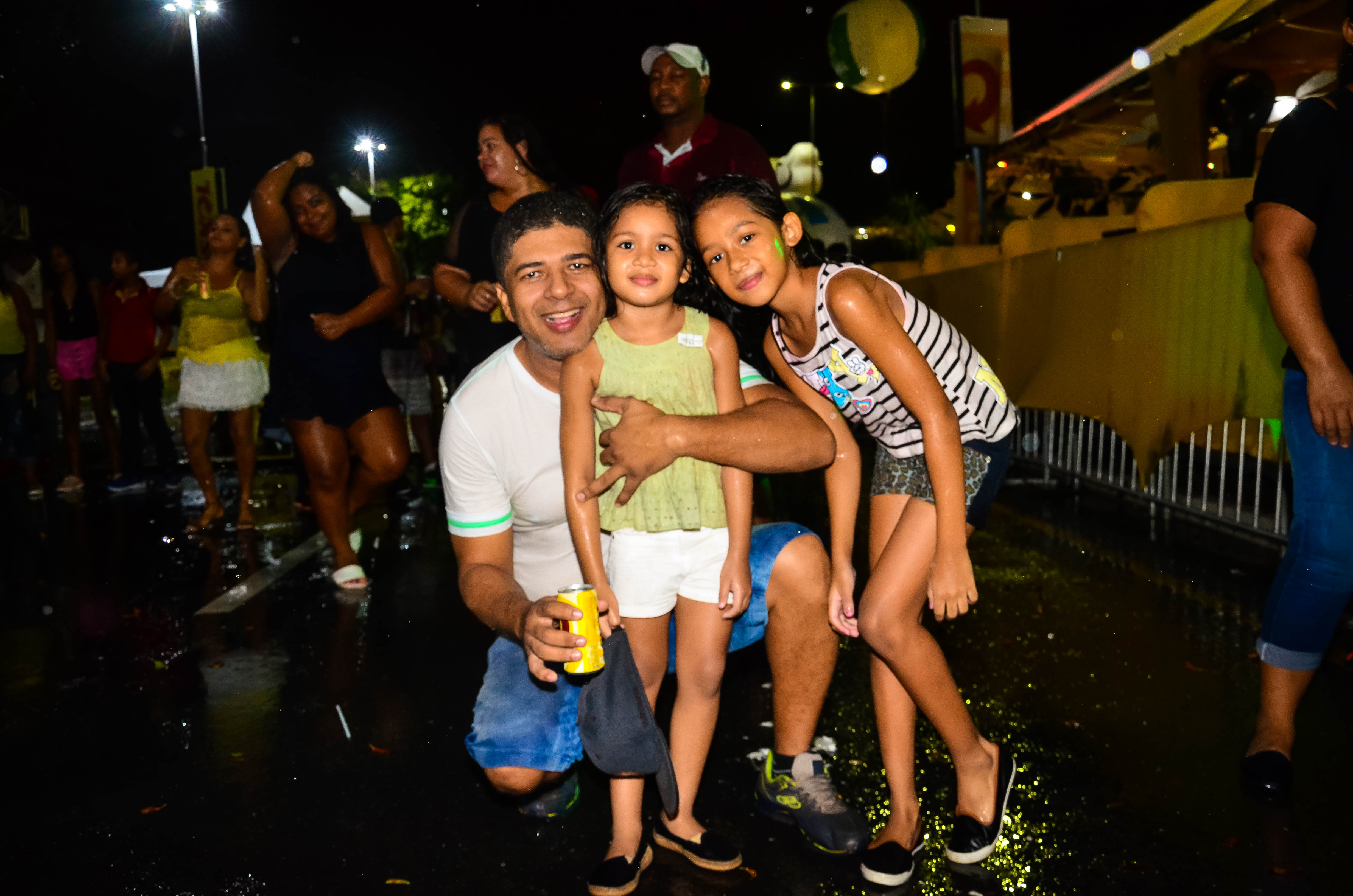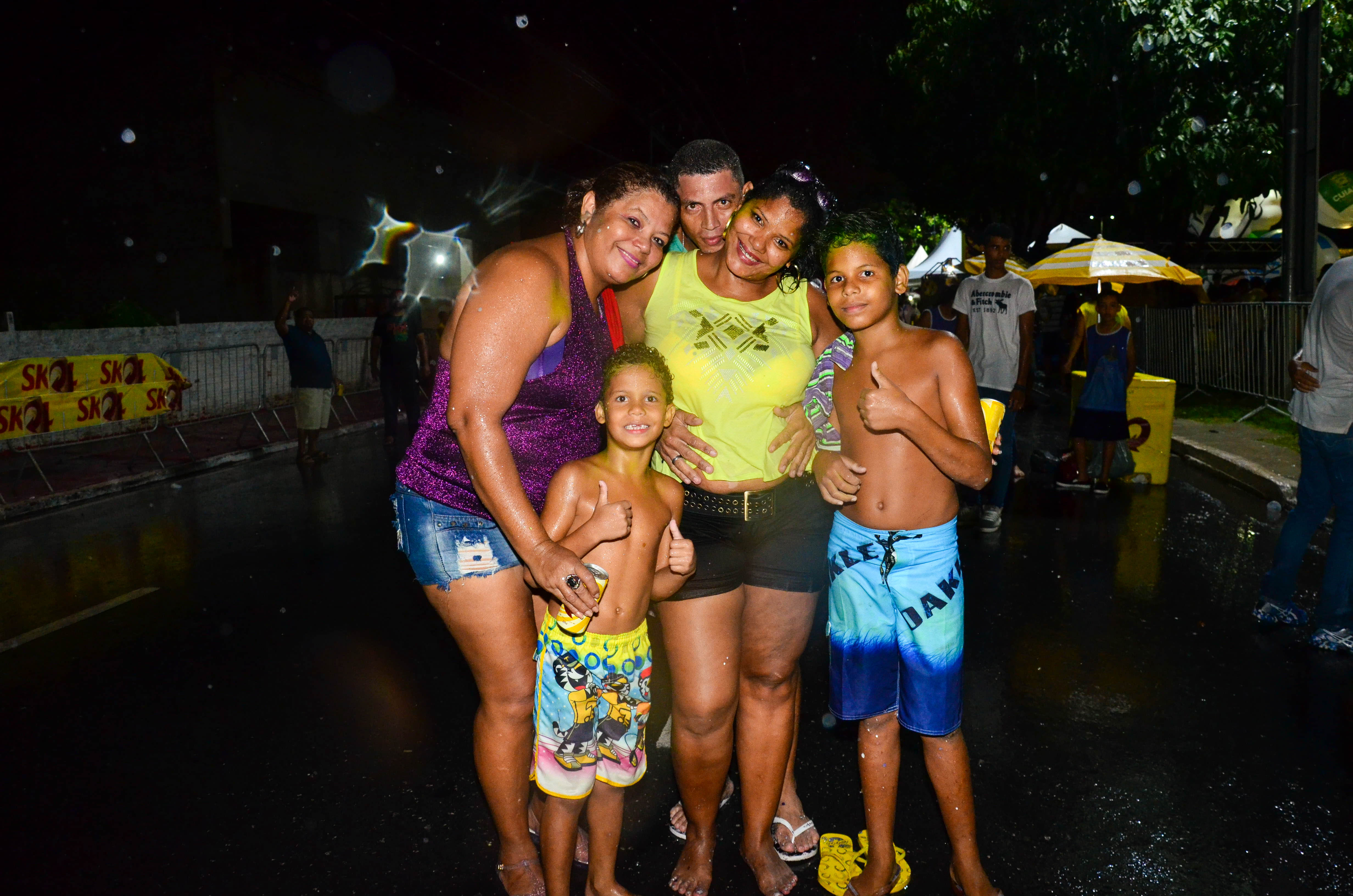 A diversão é nítida nos sorrisos das três primas, que não deixaram a chuva atrapalhar o clima de folia. Luisa Mel, 11, aprovou a festa e não se deixou intimidar pelo clima chuvoso. "Tudo está bem legal e estamos brincando bastante, mesmo com a chuva. Não tenho medo de ficar toda molhada, pois é bem divertido", concluiu.