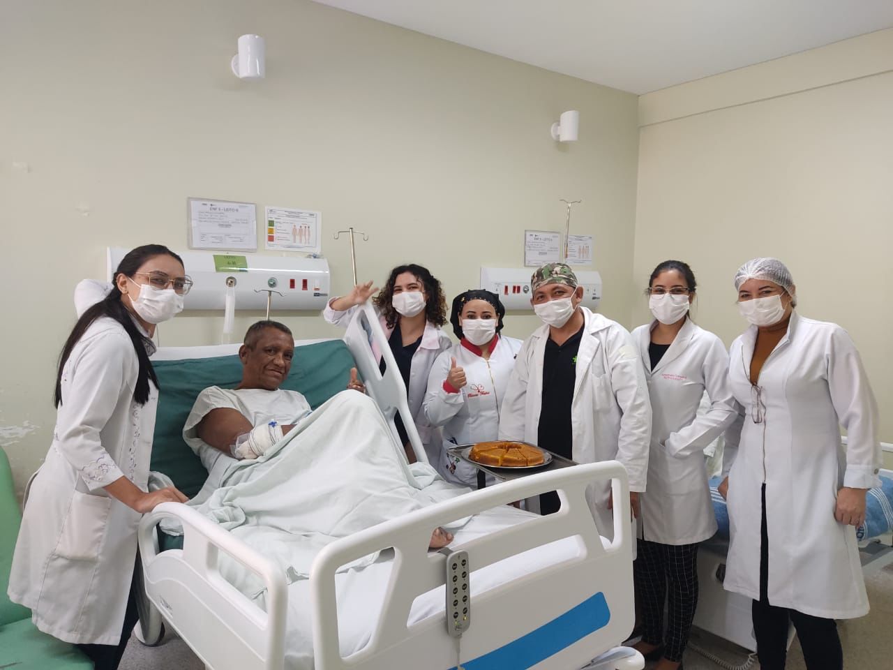 Paciente do HMC que vivia em situação de rua ganha bolo e parabéns em comemoração aos 53 anos de vida