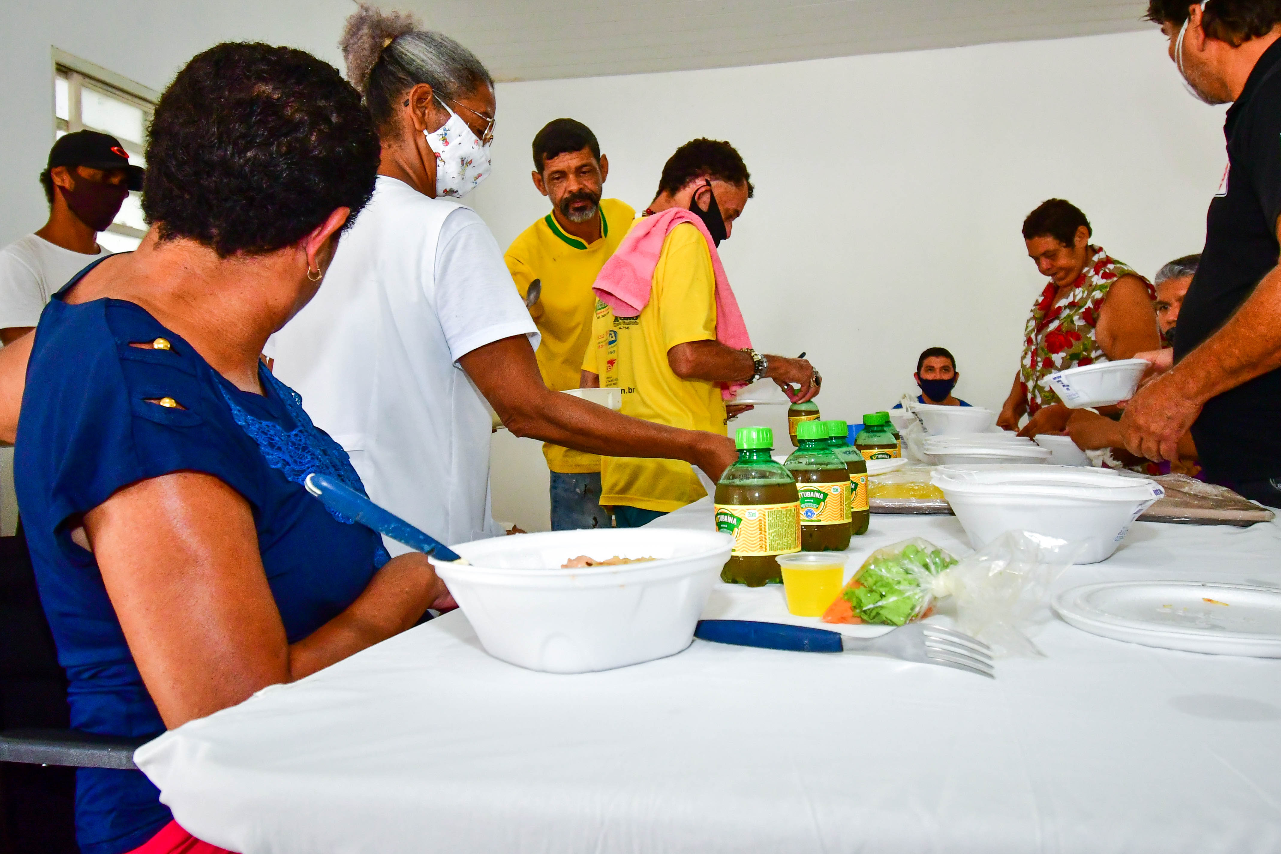 As marmitas foram acompanhadas de salada, gelatina e refrigerantes.
