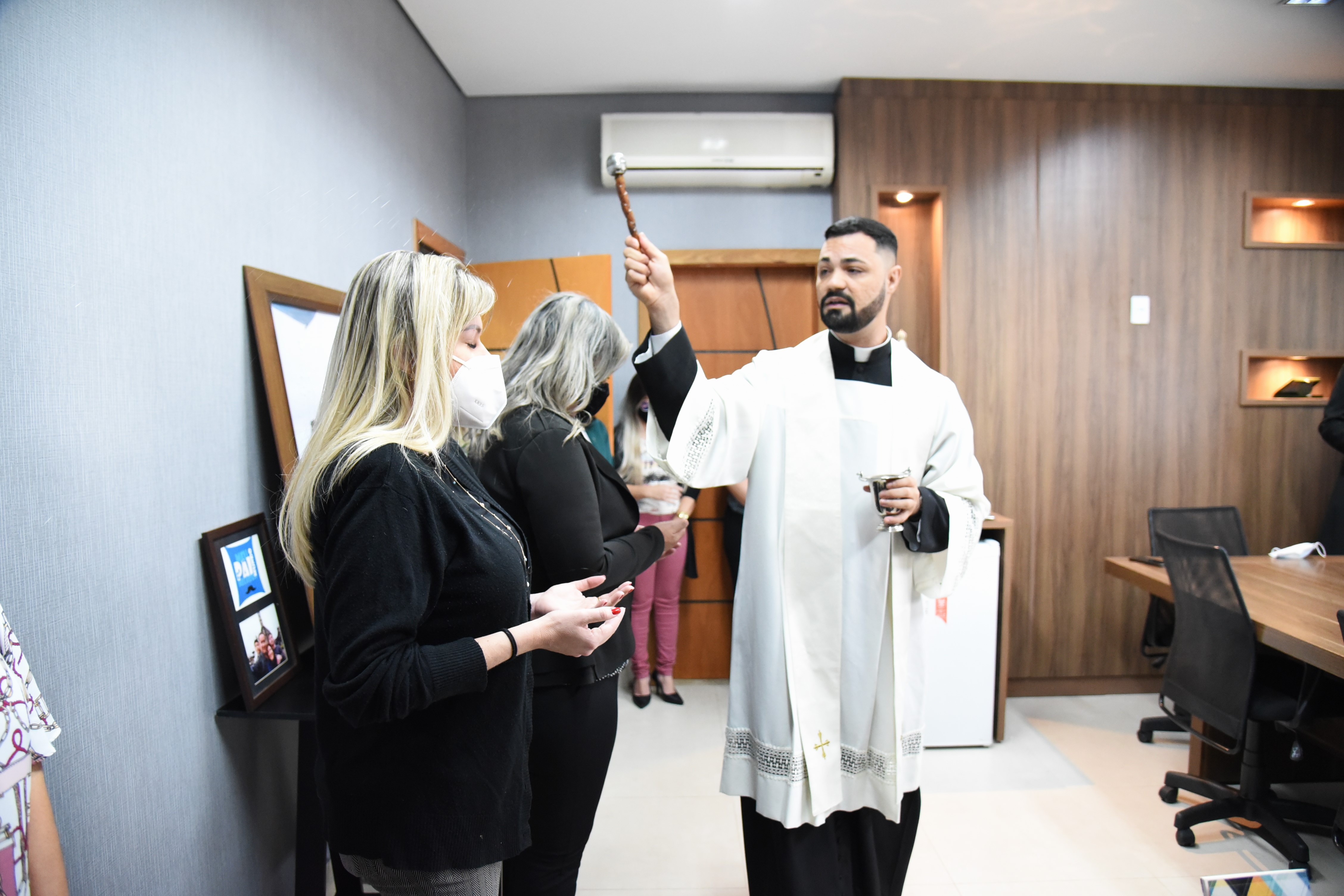A pedido dos servidores da Secretaria Municipal de Governo, o padre Jueberton Enil, esteve no prédio Alencastro, para orar pelo restabelecimento da saúde do secretário da pasta, Luis Cláudio Sodré, que se encontra internado na capital de São Paulo em decorrência da Covid-19.
