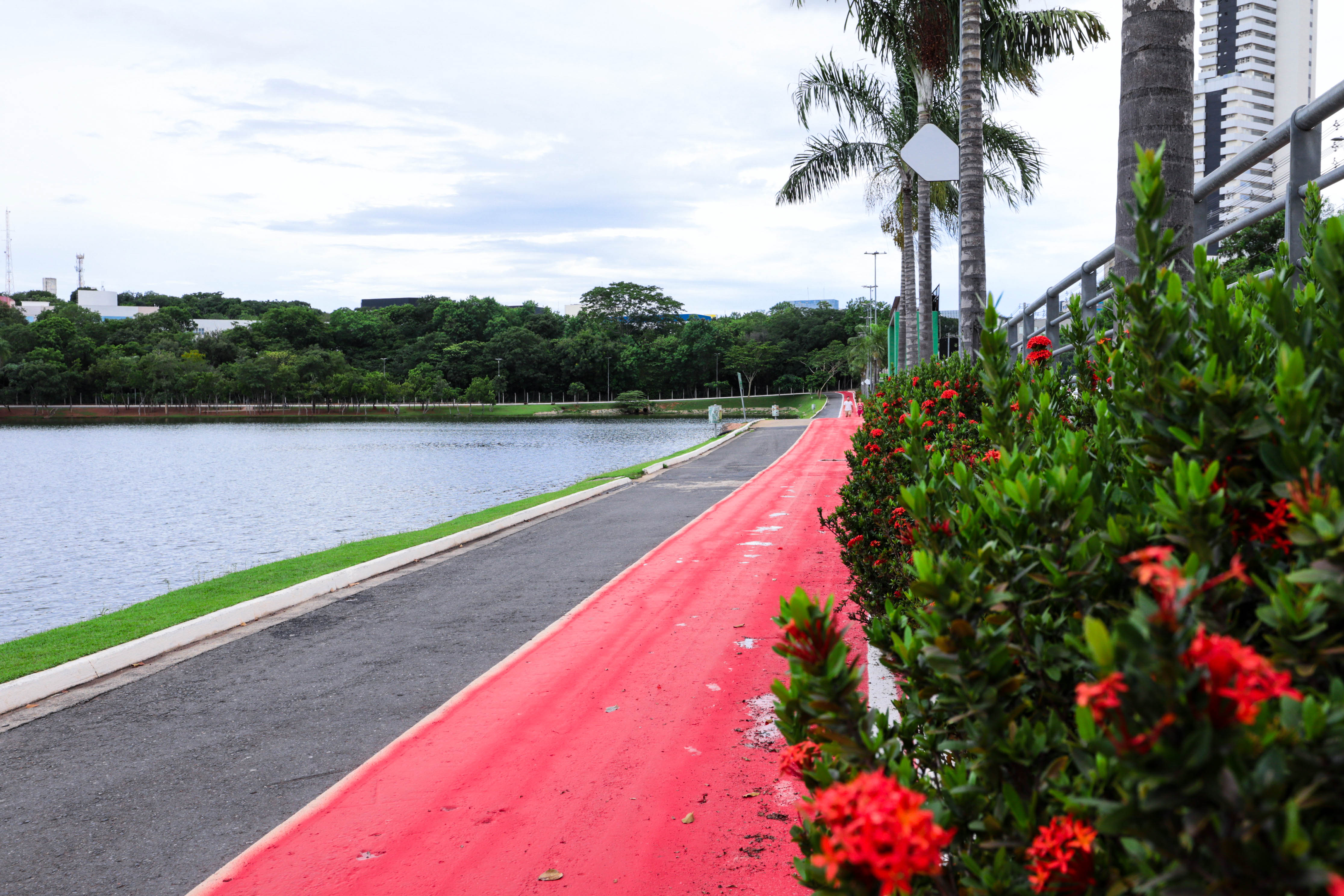 Em uma parceria com a Semob, a ciclofaixa do Parque das Águas foi também completamente revitalizada. A ação atendeu tanto a parte interna quanto o entorno do espaço de lazer, totalizando mais de 1.600 metros de nova pintura e sinalização, garantindo maior segurança aos ciclistas que utilizam a estrutura.