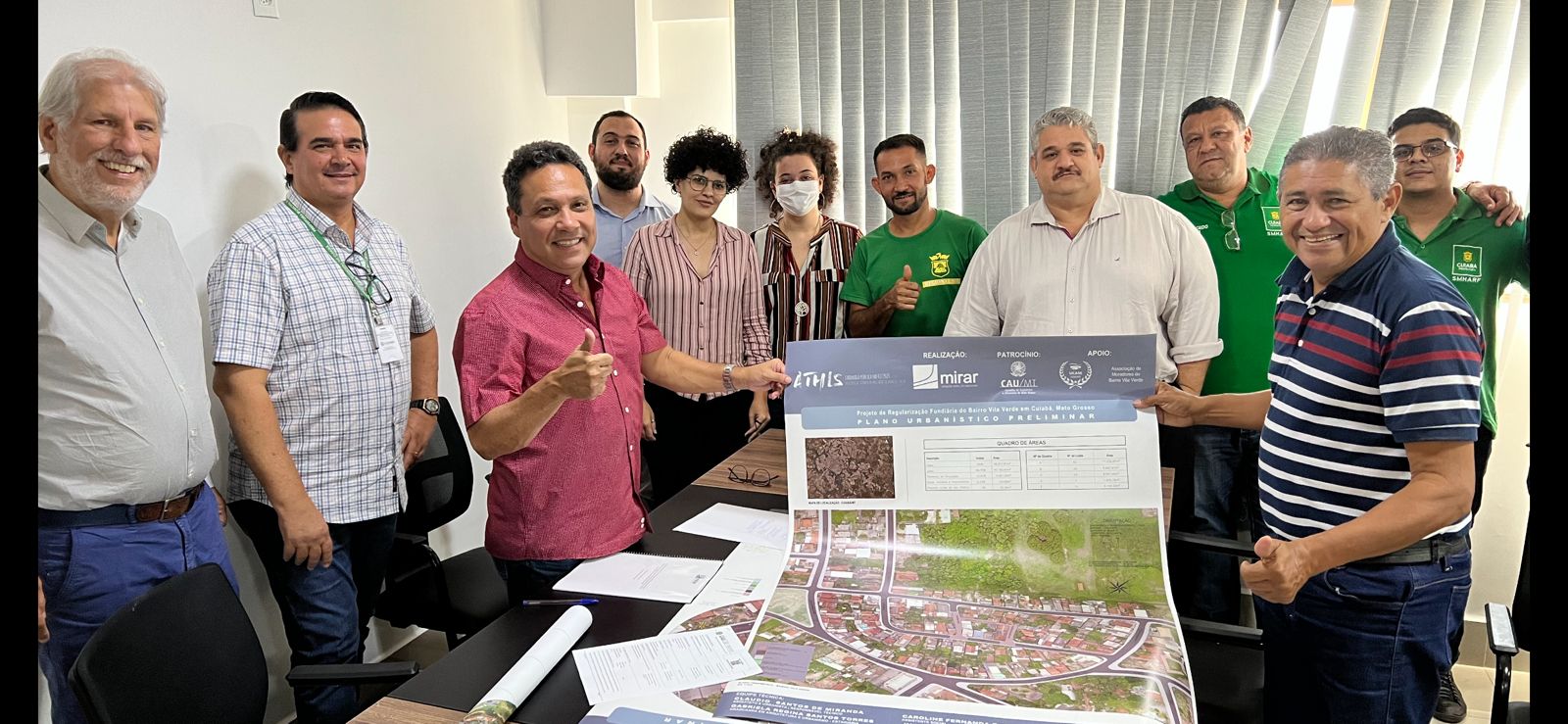 A Prefeitura de Cuiabá, via Secretaria de Habitação e Regularização Fundiária em parceria com a Associação dos Moradores do bairro Vila Verde, recebeu o projeto para a regularização fundiária de 122 famílias. Na semana passada, o secretário de Habitação, Leonardo Leão, se reuniu com representantes da Associação, José Maurício Pereira, e o representante da empresa que idealizou o projeto, o arquiteto Cláudio Miranda.