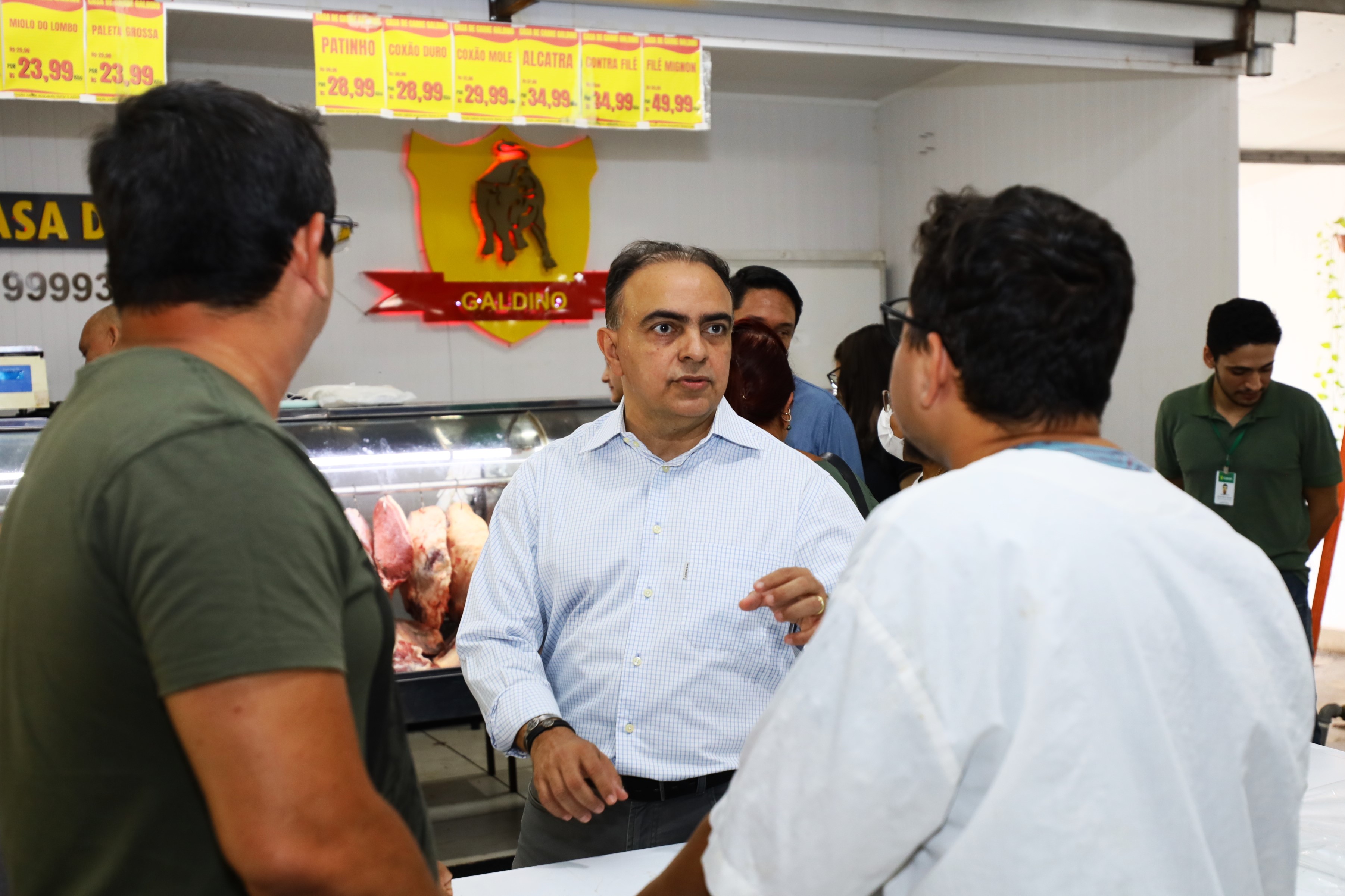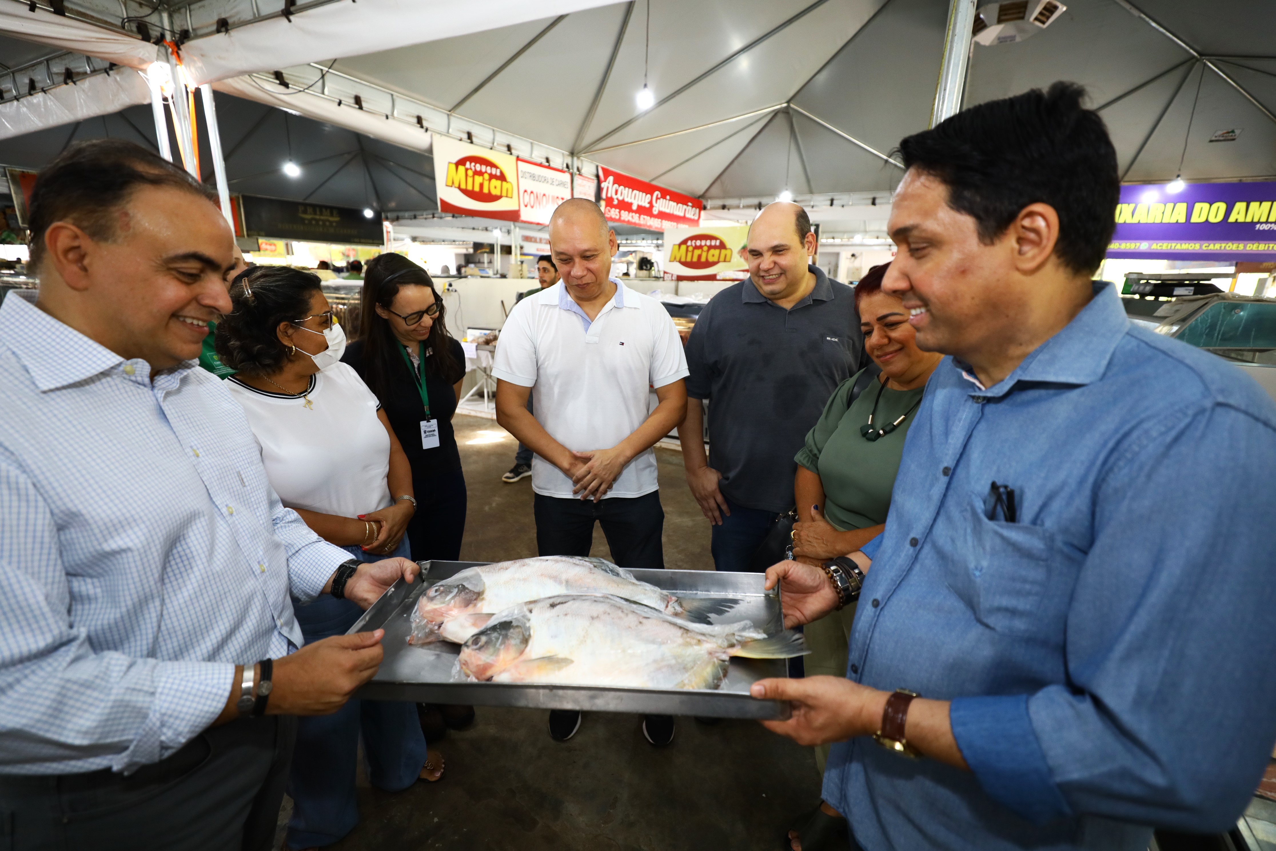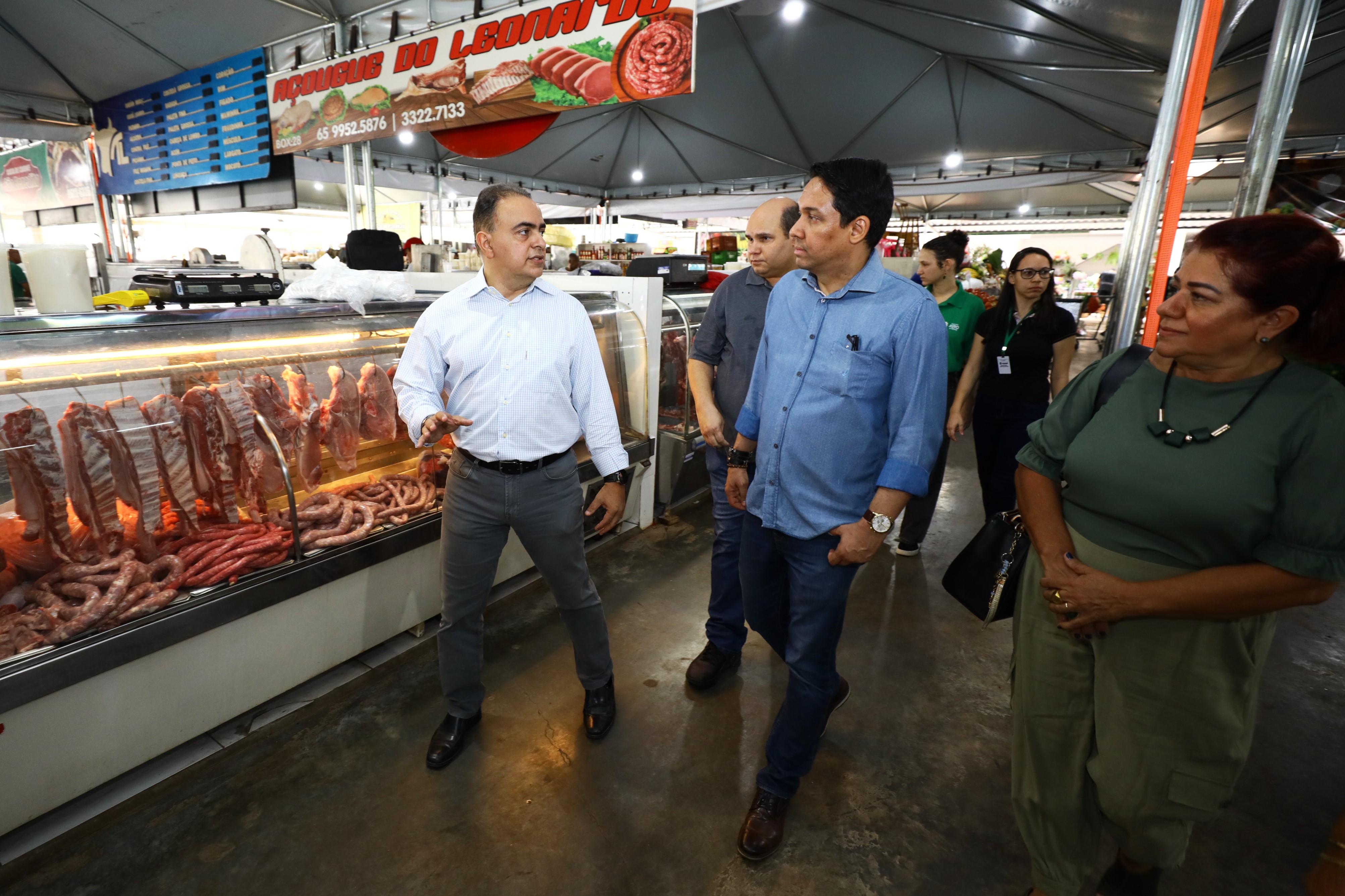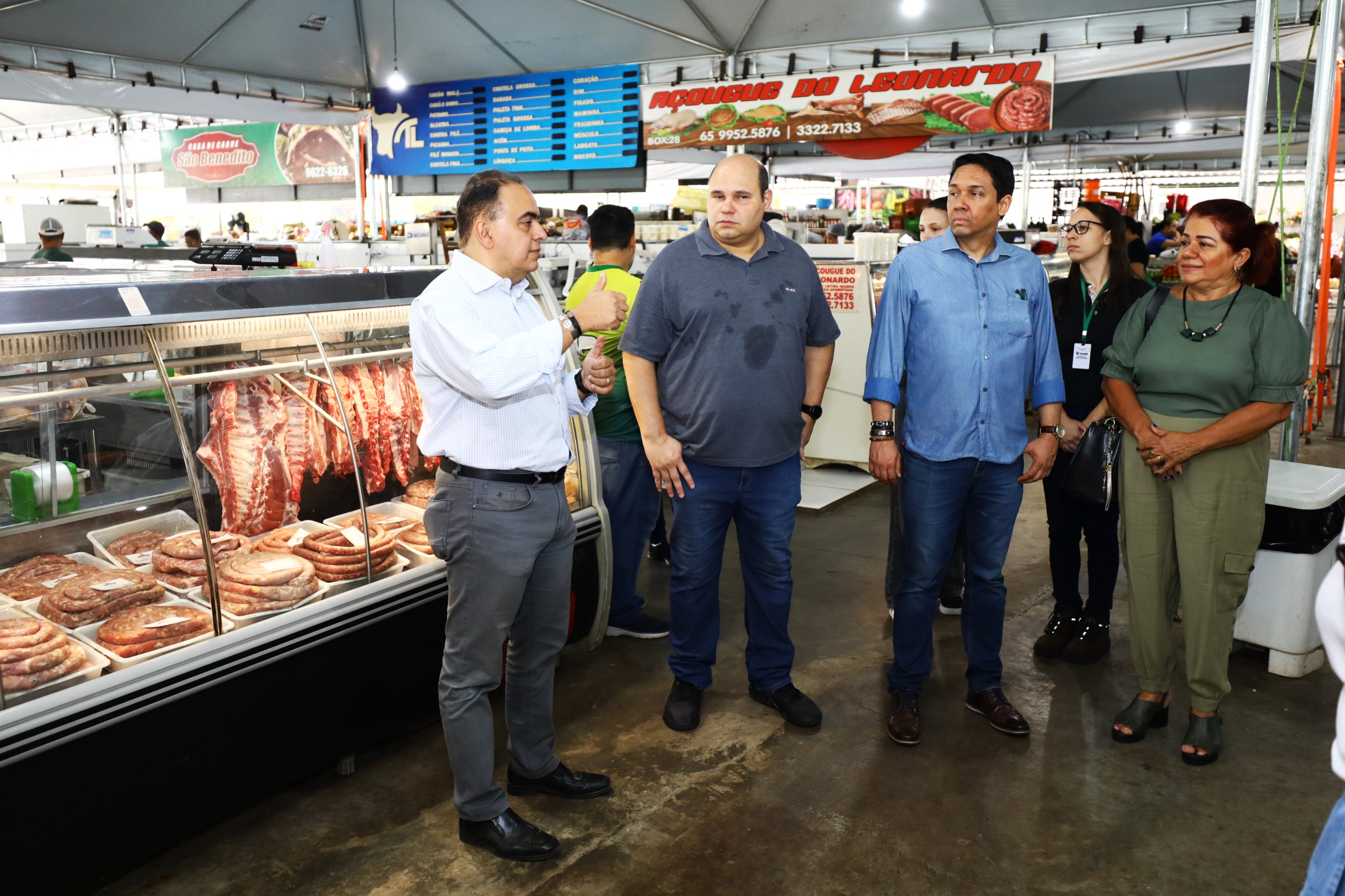 Na manhã desta quarta-feira (25), o secretário municipal de Agricultura, Trabalho e Desenvolvimento Econômico, Francisco Vuolo e a secretária adjunta da pasta, Cácila Nassarden realizaram uma visita técnica ao Mercado Antônio Moyses Nadaf, mais conhecido como Mercado do Porto, acompanhados pelo presidente da Cooperativa de Médicos Veterinários - Unimev-MT, Aldocirio de Araújo Junior, e os diretores Antonio Tadano e Jardel Ferraz.