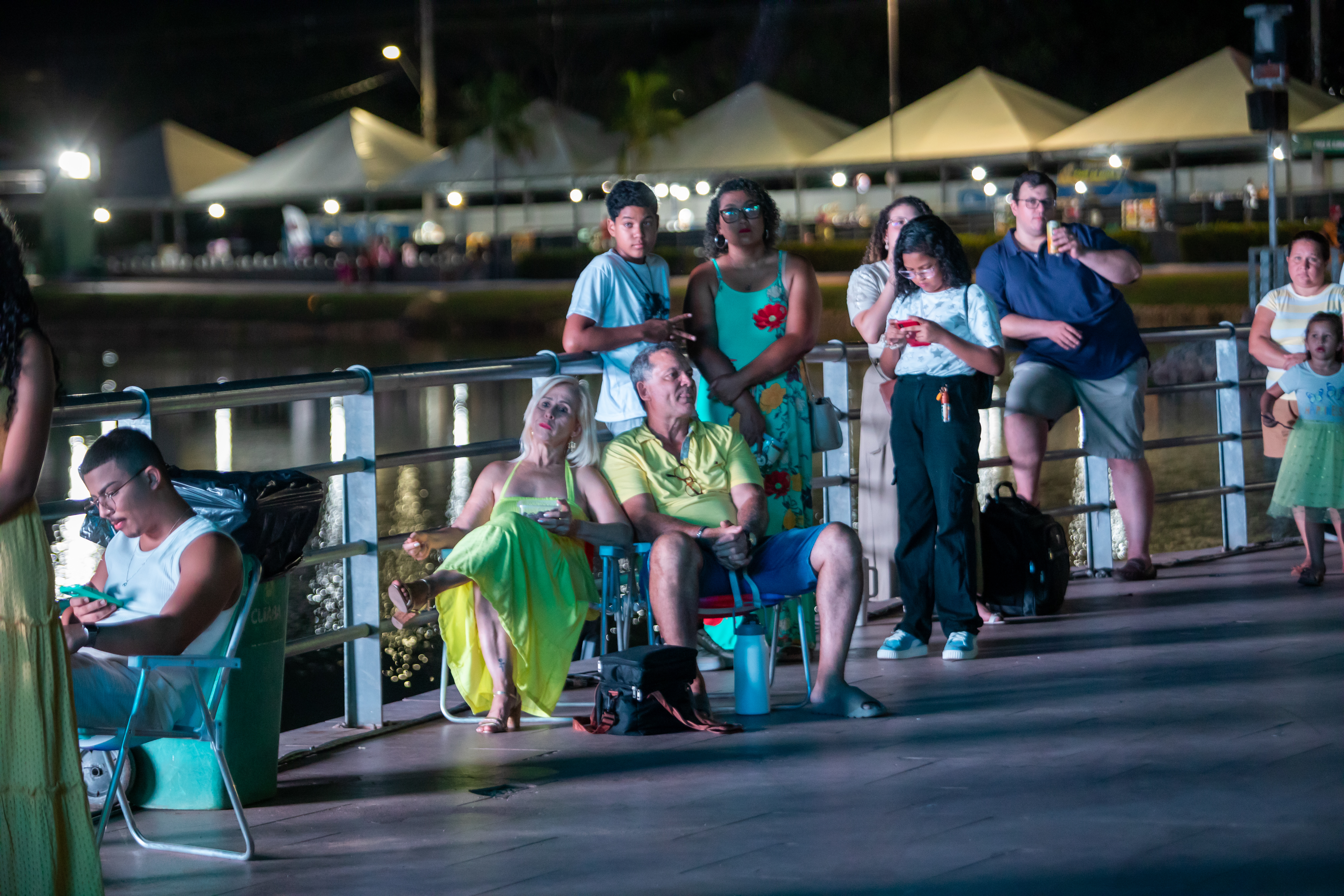 Logo no início da noite, moradores e visitantes começaram a ocupar o espaço, acompanhando de perto as primeiras apresentações e conferindo a estrutura montada para o evento. Entre eles, a moradora do bairro Baú, Cristina Emogênia de Campos, que destacou a expectativa pelas atrações da noite. “Estou de férias, curtindo as festividades, e quero muito ver a banda Rosa de Saron. Está tudo muito lindo, vou acompanhar, é festa”, afirmou.