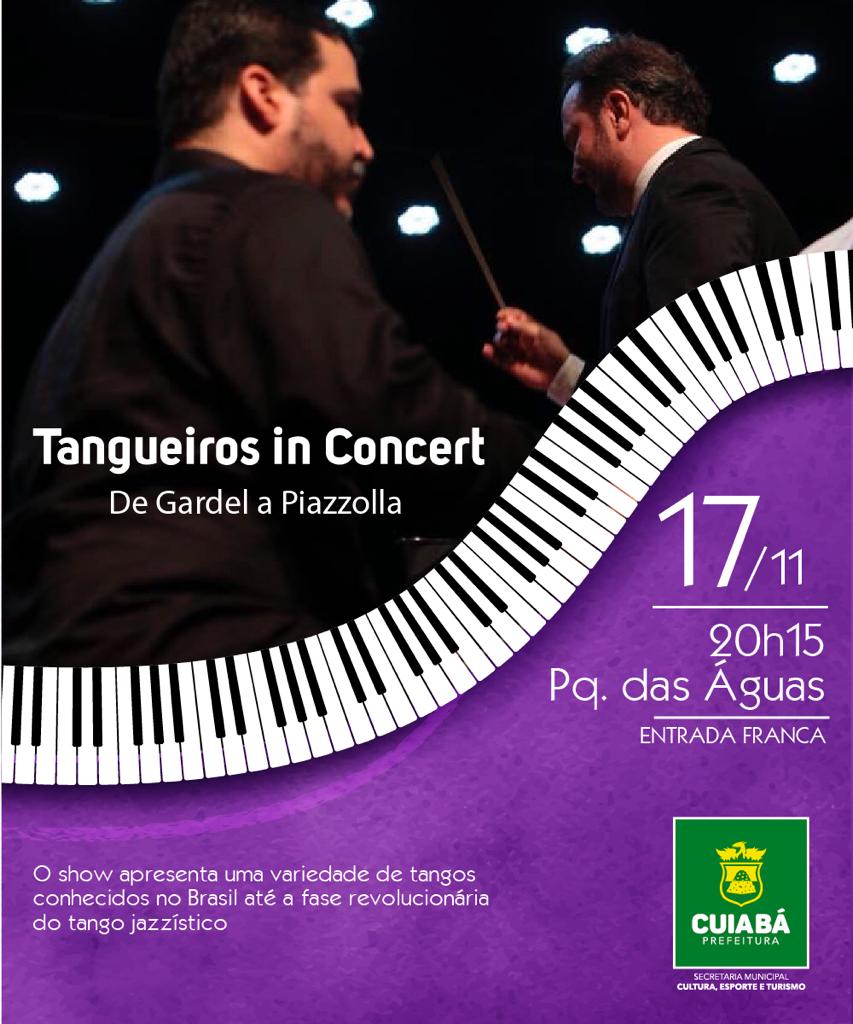 Drama, paixão e sensualidade se misturam à trilha sonora do Parque das Águas no sábado (17). Na data, o trio Tangueiros in Concert apresenta um repertório refinado de tangos, que inclui desde os clássicos de salão até milongas e romanza. Ao longo show, promovido pela Prefeitura de Cuiabá, ganham destaque as composições do Maestro Astor Piazzolla, com as inovações do jazz.