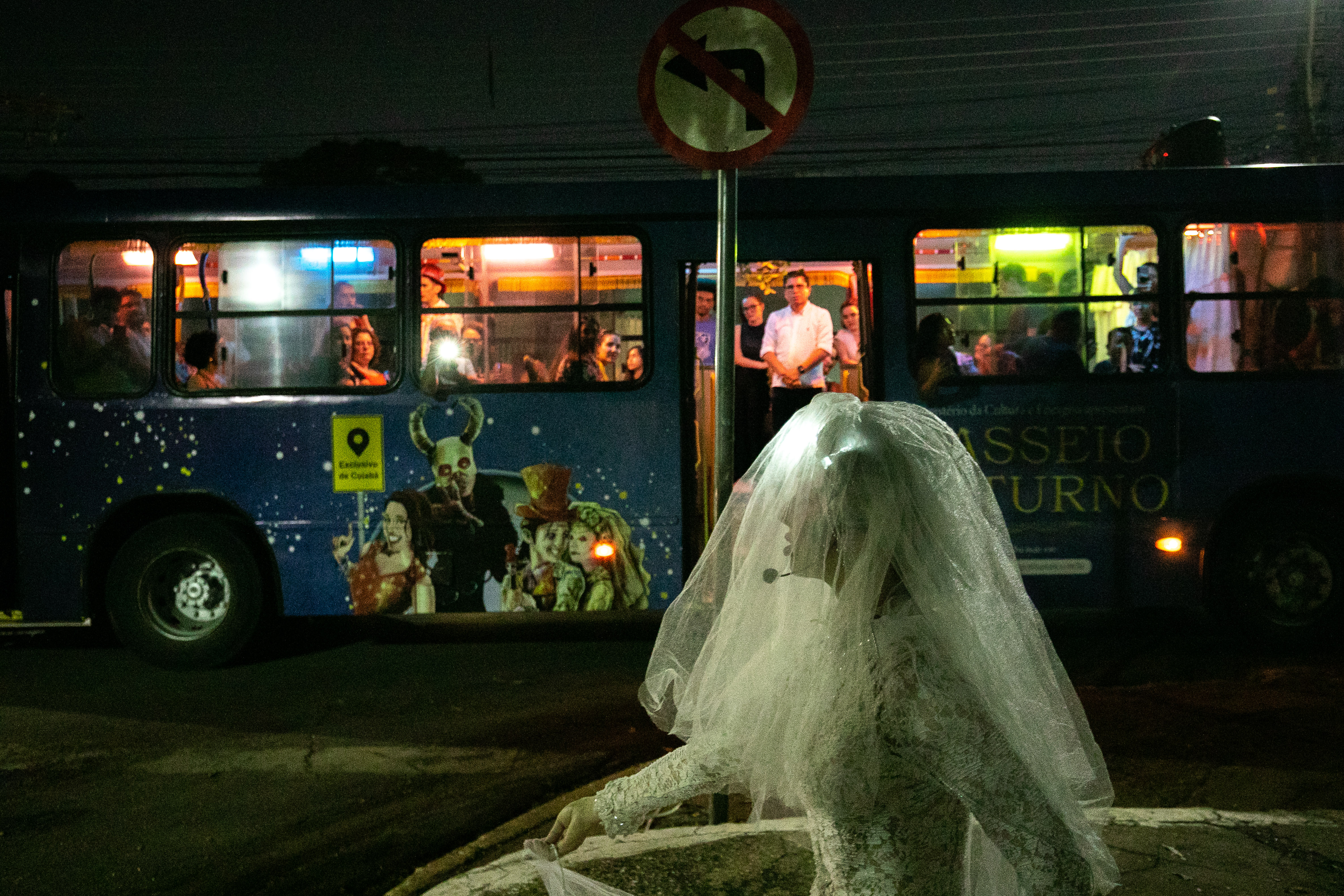 Jefferson Jarcem, um dos produtores do projeto, lembra que o espetáculo estreou em 2013 e passou por várias versões, com a primeira, segunda e terceira temporada. A versão com o ônibus, que é uma parte integral da experiência, começou em 2015. "O Passeio Noturno é uma city tour, onde o público conhece o patrimônio histórico do Centro Histórico de Cuiabá, mas se surpreende com lendas urbanas e histórias misteriosas. O espetáculo gira em torno de personagens como Seu Chico, a Noiva de Branco, Dona Maria (a ganhadora da rádio) e a Morte".