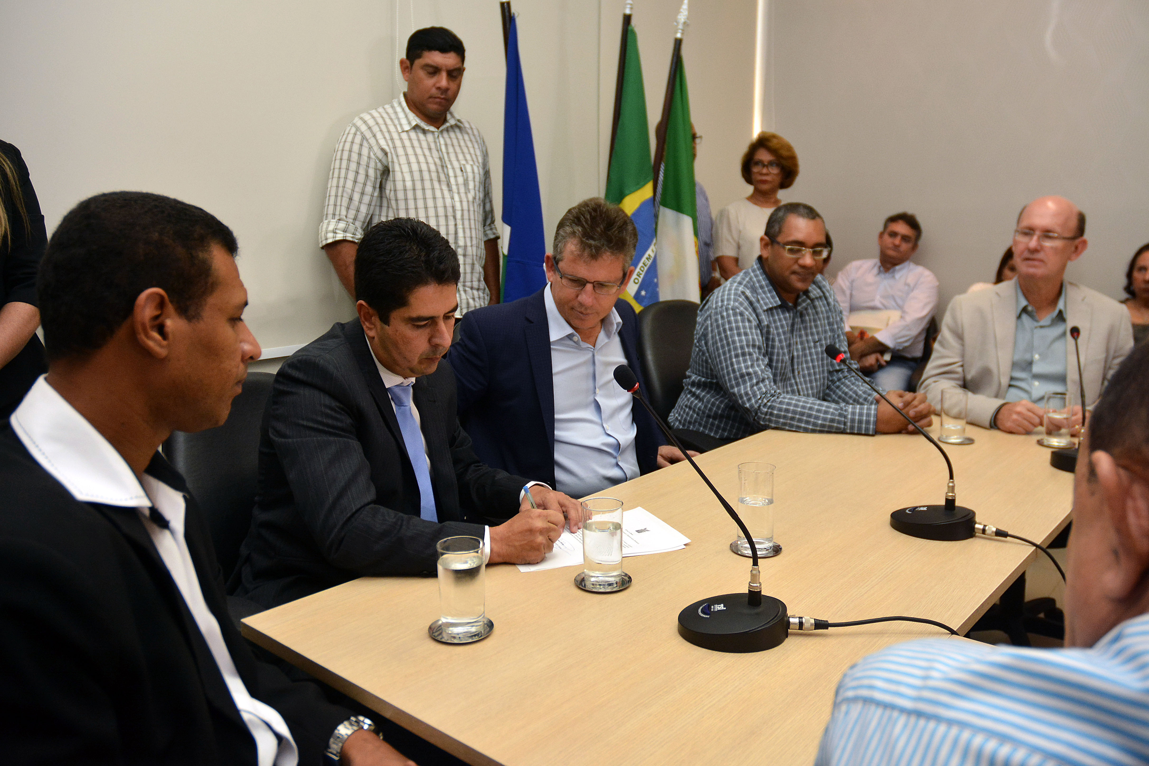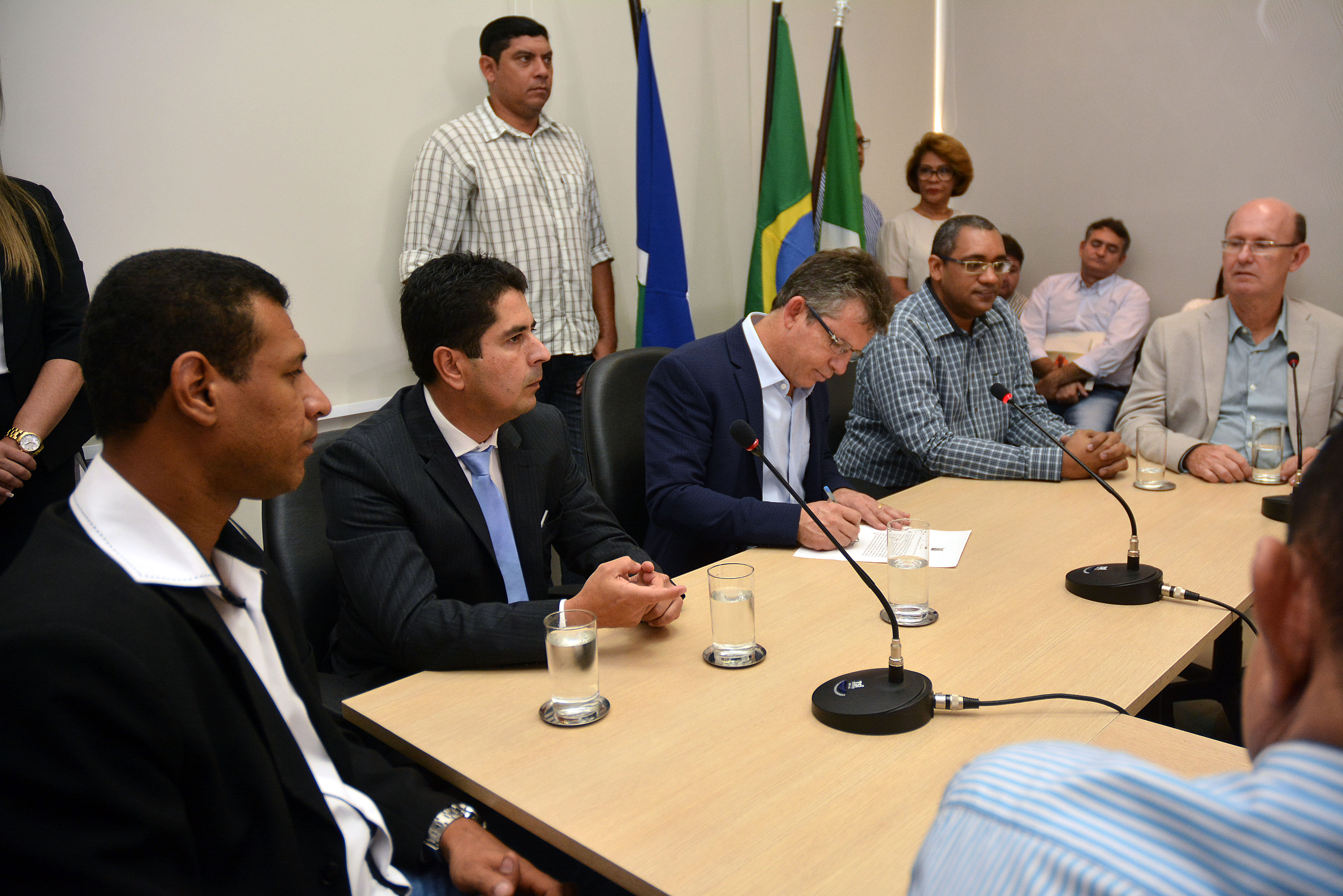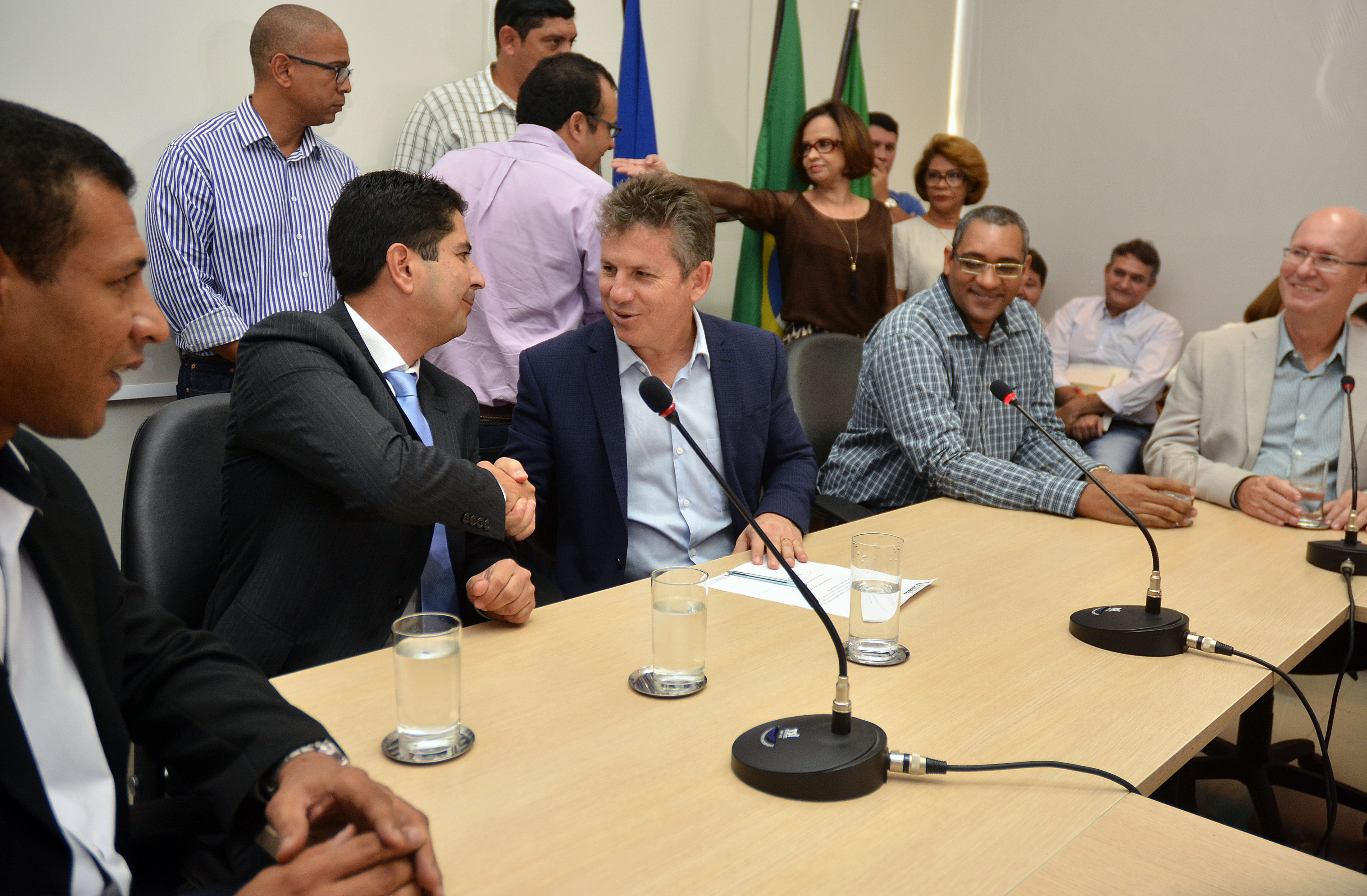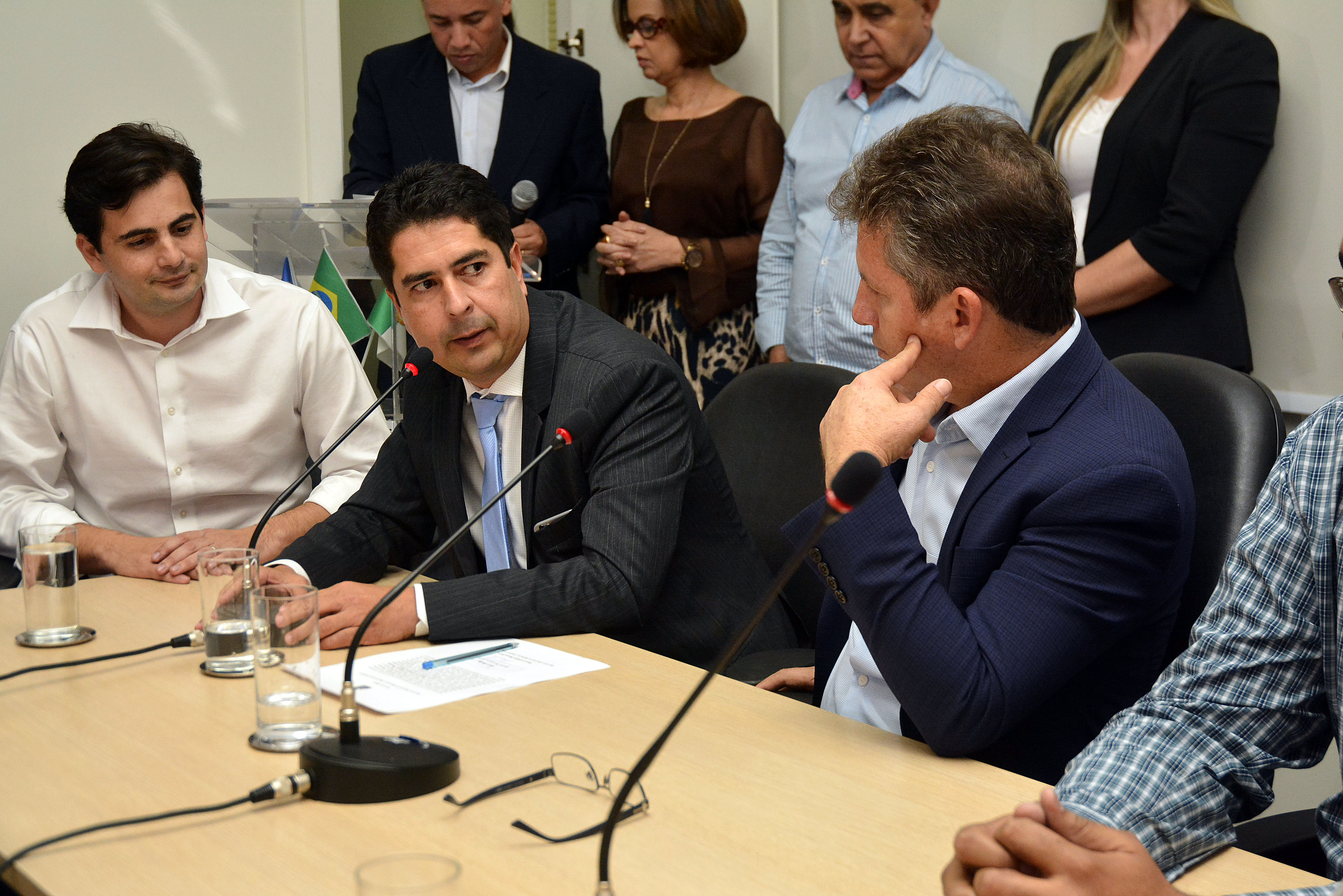 O prefeito Mauro Mendes assinou na tarde desta segunda-feira (13), no Salão Nobre do Palácio Alencastro, o ato de posse do novo secretário de Habitação e Regularização Fundiária, Paulo de Campos Borges Júnior. Ao lado de Paulo Borges Jr. assume no cargo de secretário-adjunto, Erivelto Vieira Nunes, que ocupava a função de diretor de Regularização Fundiária.