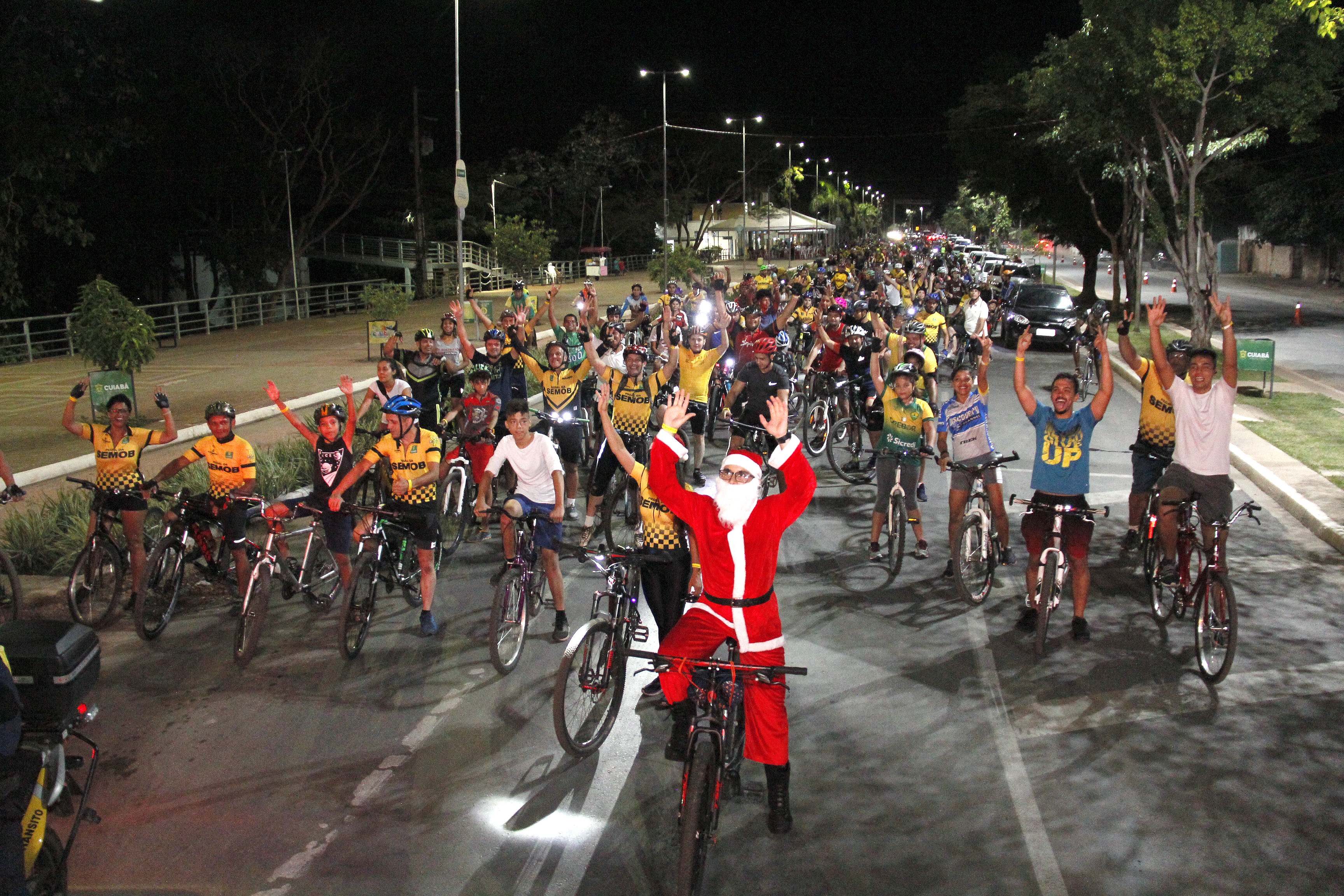 Mais de 300 ciclistas participaram do tradicional Pedal Noturno, realizado pela Secretaria Municipal de Mobilidade Urbana (Semob). A última ação do ano, realizada em clima natalino, contou com arrecadação de alimentos que serão destinados para uma instituição de caridade em Cuiabá.