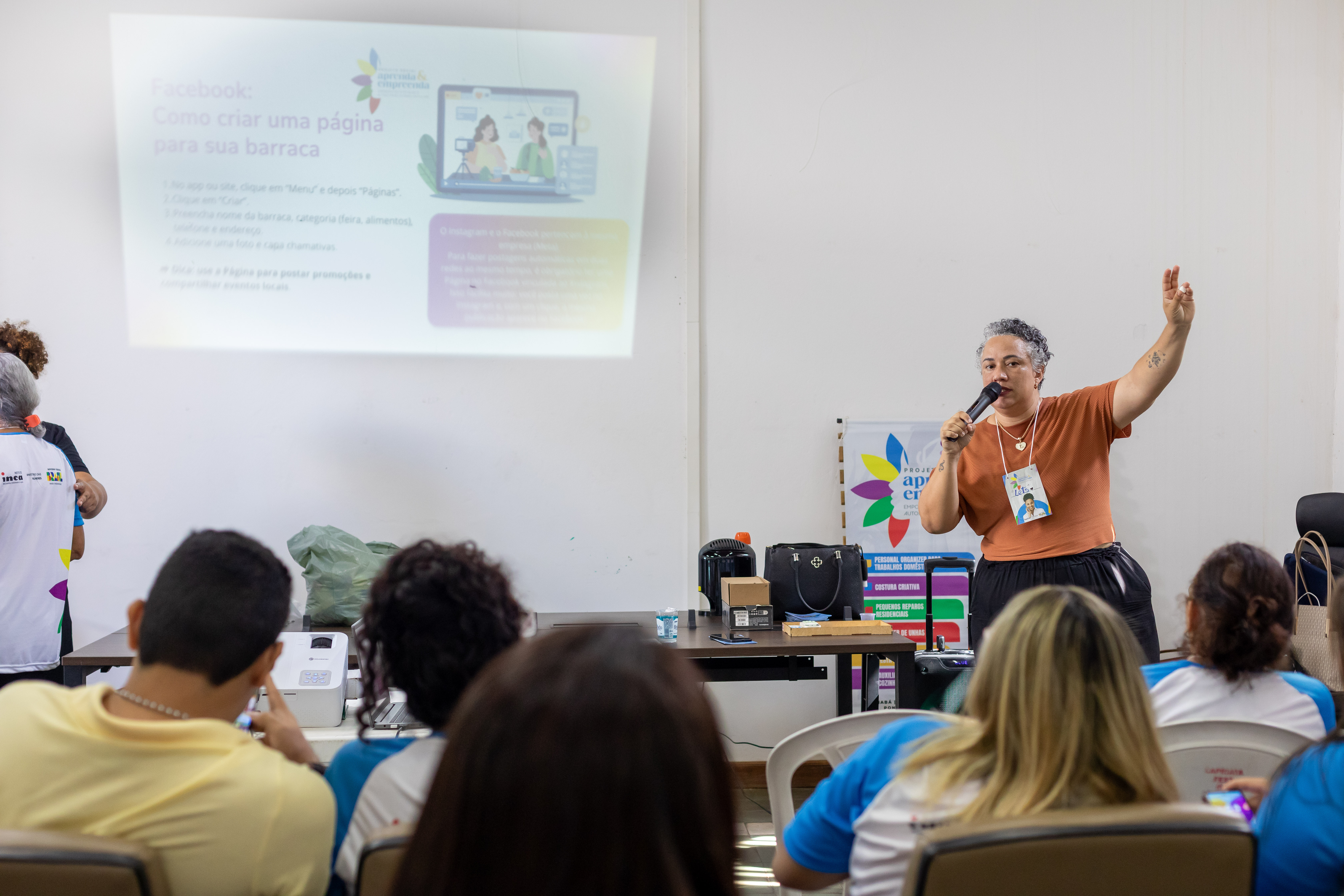 Realizada no auditório do Museu do Rio, a capacitação teve duração de três horas, sendo 1h30 de conteúdo teórico e 1h30 de prática, com foco no uso das mídias digitais como ferramenta de empreendedorismo.