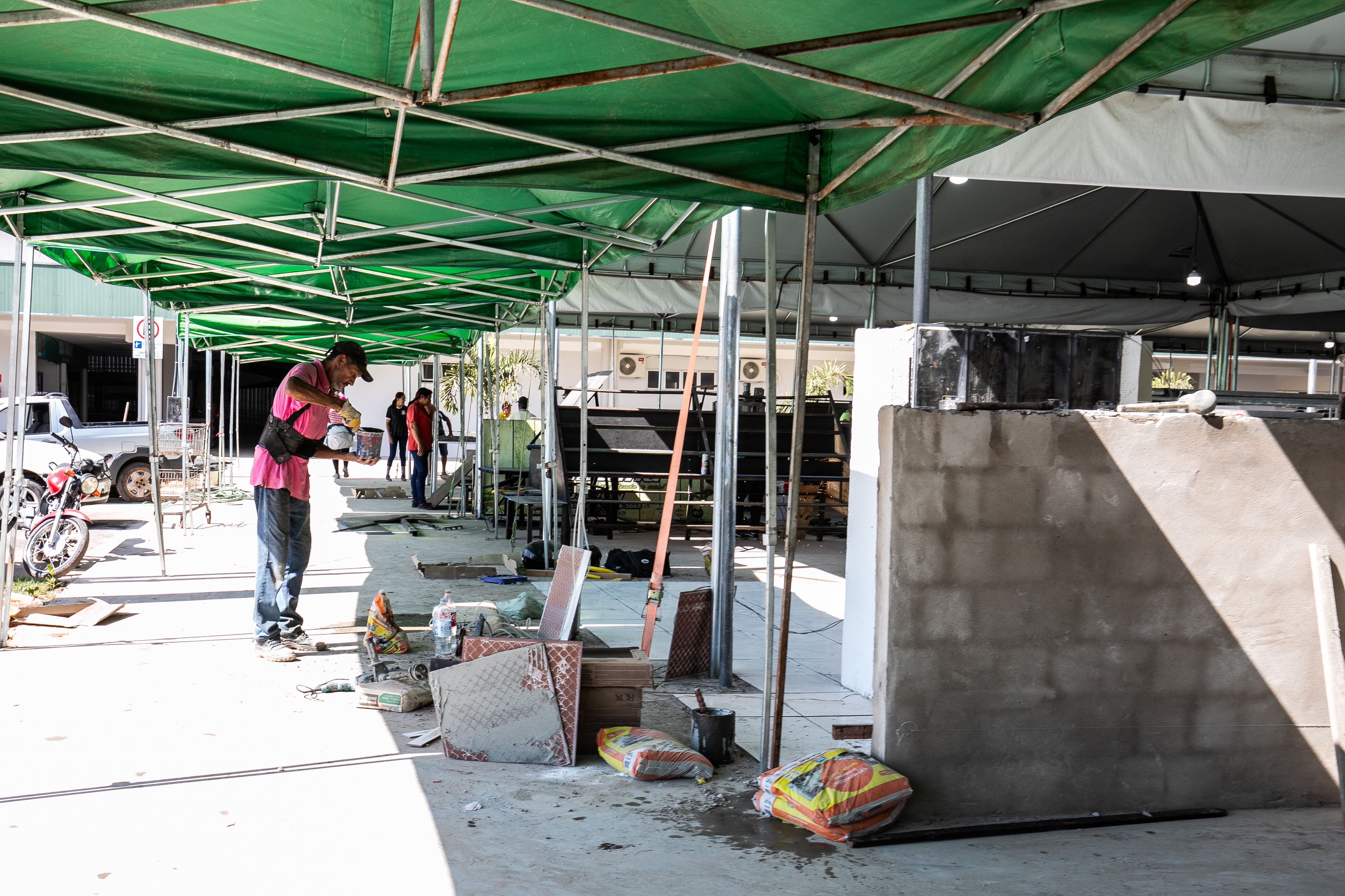 Enquanto a segunda etapa da reforma do Mercado, prevista para o segundo semestre do próximo ano, não for concluída, os comerciantes de frutas, verduras, especiarias, farinhas, sementes, raízes, carnes, frangos, suínos, peixes e laticínios ficarão temporariamente acomodados em espaços provisórios, onde tendas climatizadas foram montadas para garantir a qualidade dos produtos oferecidos.