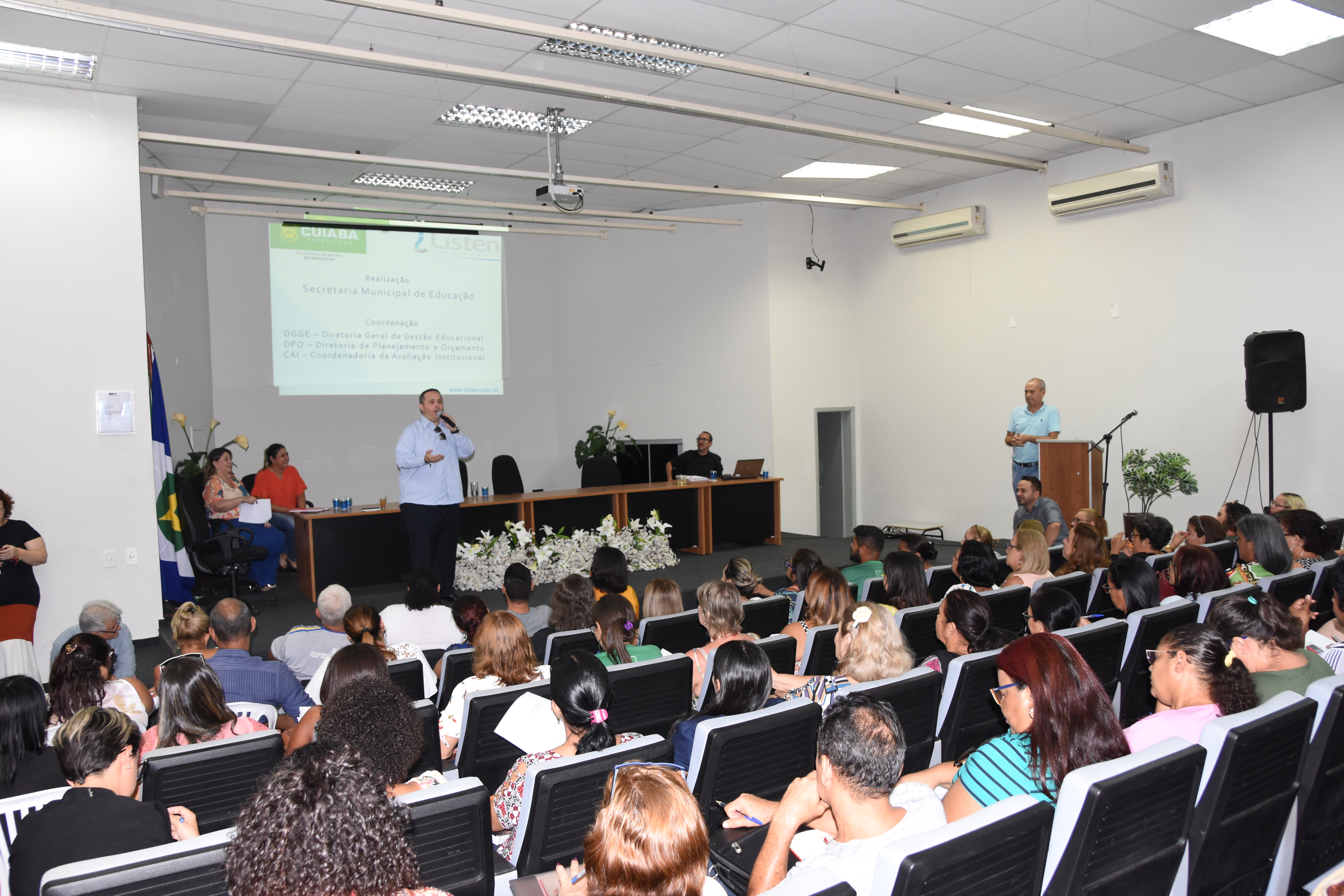 Gestores das unidades educacionais da rede pública municipal de Educação participaram na tarde desta segunda-feira (9), no auditório Maestro China, da Secretaria Municipal de Educação, da primeira reunião gerencial de 2020. Durante a reunião, foram apresentados os resultados da pesquisa Aluno Cidadão – Censo da Educação realizada com pais e responsáveis pelos alunos matriculados nas unidades educacionais de Cuiabá e que aponta que 94% do total de pais ou responsáveis, aprovam as unidades escolares. A primeira parte da reunião foi conduzida pela secretária adjunta de Educação, Edilene Machado com o alinhamento das ações que serão desenvolvidas pela Secretaria, este ano.