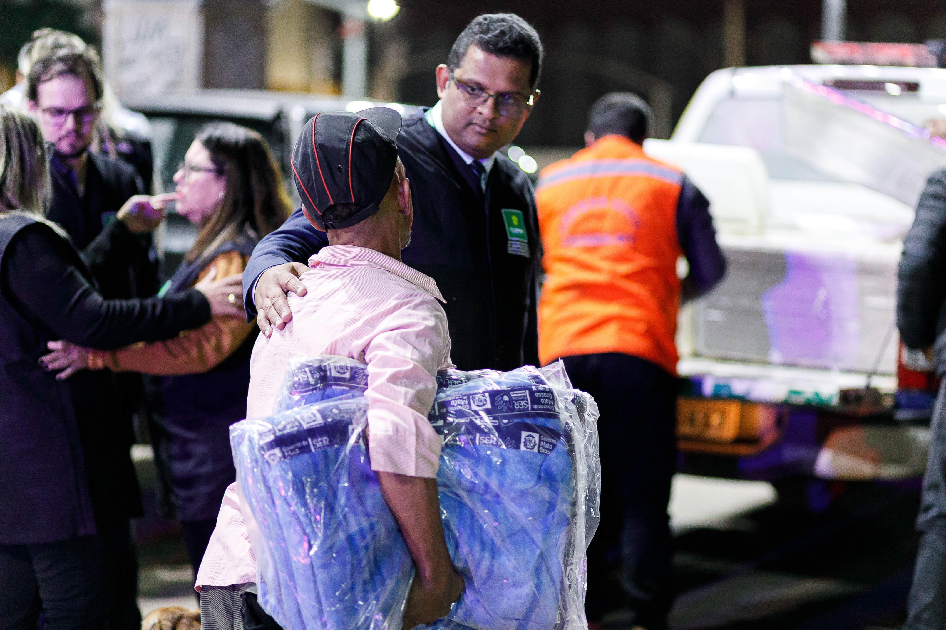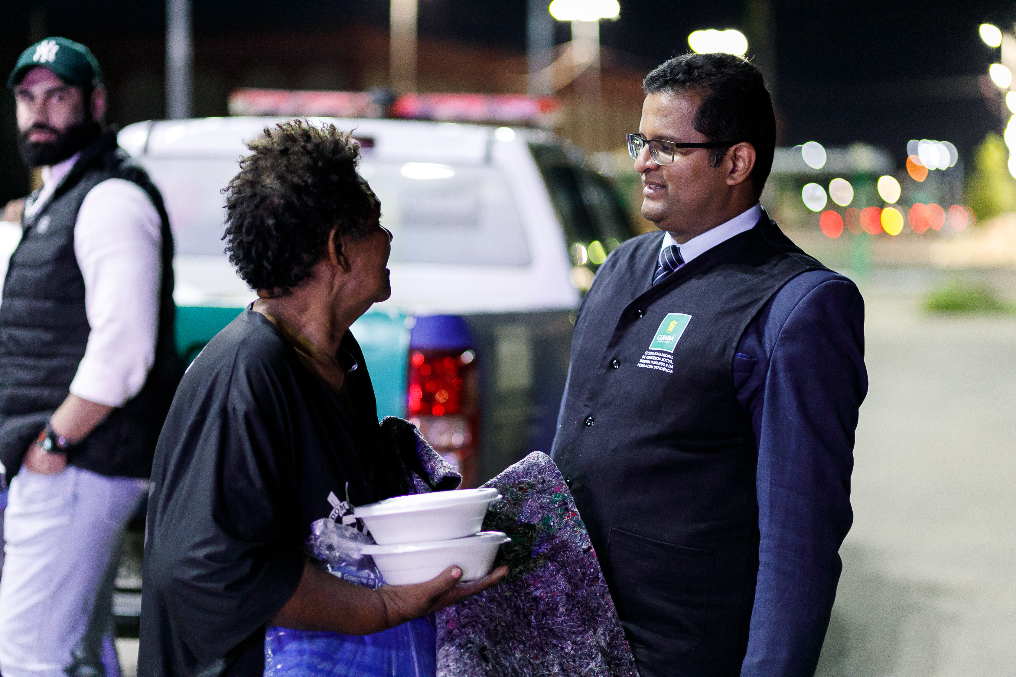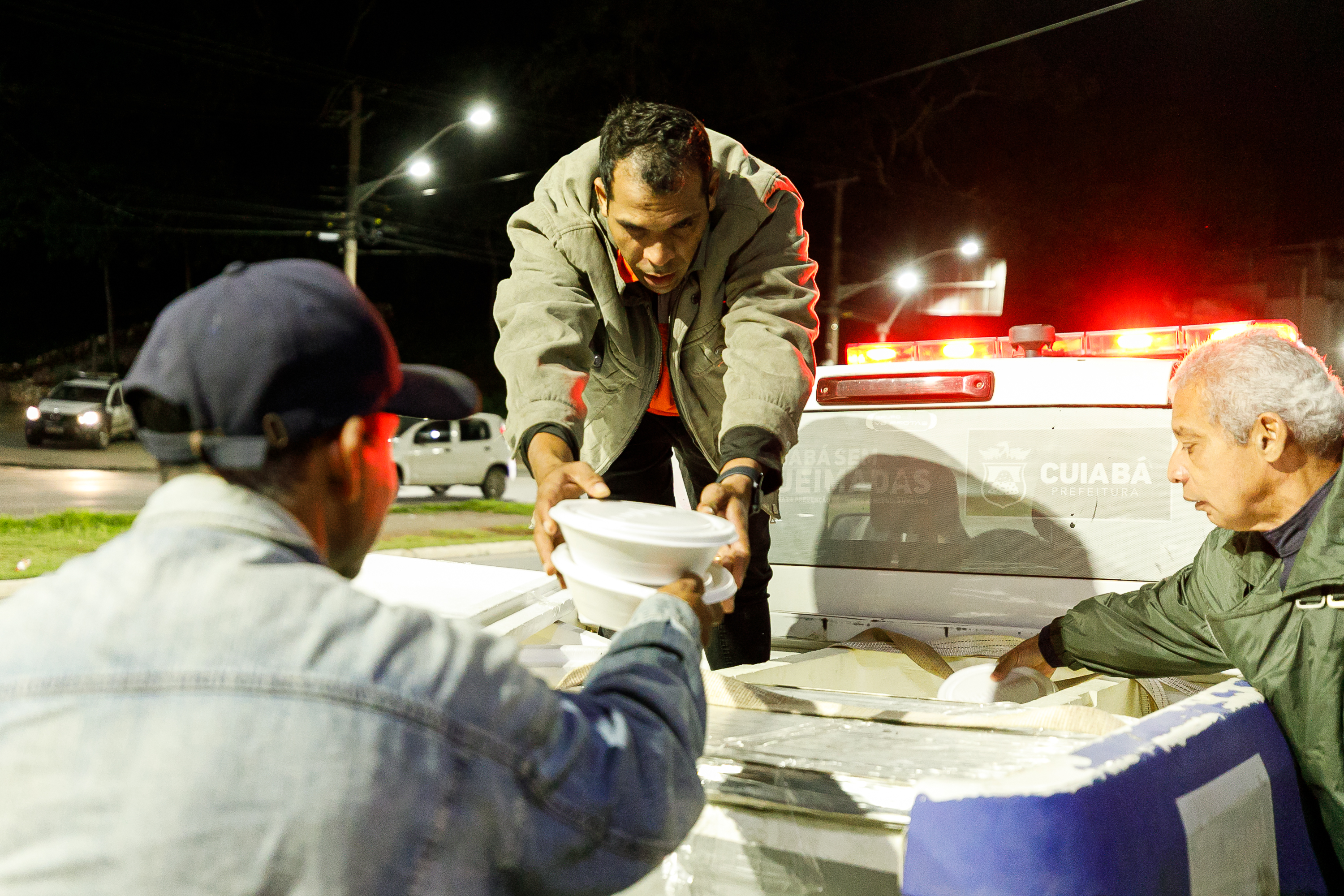 Diante da queda nas temperaturas registradas nos últimos dias, a Prefeitura de Cuiabá intensificou as ações de acolhimento à população em situação de rua. Na noite desta quinta-feira (29), equipes da Secretaria Municipal de Assistência Social, Direitos Humanos e da Inclusão, em parceria com a Defesa Civil Municipal e o Governo do Estado, realizaram a entrega de 200 marmitas e 150 cobertores em sete pontos críticos da capital.