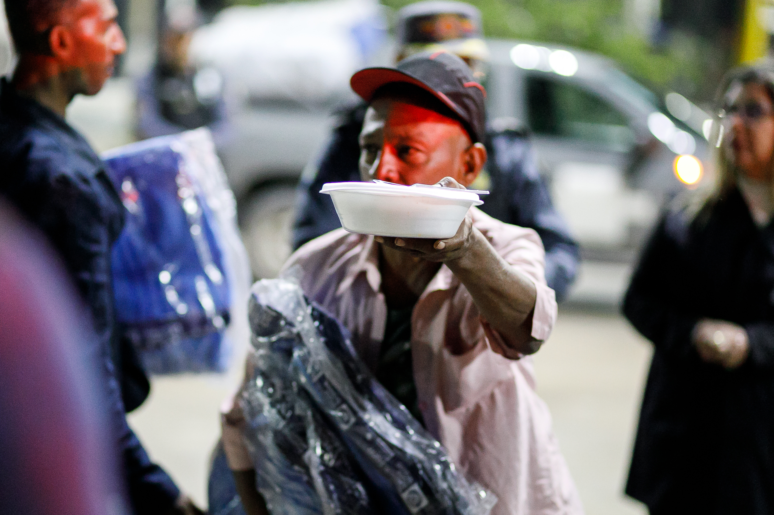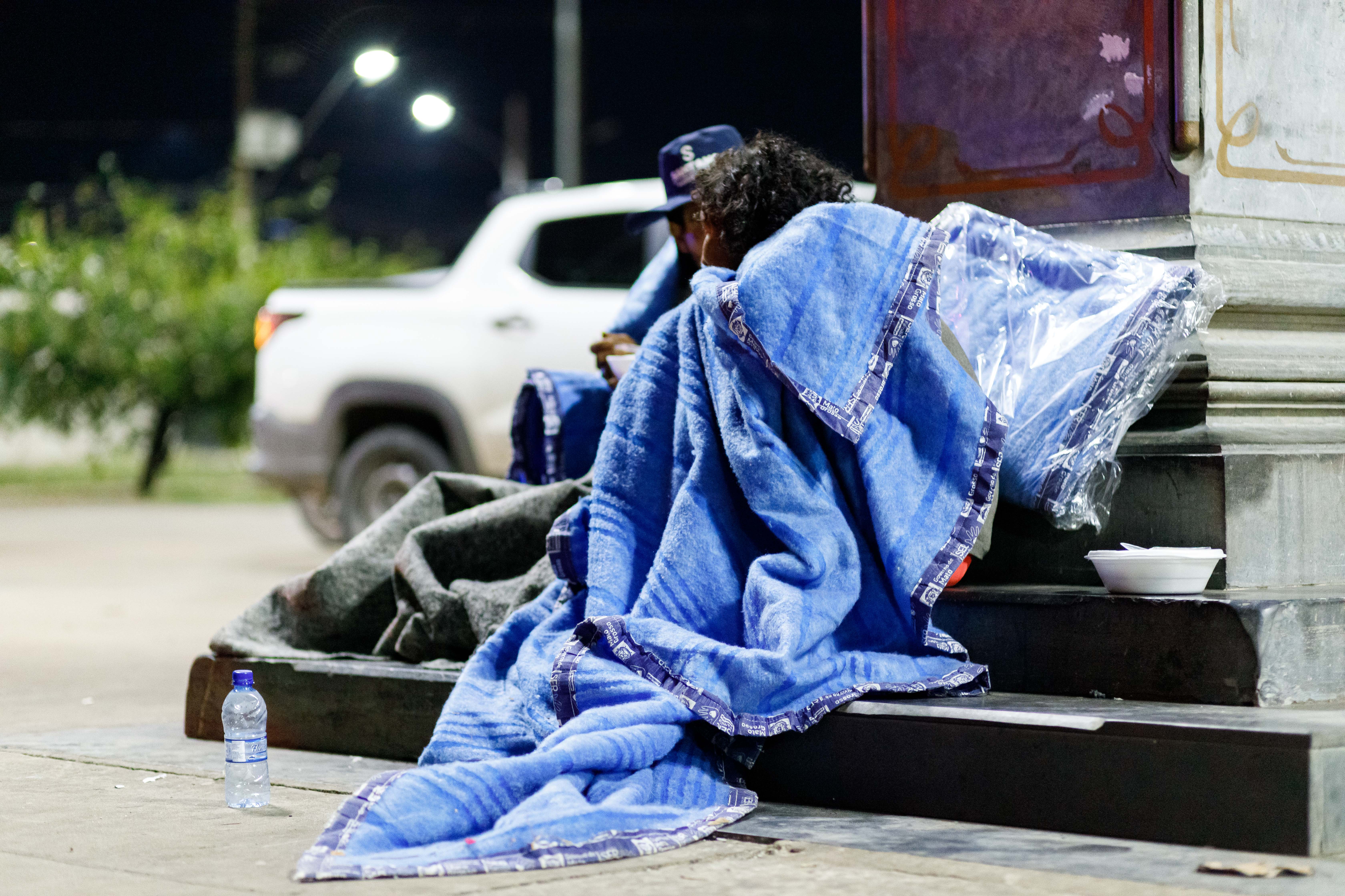 Pessoas em situação de rua de sete pontos de Cuiabá são atendidos com cobertores e marmitas