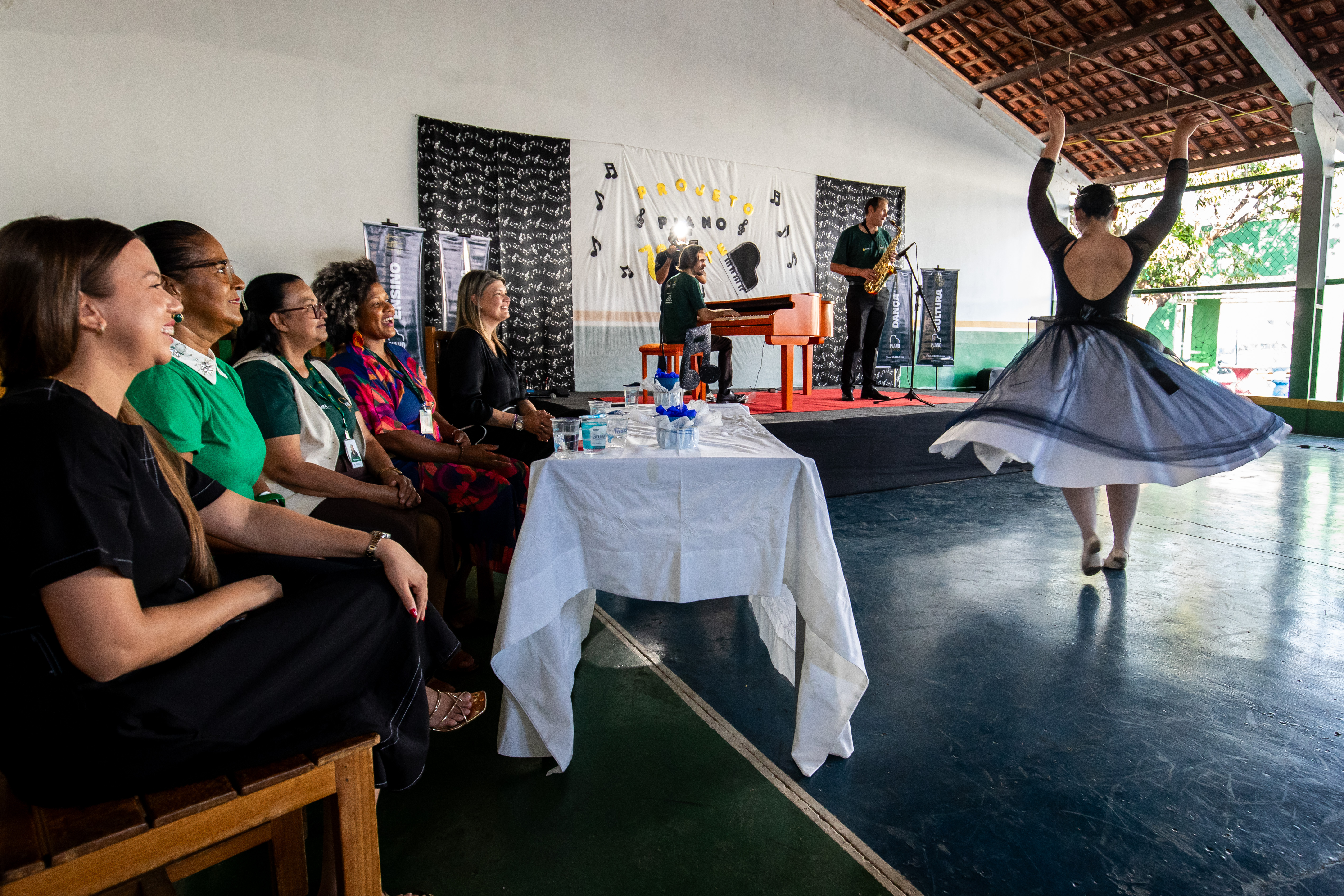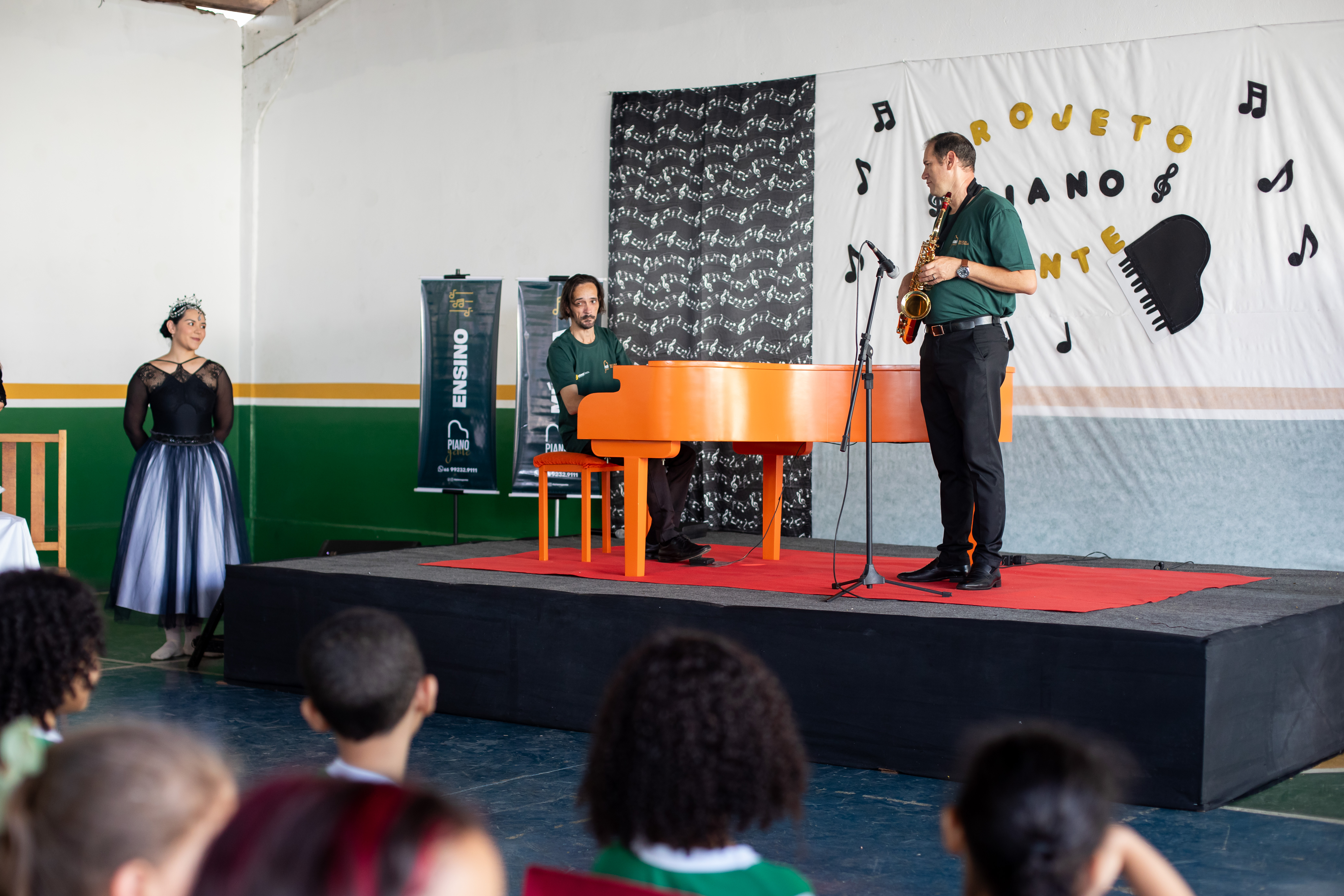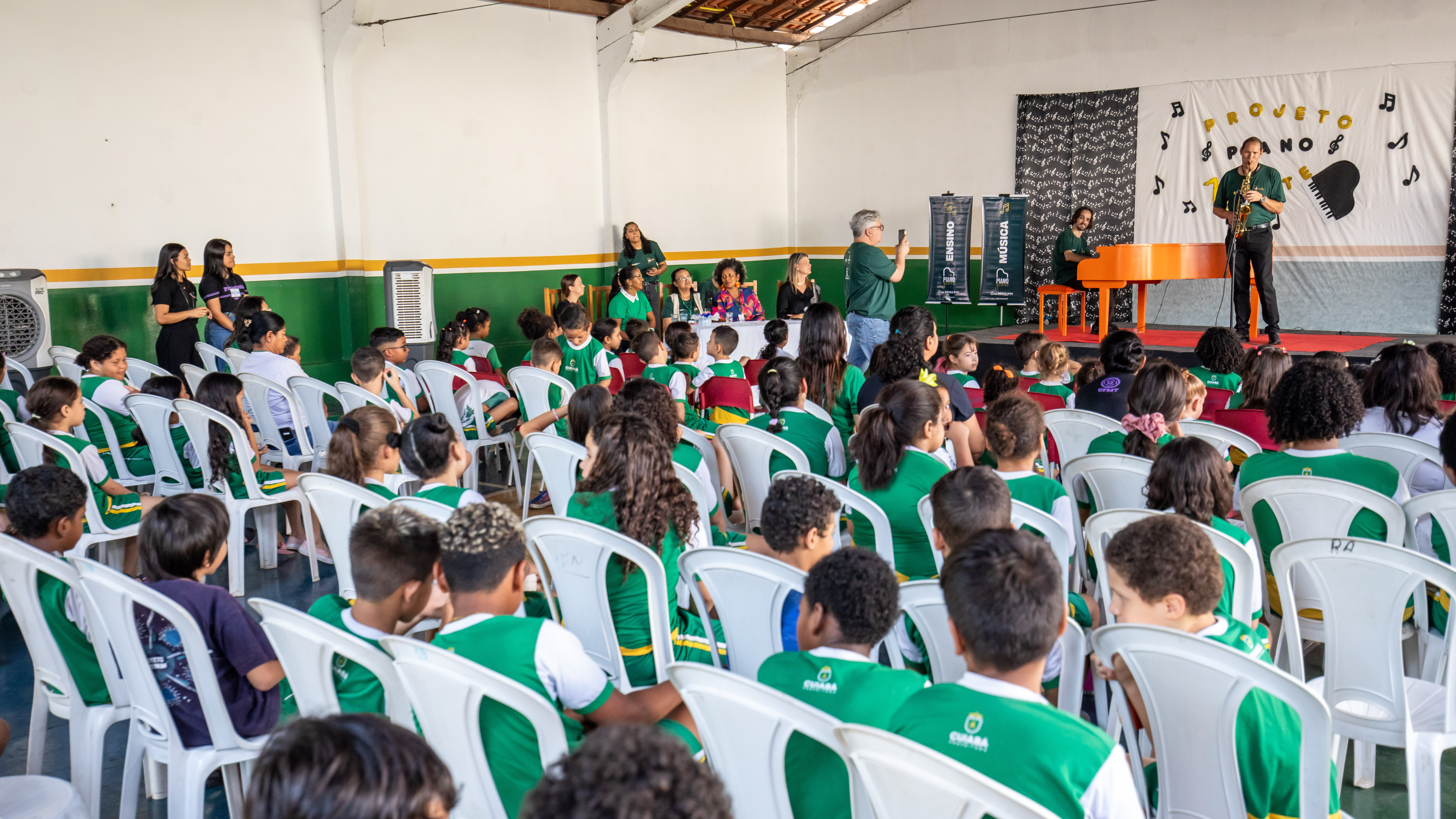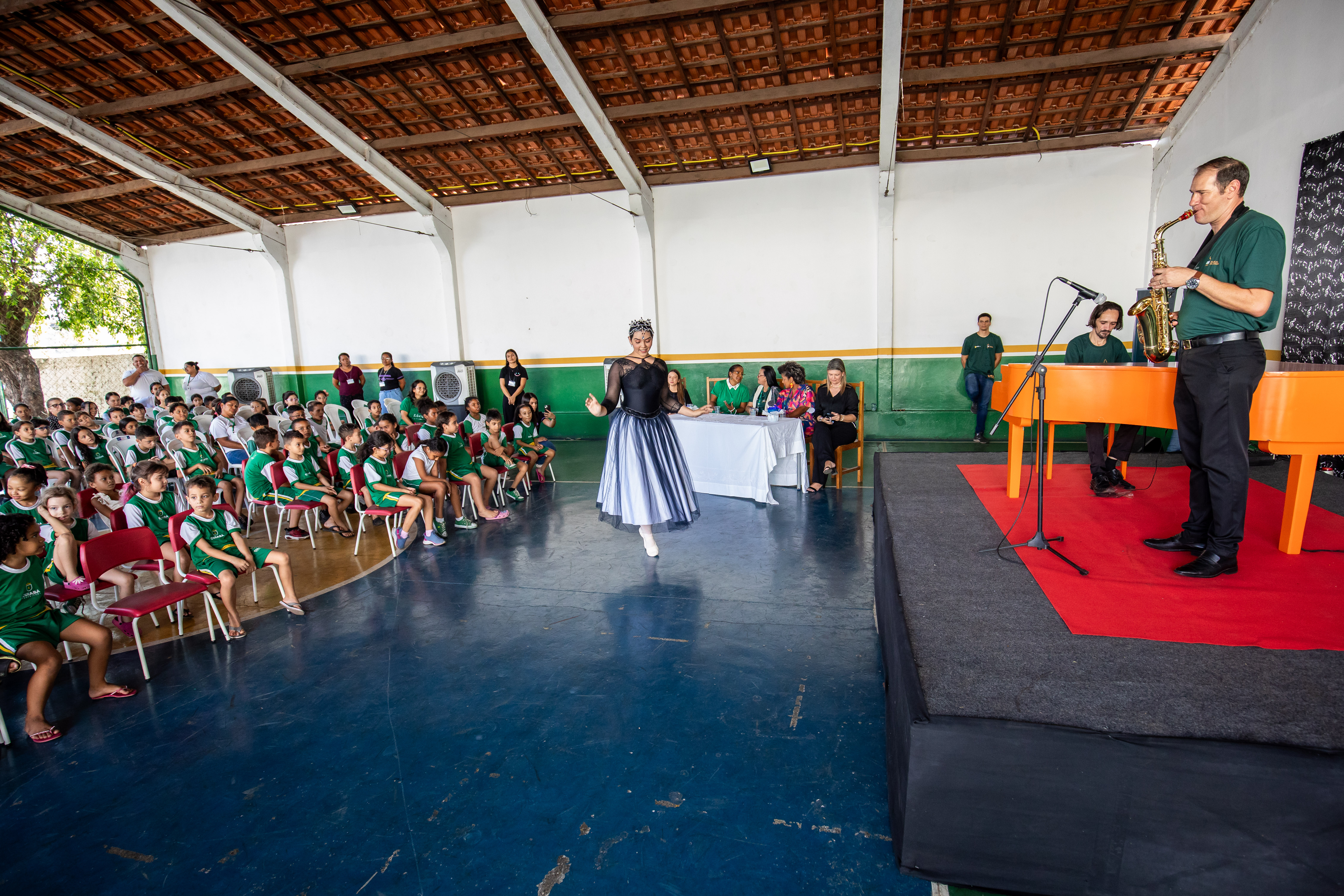 Um espetáculo de apresentação de piano, balé e saxofone foi iniciado na tarde desta segunda-feira (16) nas escolas de Cuiabá.