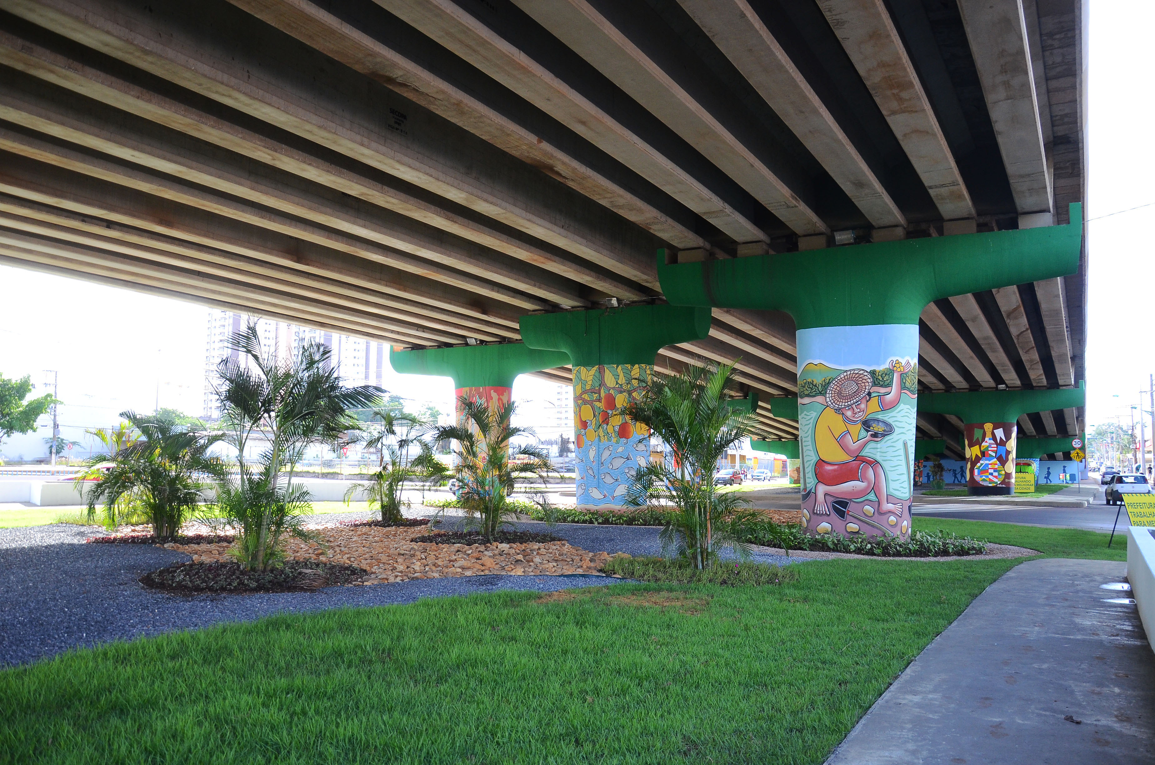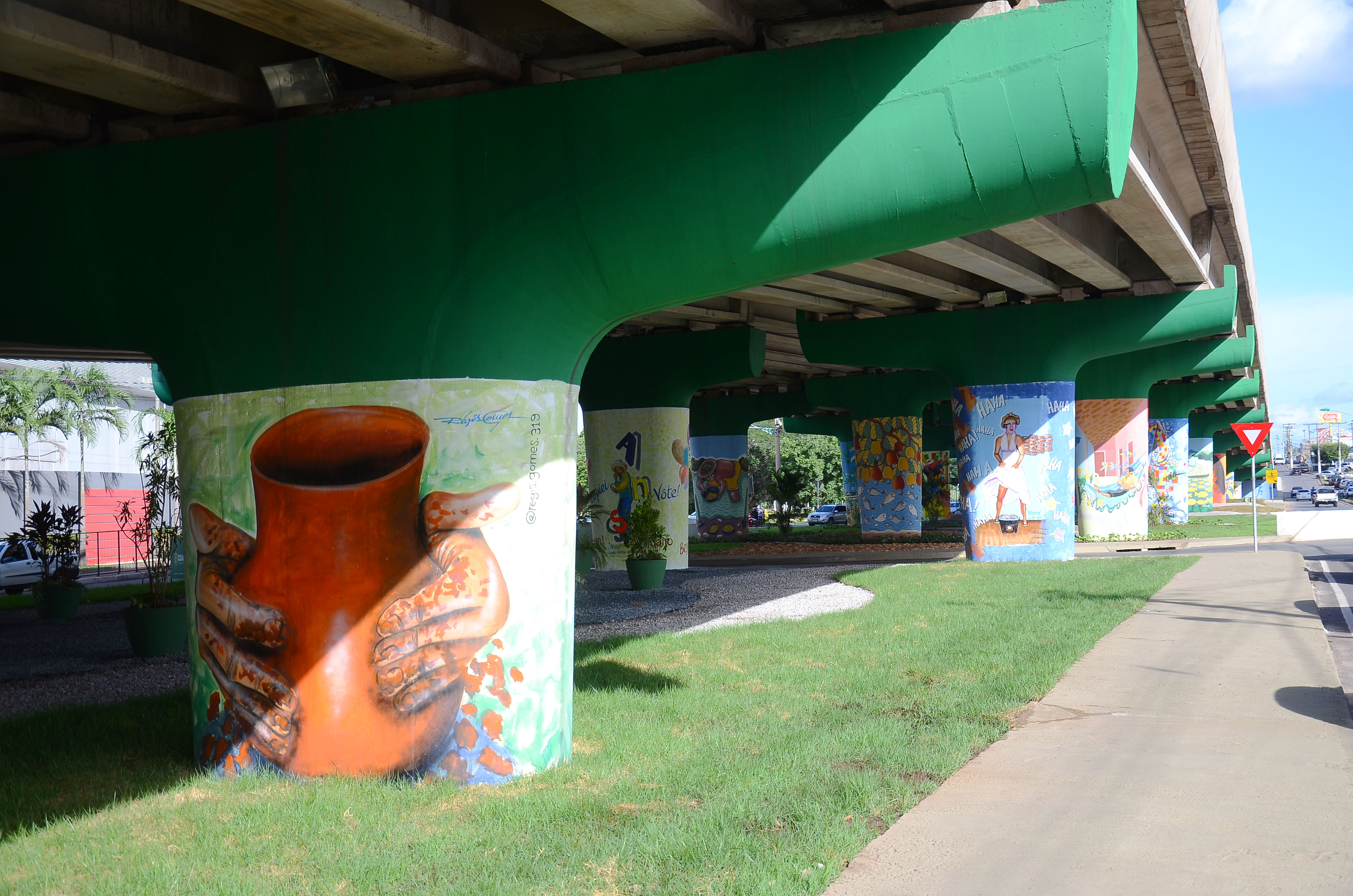 Ao todo, 11 artistas participaram do projeto de revitaliazação do local, estampando, através do estilo das artes visuais regionais, suas pinceladas pelas 23 colunas do viaduto. Um dessas estampas foi pincelada pelas mãos do artista plástico e escultor, Fred Fogaça. Presente na solenidade, o artista agradeceu a gestão atual, que vem promovendo essa valorização das artes, não se esquecendo do tempo de outrora da Capital.
