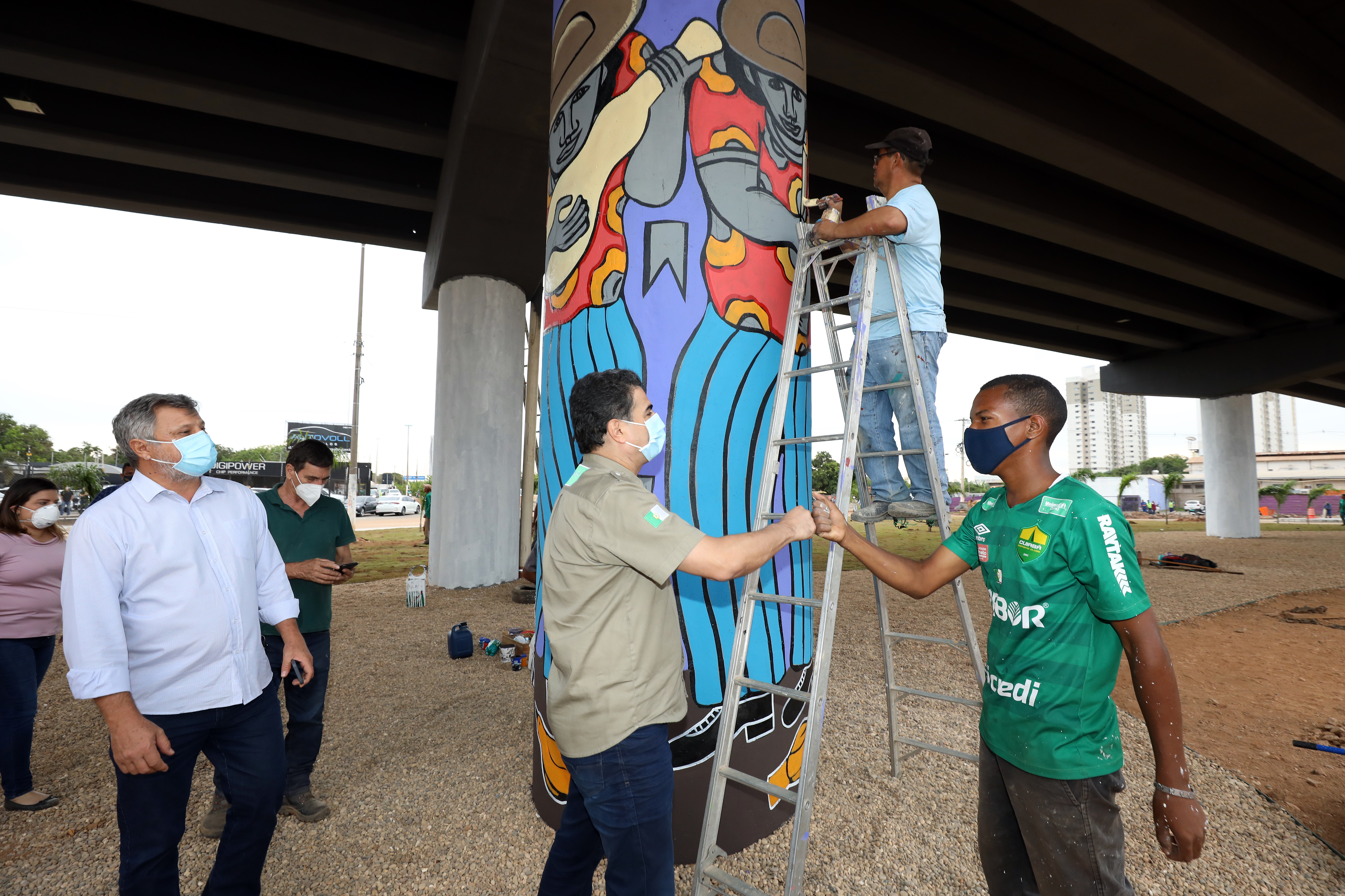 Durante a inspeção, acompanhado do vice-prefeito e secretário de Obras Públicas, José Roberto Stopa, Pinheiro pode observar que já está em andamento o trabalho de paisagismo que, além do plantio de grama, palmeira e outras espécies de plantas ornamentais, também contará com a pintura dos pilares de sustentação. Essa última ação é realizada por artistas plásticos regionais, por meio do programa Cidade Viva.