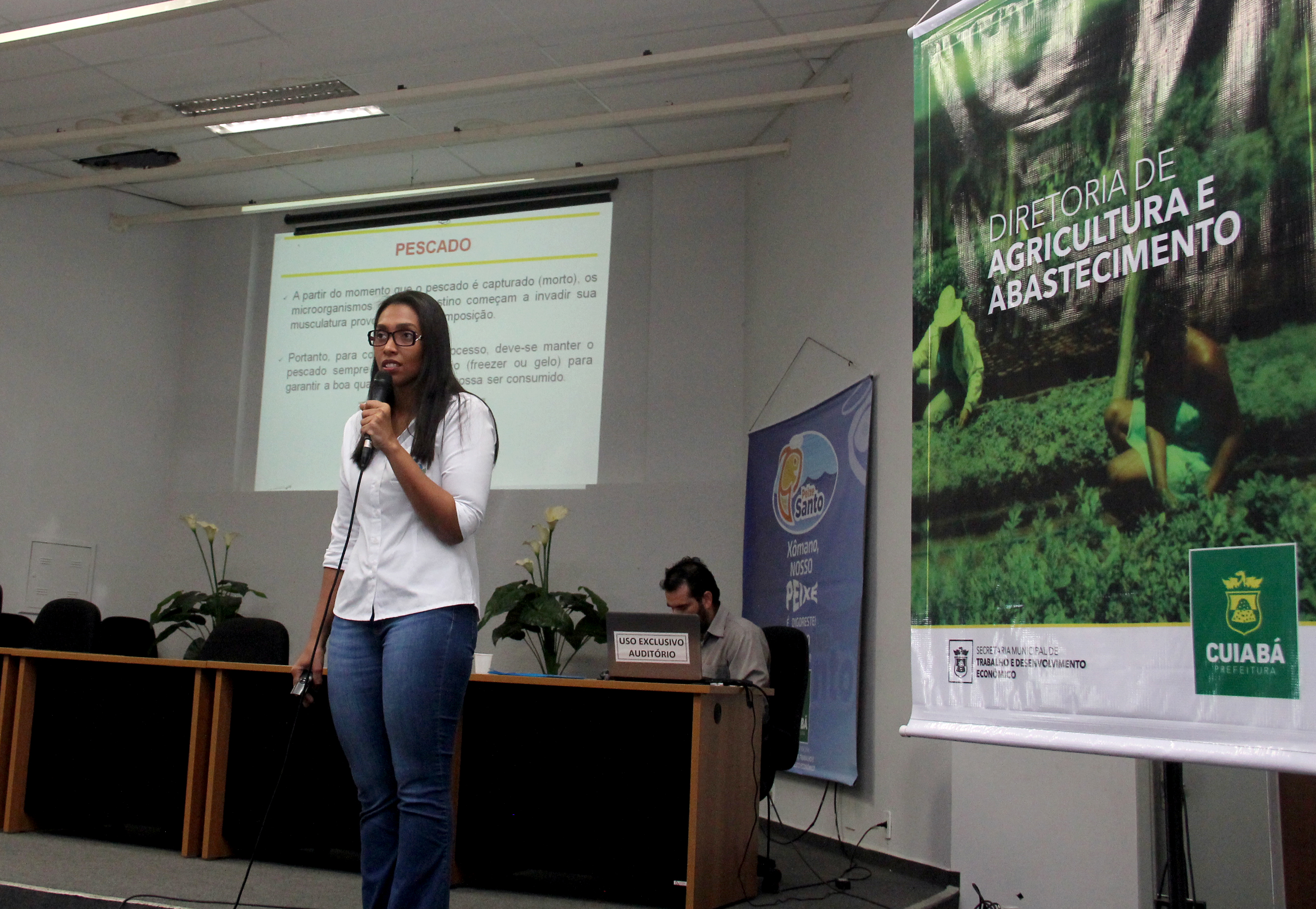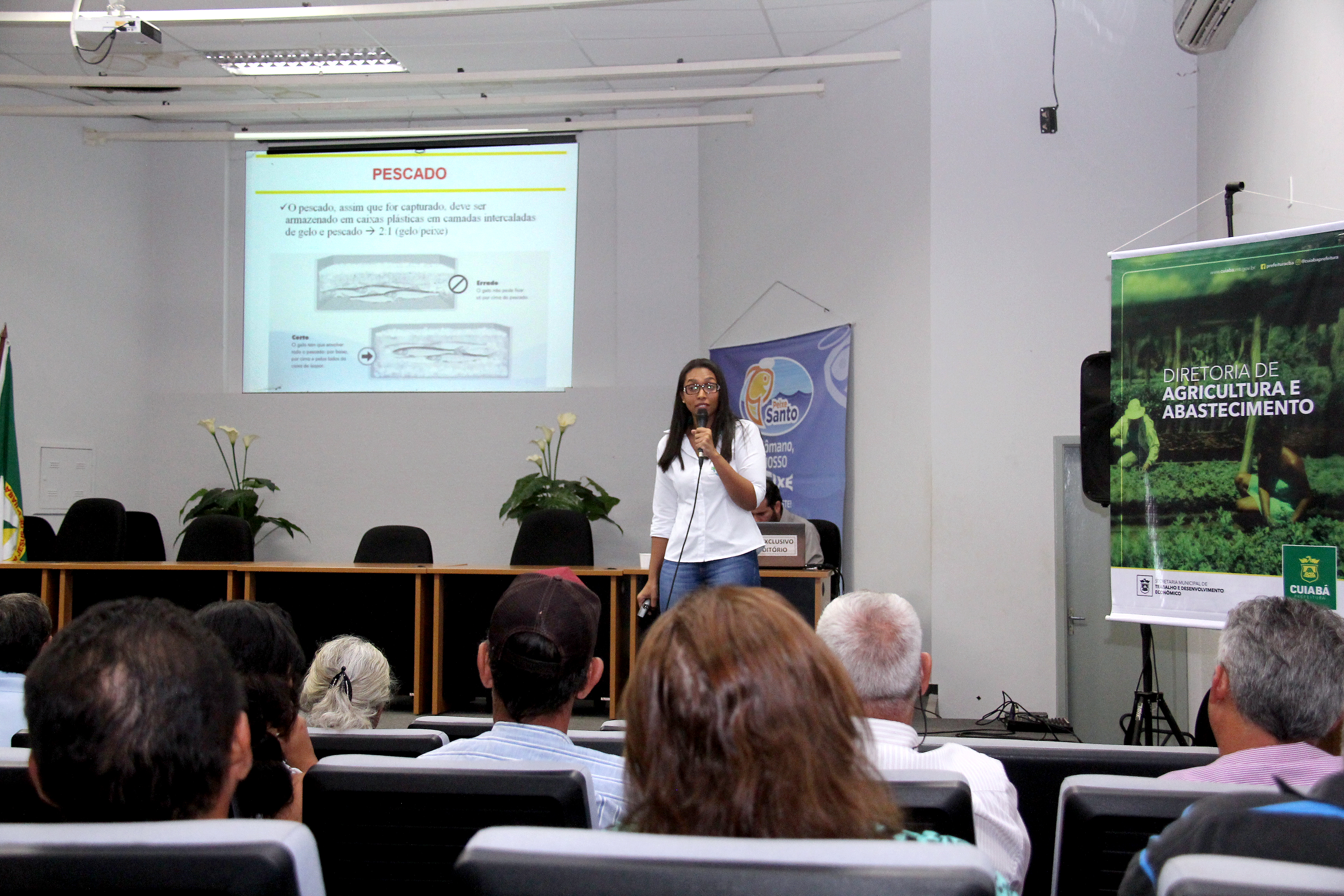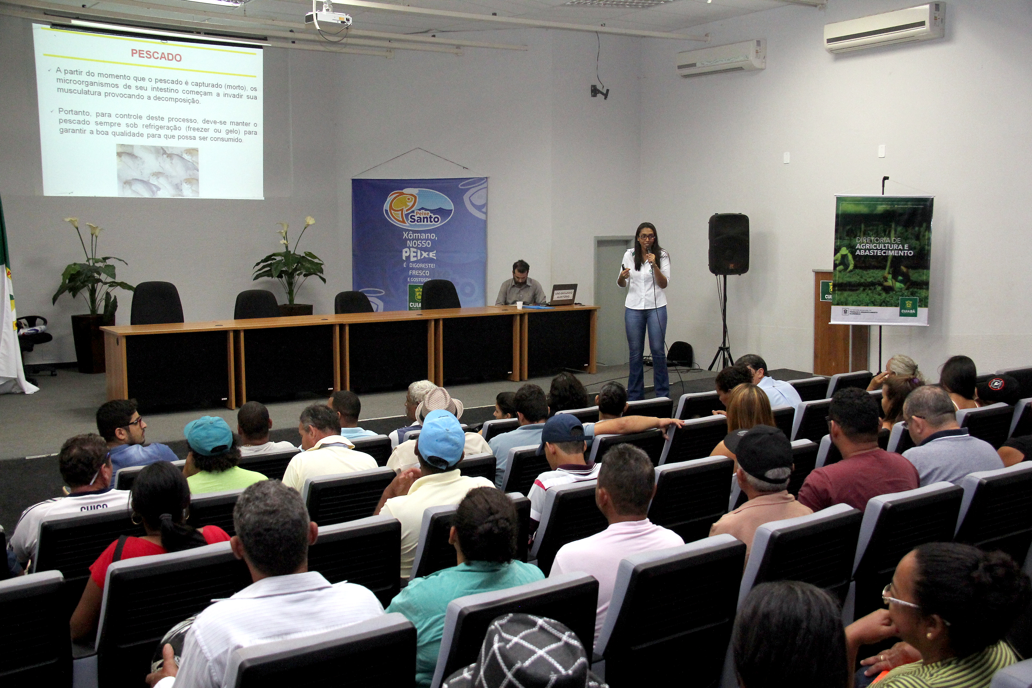 A Secretaria de Agricultura, Trabalho e Desenvolvimento Econômico realizou na manhã desta sexta-feira (02), no auditório da Secretaria Municipal de Educação (SME), o Curso de Boas Práticas de Manipulação do Pescado, destinado a psicultores e vendedores que participarão da 27ª edição do Programa Peixe Santo, que este ano vem com o tema, “Xômano! Nosso peixe é digoreste, fresco e gostoso!”.