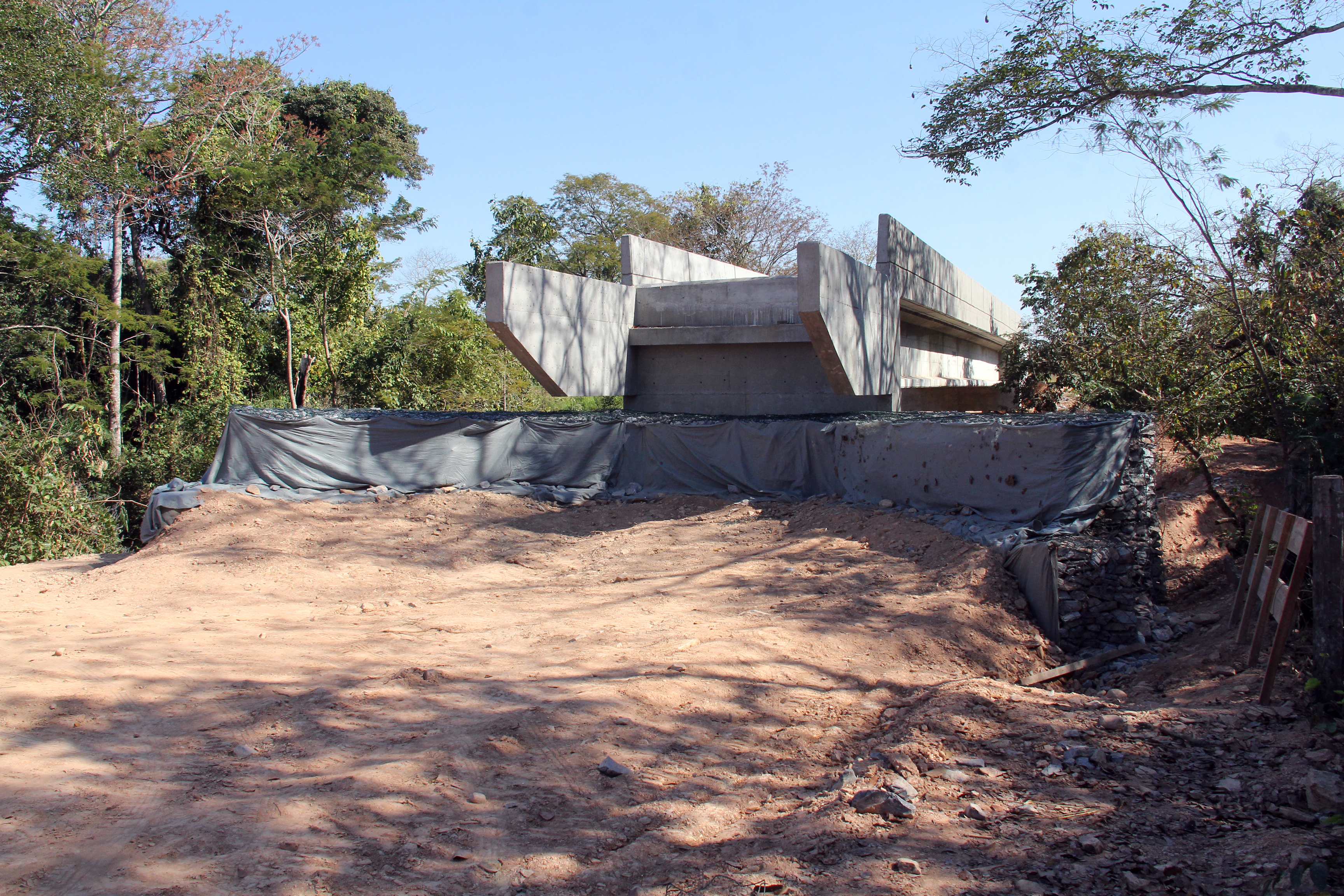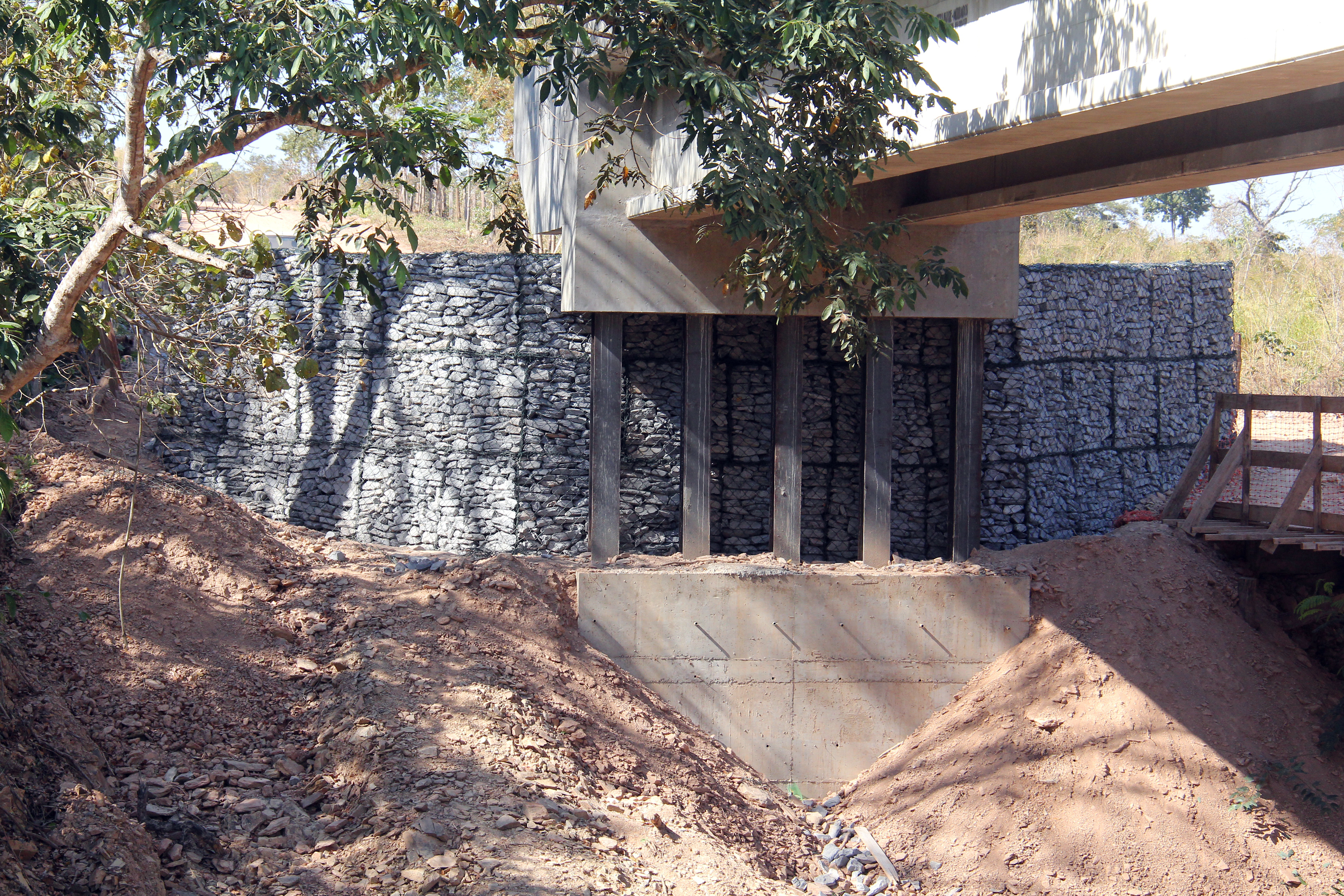 Programada para ser entregue no segundo semestre deste ano, a nova ponte de concreto da comunidade do Monjolo, situada no perímetro do Distrito do Aguaçu, entrou na etapa final de construção. Depois de fechada a fase de superestrutura, o trabalho chegou agora ao processo de edificação dos muros de gabião nas cabeceiras do ponto de travessia. O levantamento dos gabiões é o penúltimo estágio antes da conclusão da obra, restando apenas o aterramento.
