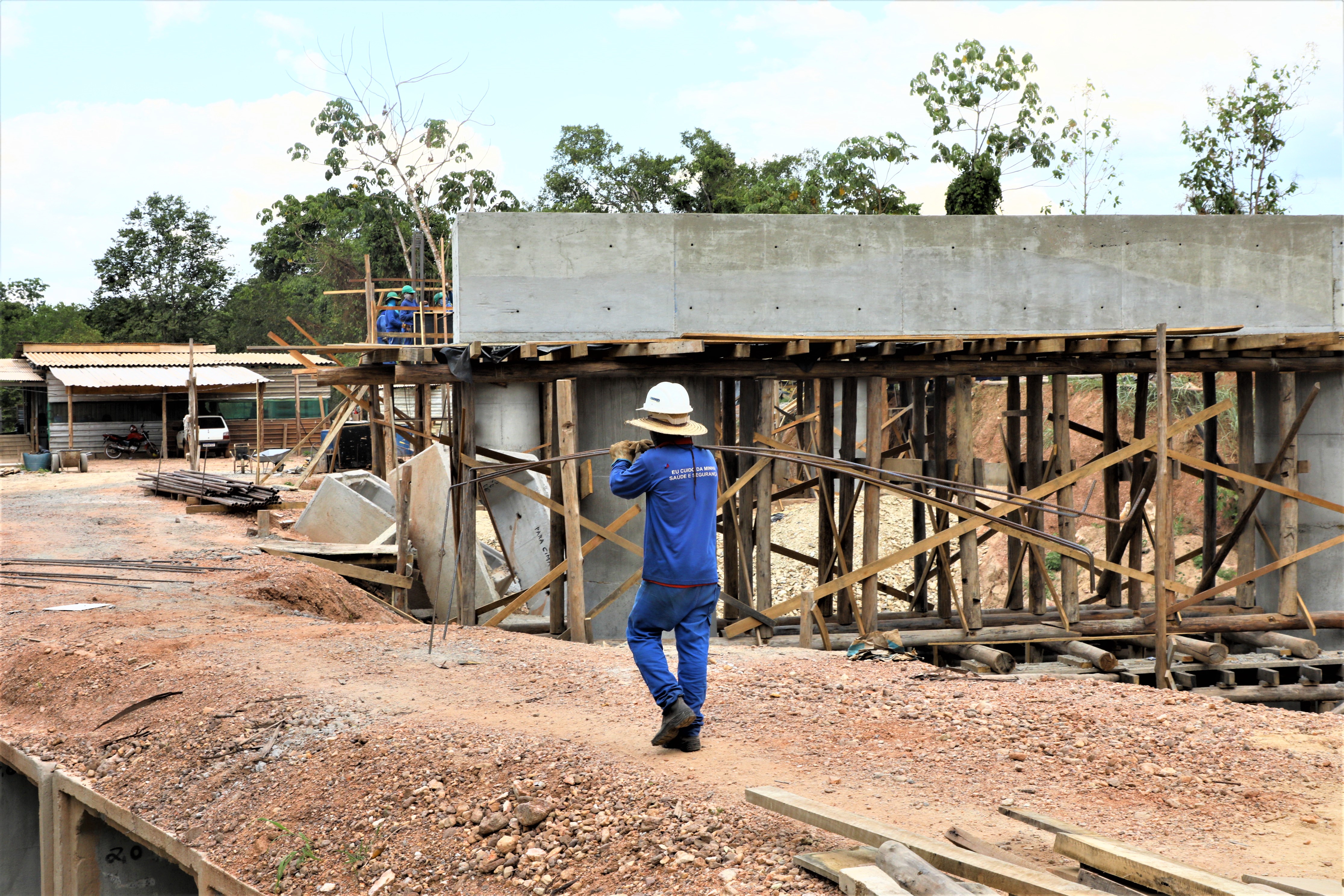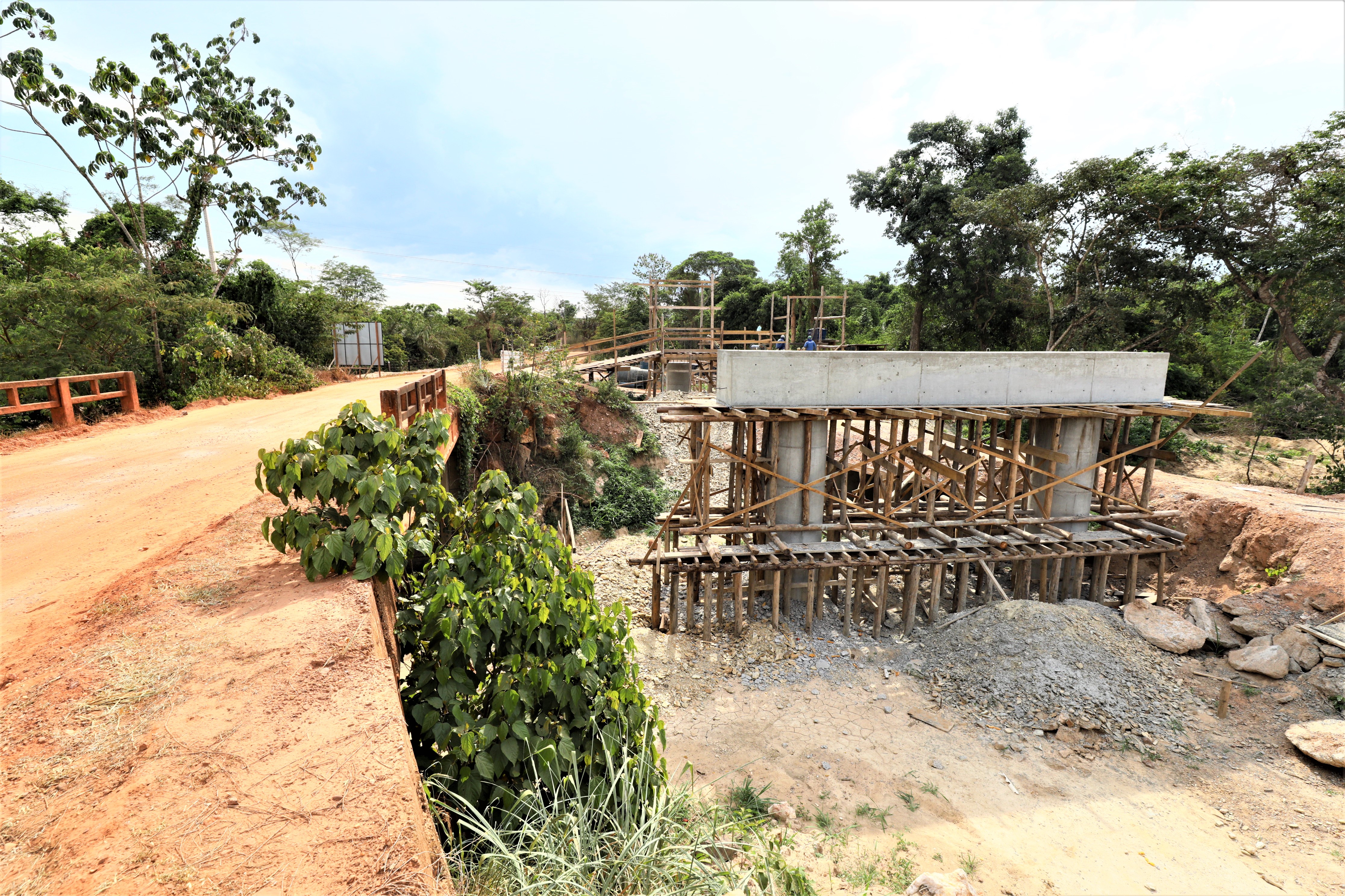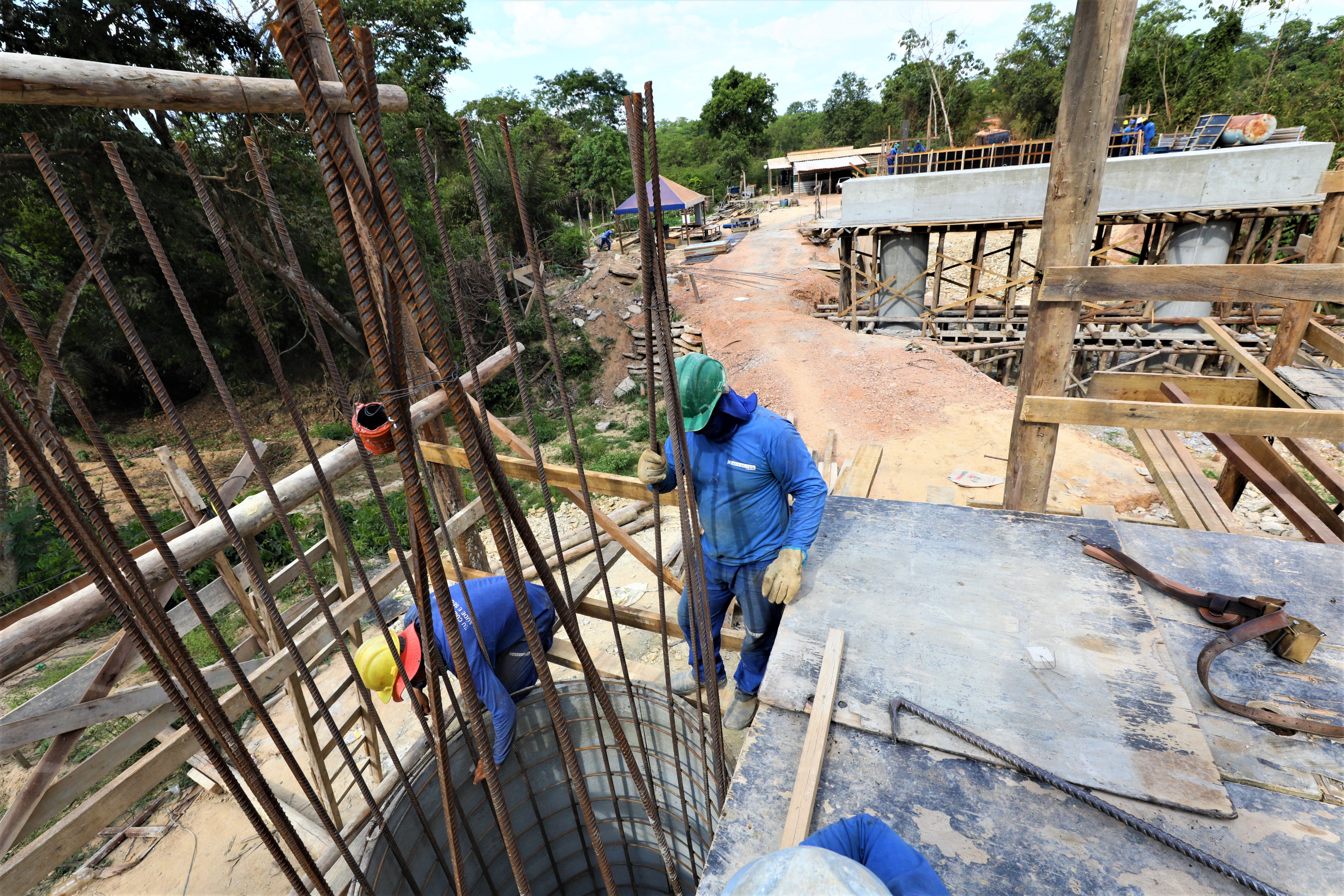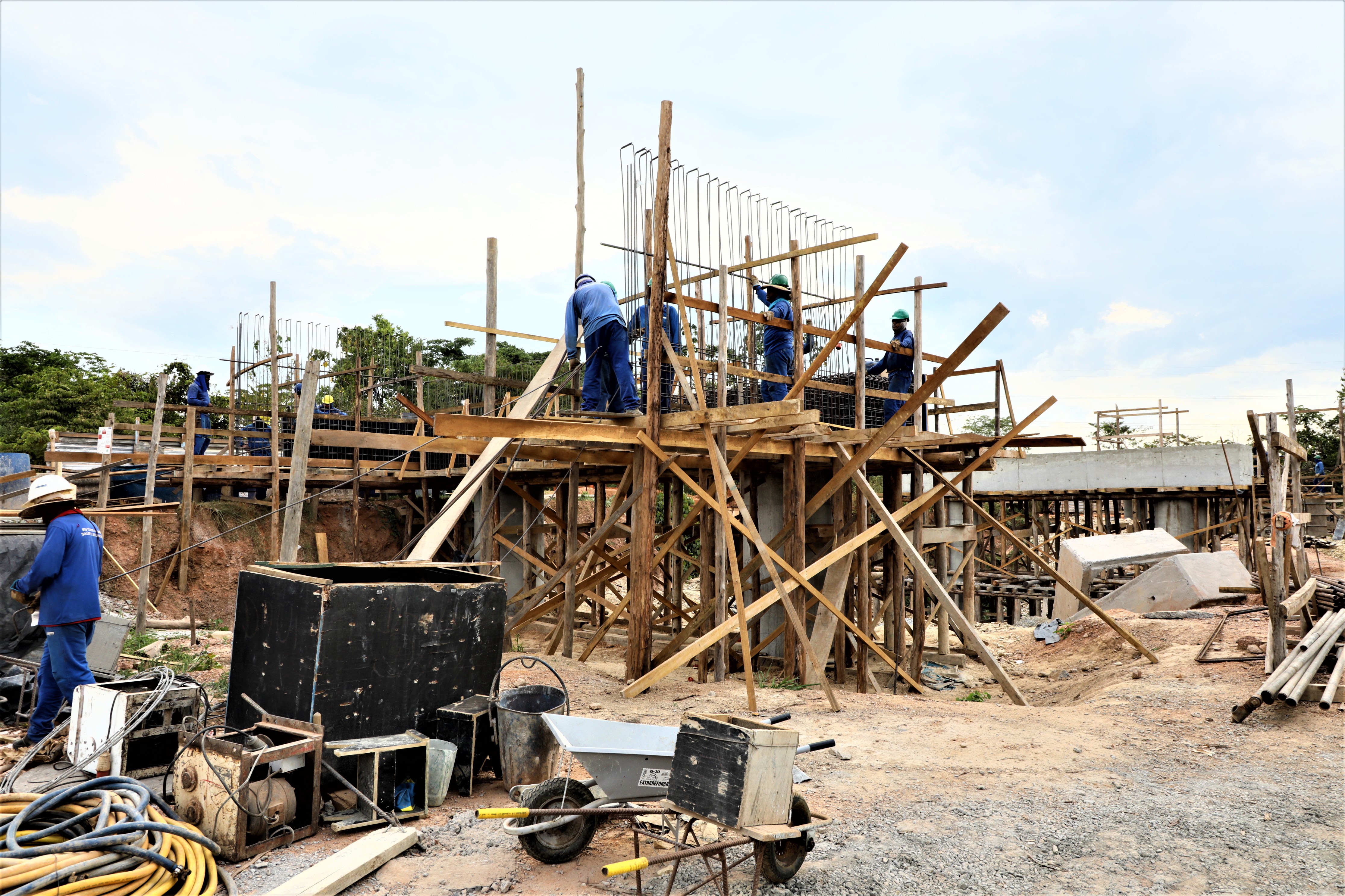 A nova ponte de concreto que está sendo construída pela gestão Emanuel Pinheiro sobre o Rio Aricazinho, localizado na Estrada do Rio dos Couros, zona rural da capital, alcançou a etapa de implantação dos pilares em suas margens.
