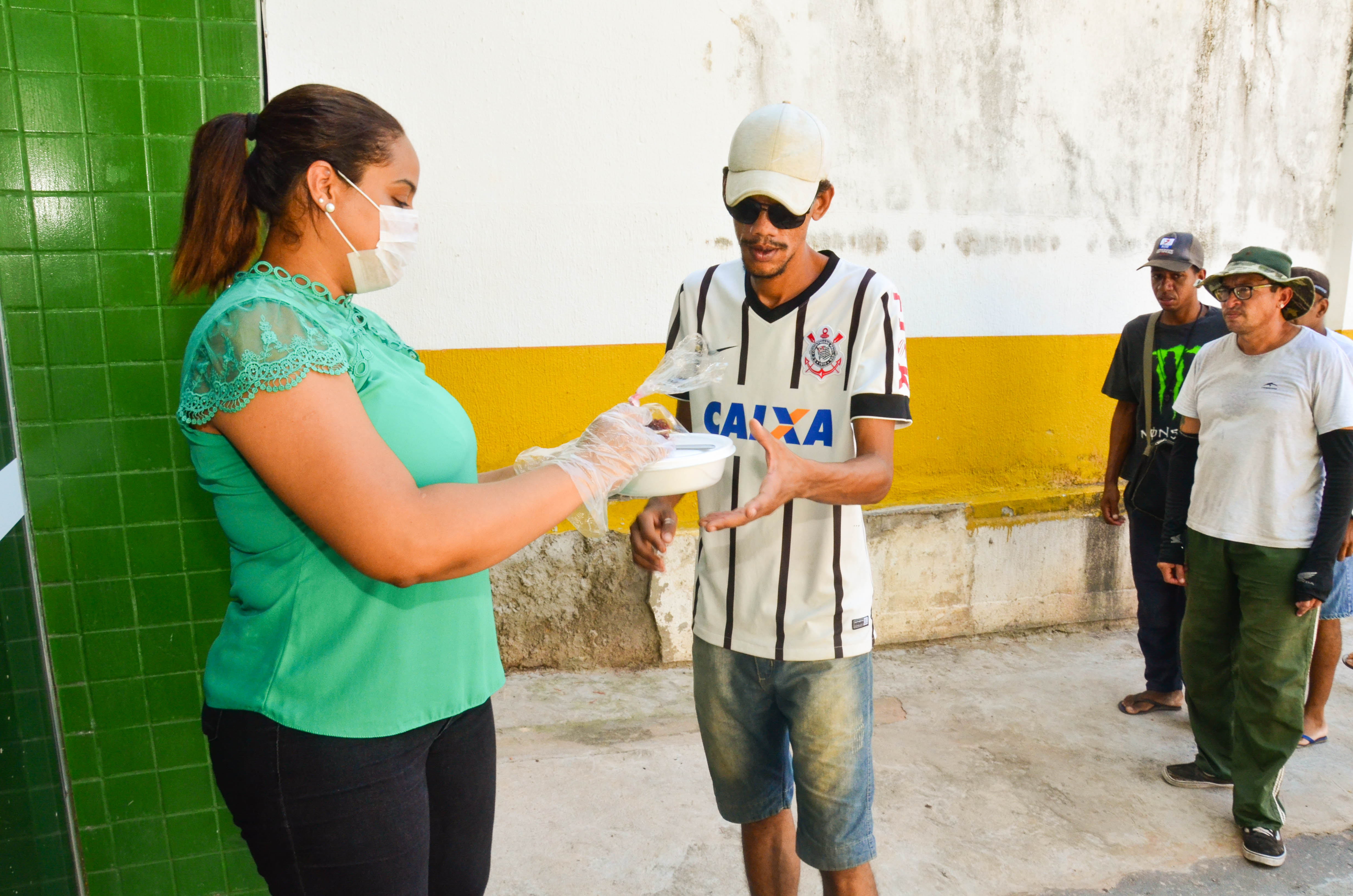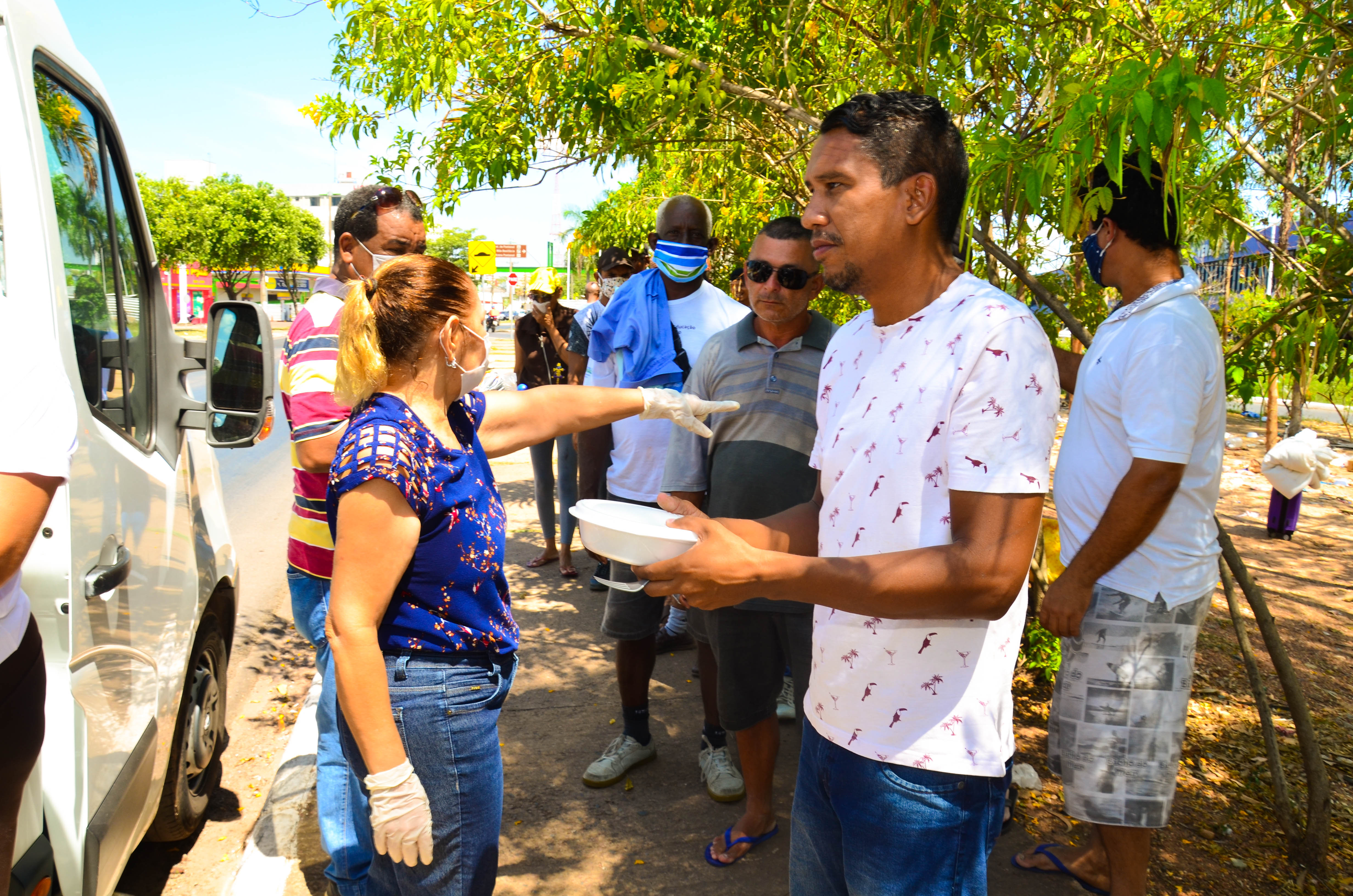 A equipe de abordagem da Secretaria de Assistência Social, Direitos Humanos e da Pessoa com Deficiência em parceria com o Restaurante Popular preparou 500 refeições que foram distribuídas aos moradores em situação de rua, grupos vulneráveis e ambulantes nesse domingo de Páscoa (12).