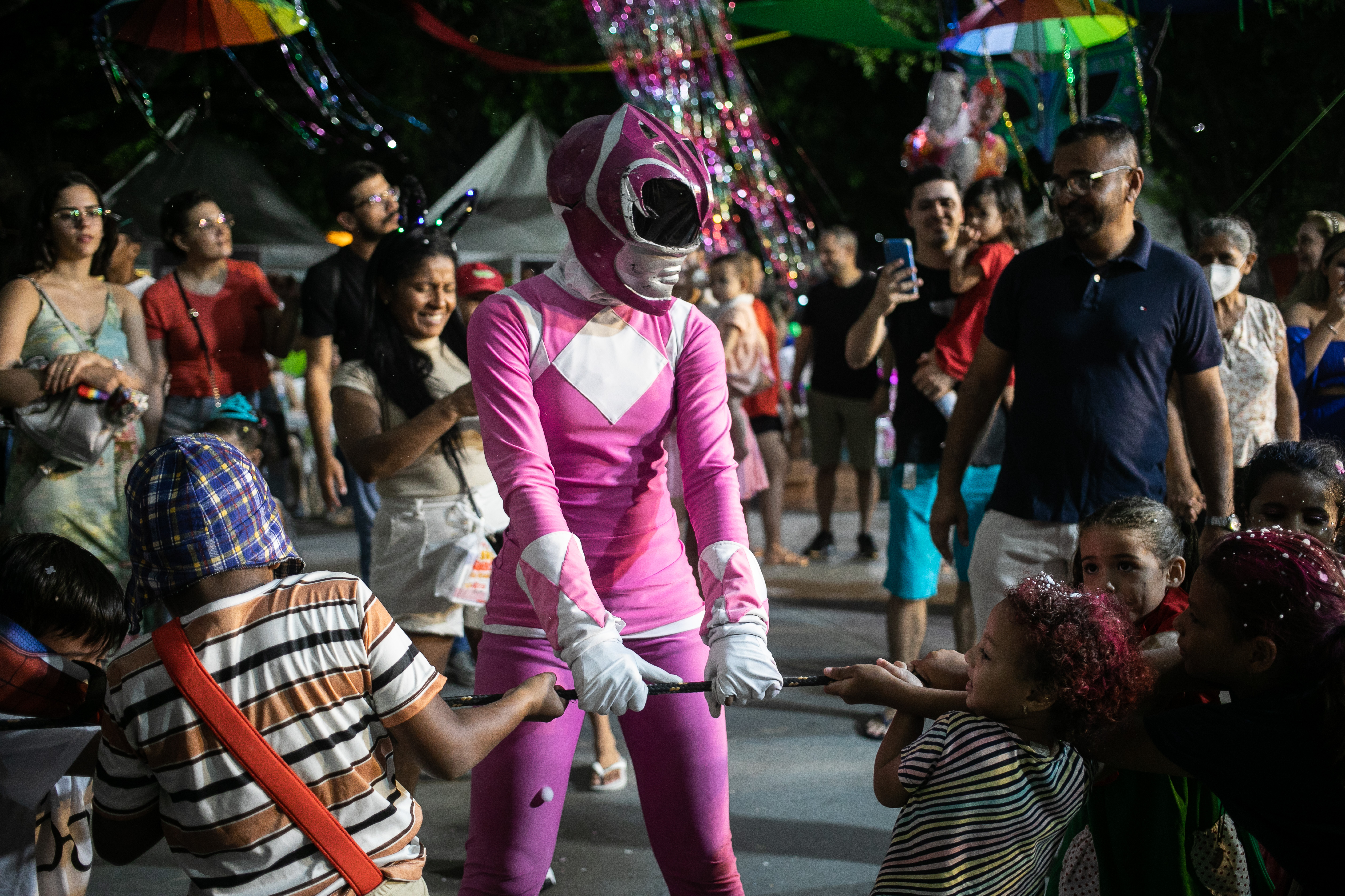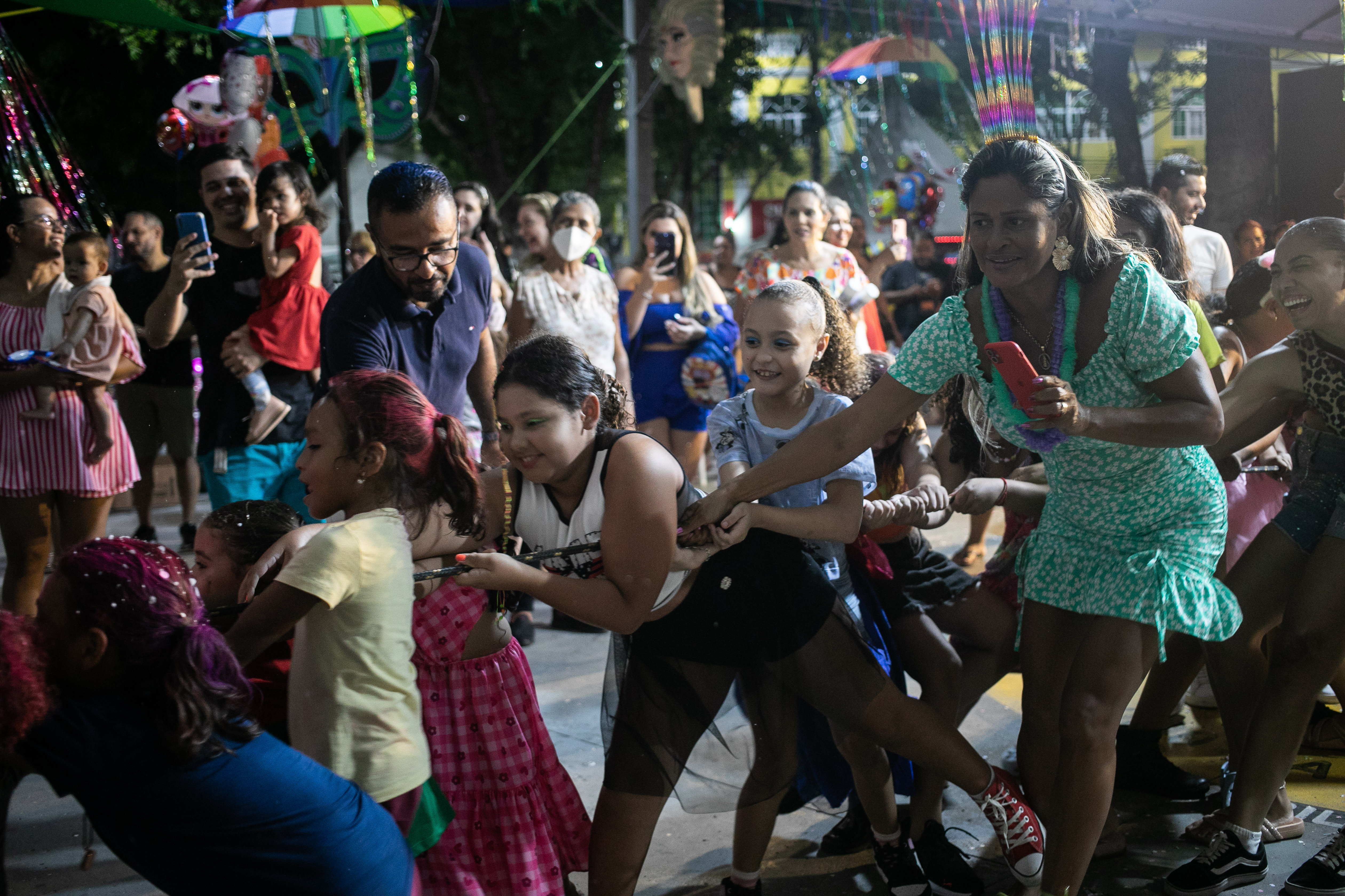 A empresária Maysa Marques, de 35 anos, acompanhada de sua mãe e seus dois filhos pequenos, um de dois anos e outro de cinco, compartilhou sua experiência morando próxima à Praça Oito de Abril. Ela destacou a facilidade de acesso e a segurança proporcionada pela festa promovida pela Prefeitura, aproveitando todos os dias de folia. "Tudo muito bem organizado. Meus filhos adoraram, especialmente quando viram o grupo infantil da Tia Hanna e sua turma. Parabéns aos organizadores. Foi tudo perfeito", comentou.