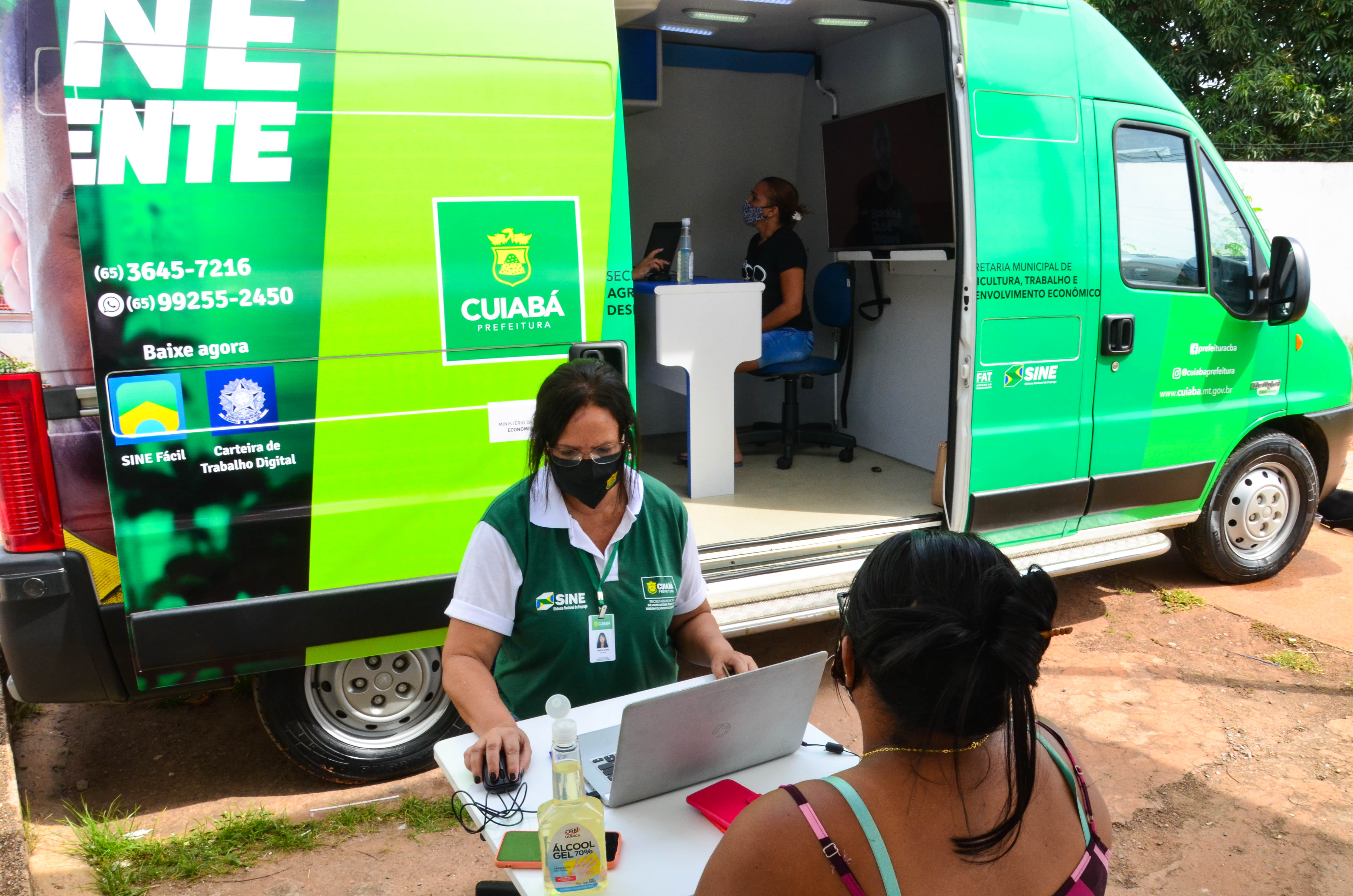 A ação Sine da Gente é executada pela Secretaria de Agricultura, Trabalho e Desenvolvimento Econômico e integra o Pra Frente Cuiabá, um programa multissetorial executado também pela Pasta em parceria com Núcleo da primeira-dama Márcia Pinheiro, Secretaria de Assistência Social, Direitos Humanos e da Pessoa com Deficiência e Secretaria da Mulher.