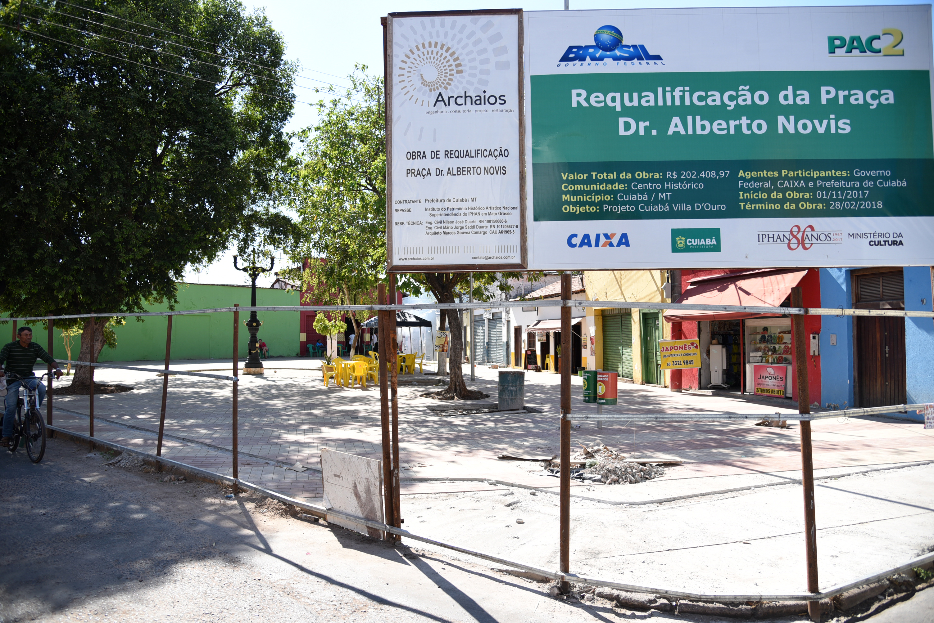 Em breve mais uma praça que vai valorizar o Centro Histórico da Capital será entregue à população. A Prefeitura de Cuiabá deverá entregar, até o dia 10 de agosto, a obra da Praça Doutor Alberto Novis, localizada entre as Ruas Campo Grande e Sete de Setembro. A requalificação do espaço público faz parte do conjunto de 16 ações aprovadas para Cuiabá pelo do Programa de Aceleração do Crescimento (PAC Cidades Históricas), atual “Agora é Avançar” do Ministério da Cultura. A obra está sendo feita em parceria com o Instituto do Patrimônio Nacional (IPHAN).