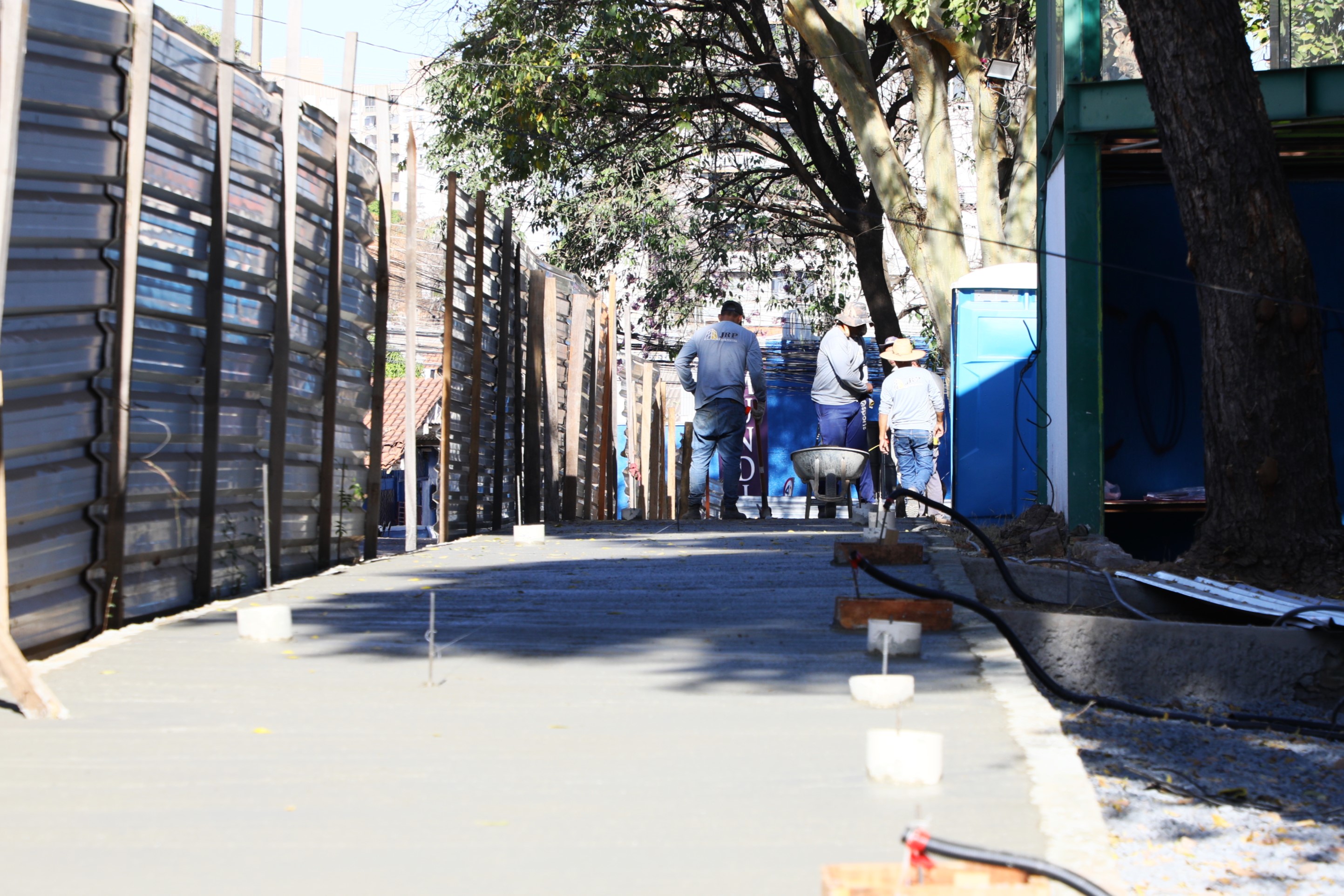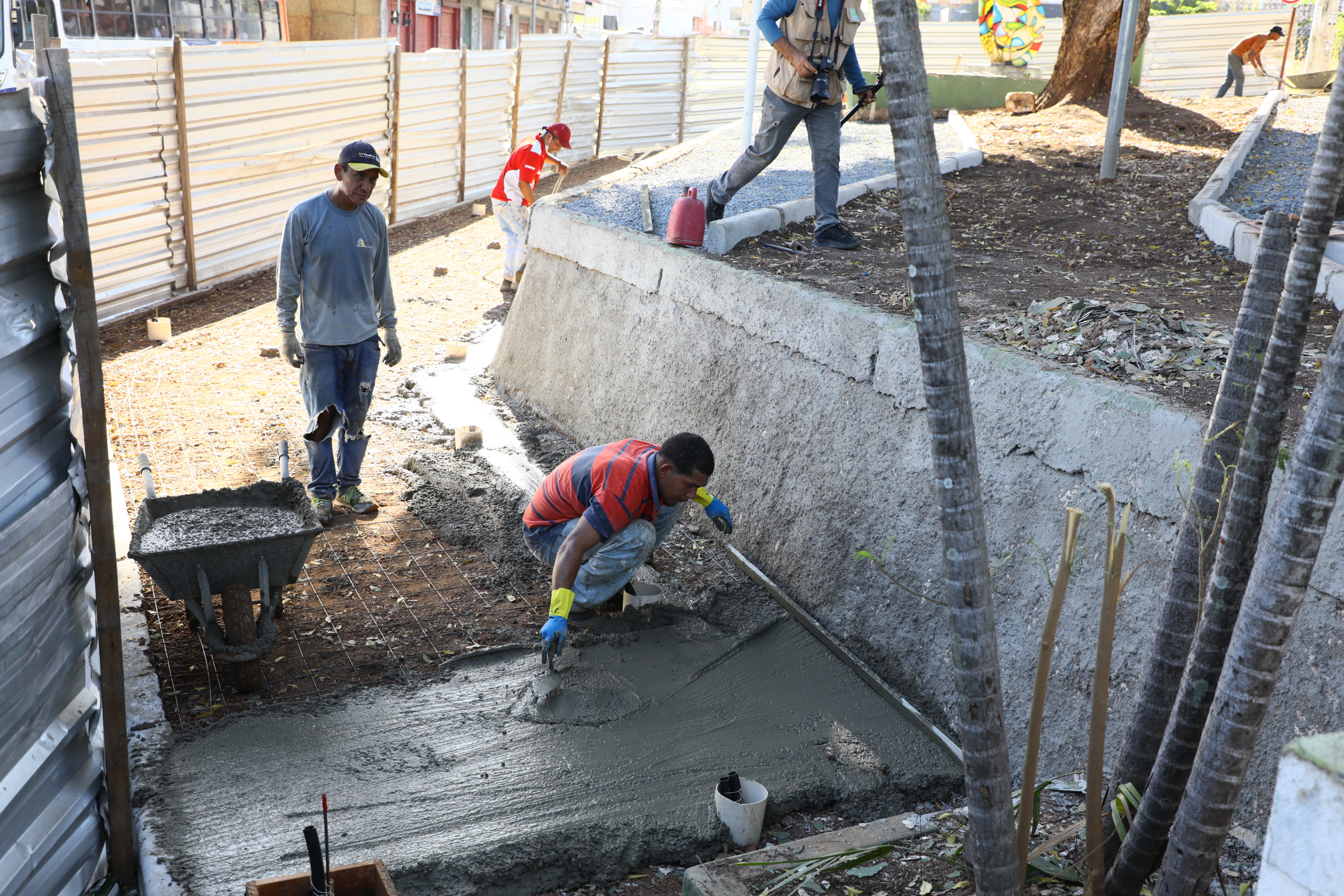 O trabalho está acelerado, incluindo a demolição de praticamente toda a praça e a remoção do material do local, abrindo espaço para receber uma nova roupagem, inclusive o piso. A praça já recebeu o novo meio-fio, dando uma noção de que os espaços ganharão novos cenários com jardinagem.
