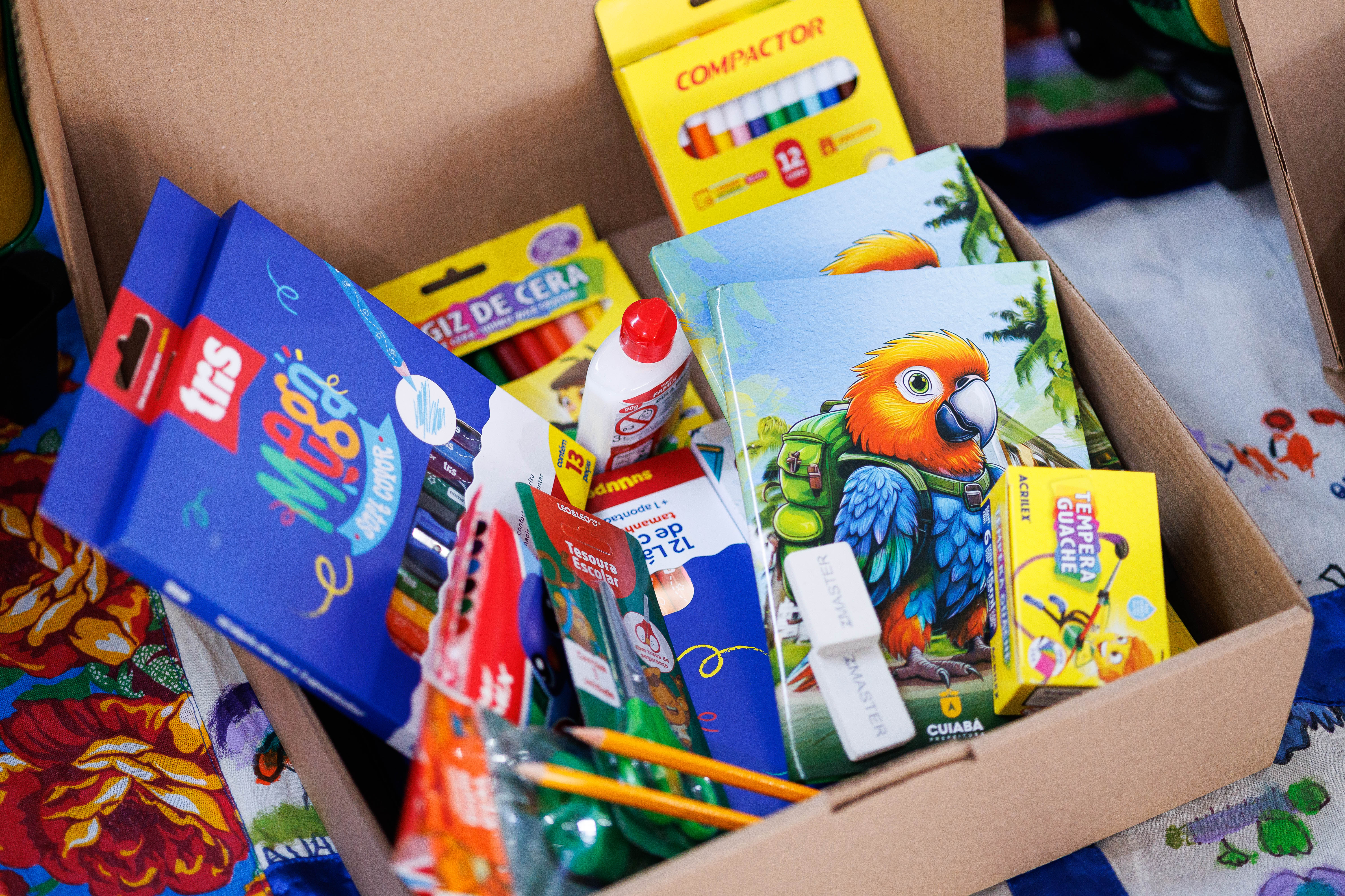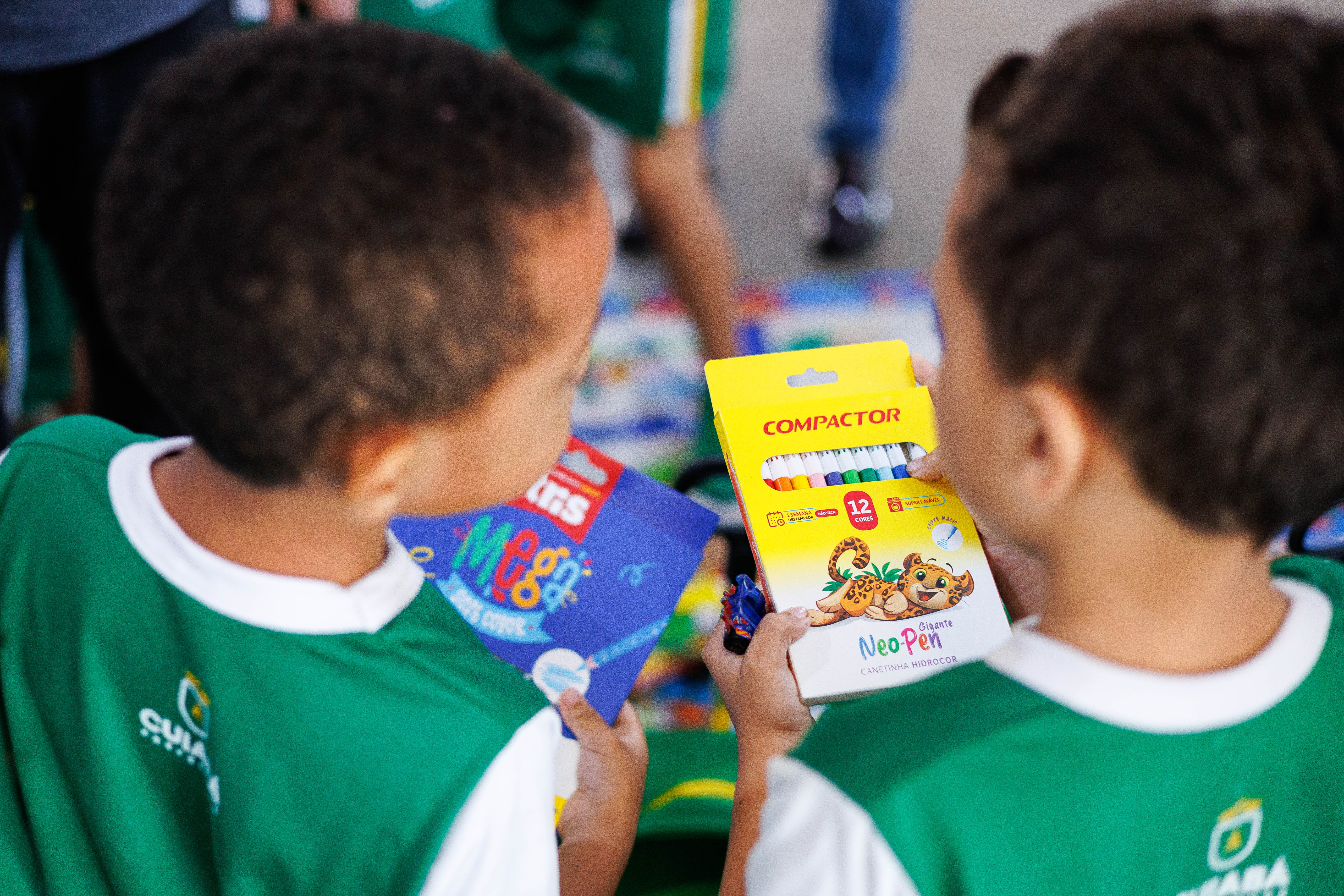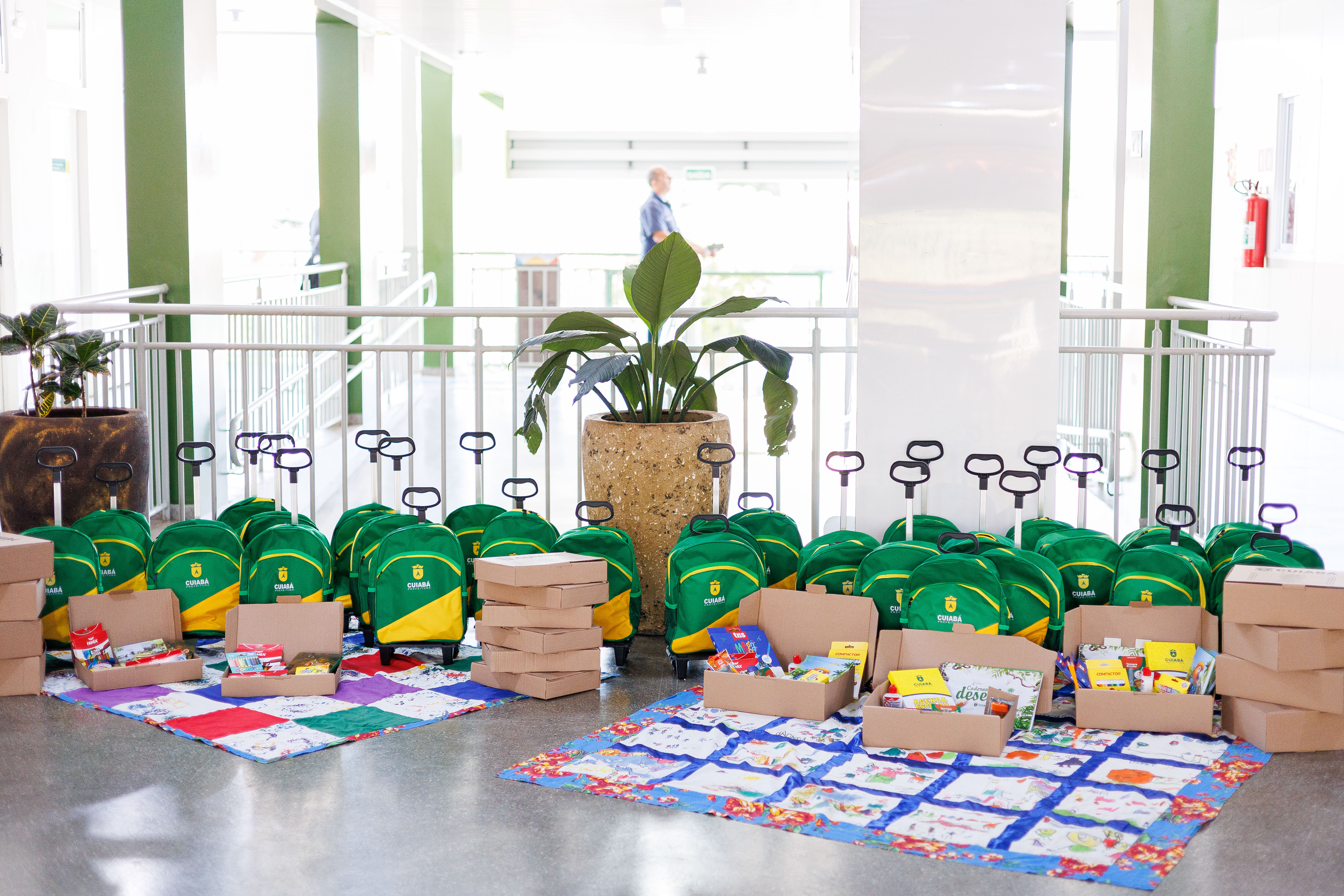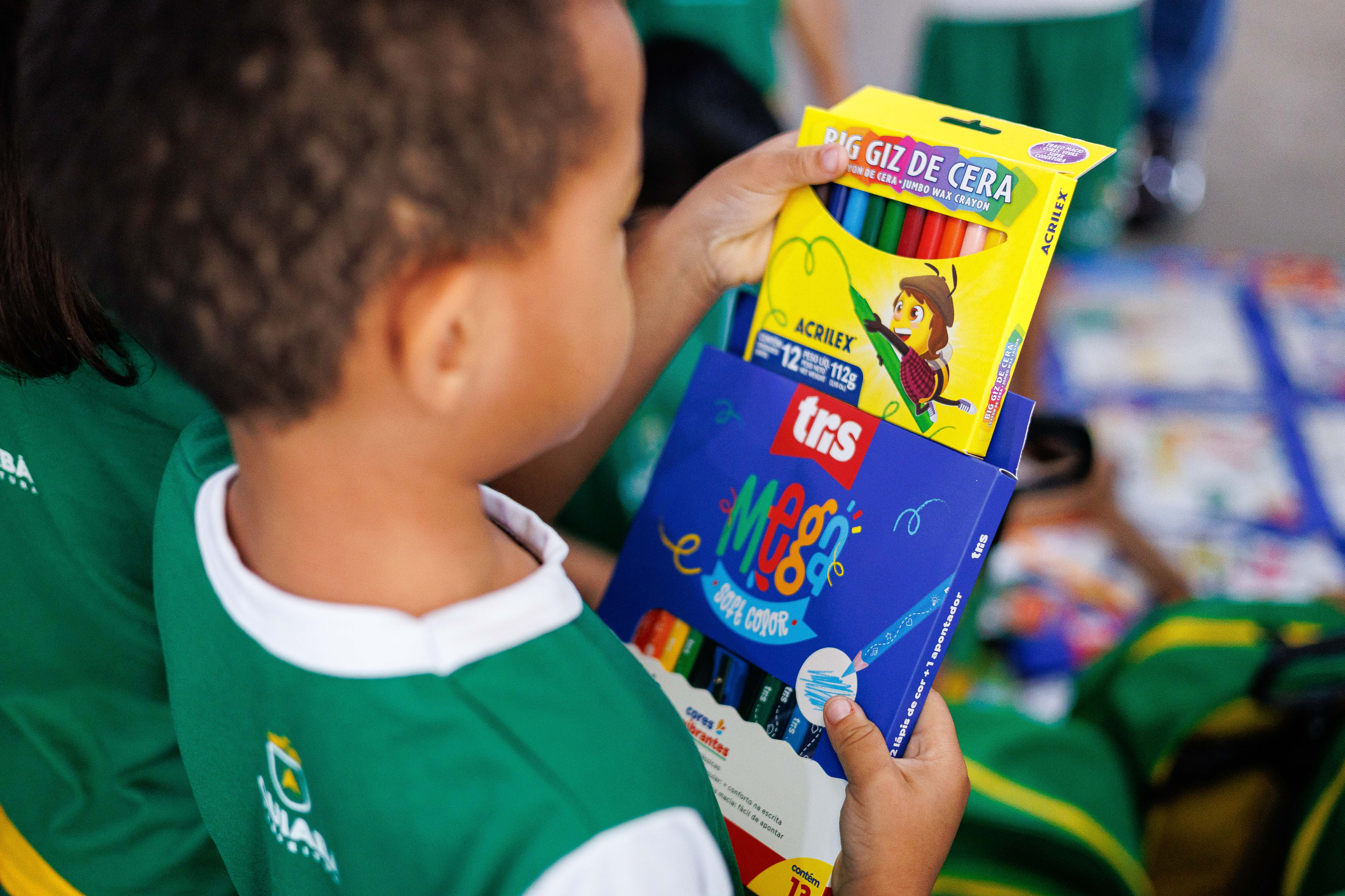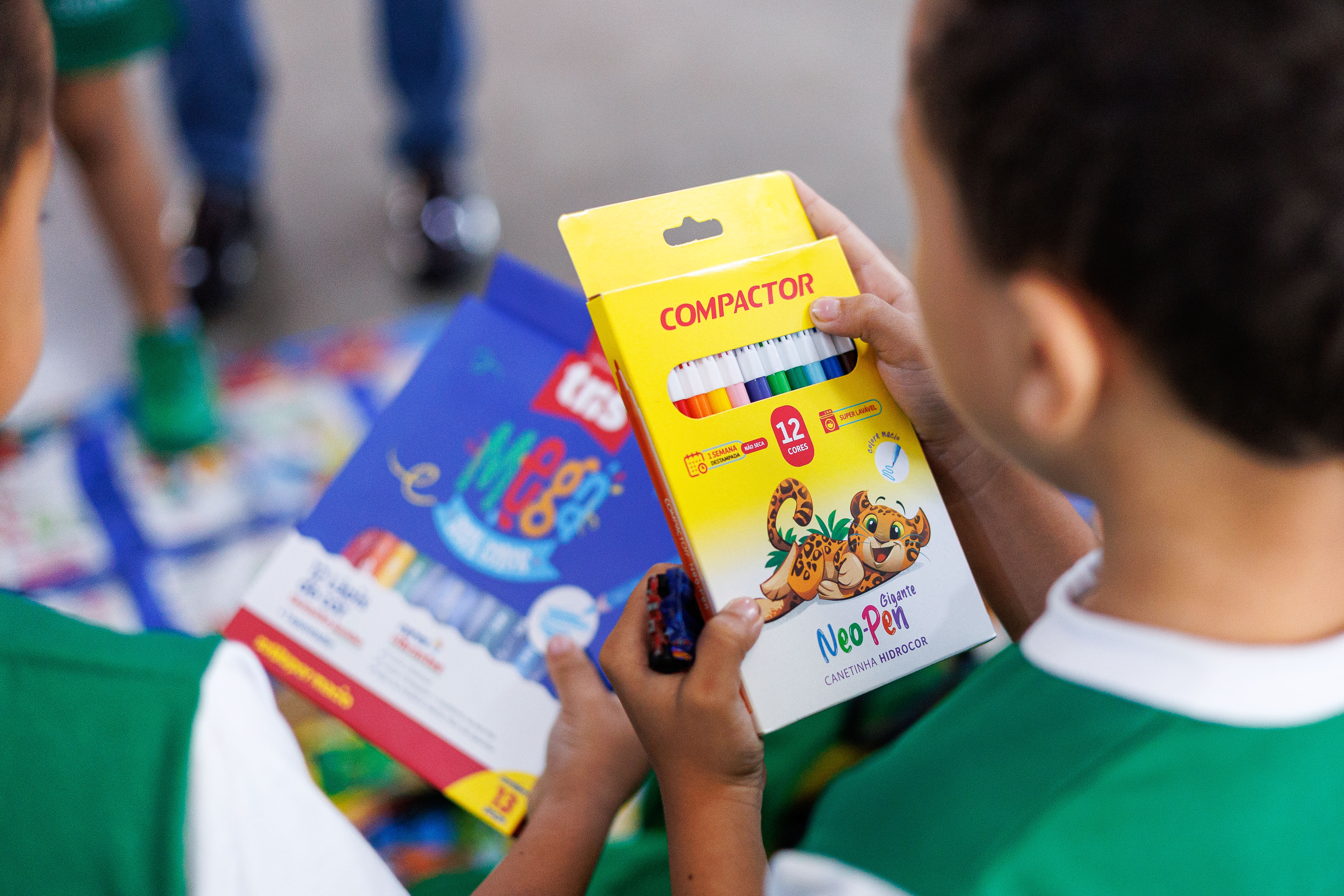 A entrega dos kits contempla itens como mochila, cadernos, estojo, lápis, canetas, entre outros, e varia de acordo com a faixa etária dos estudantes. Além de materiais adequados, os kits foram elogiados por sua qualidade.