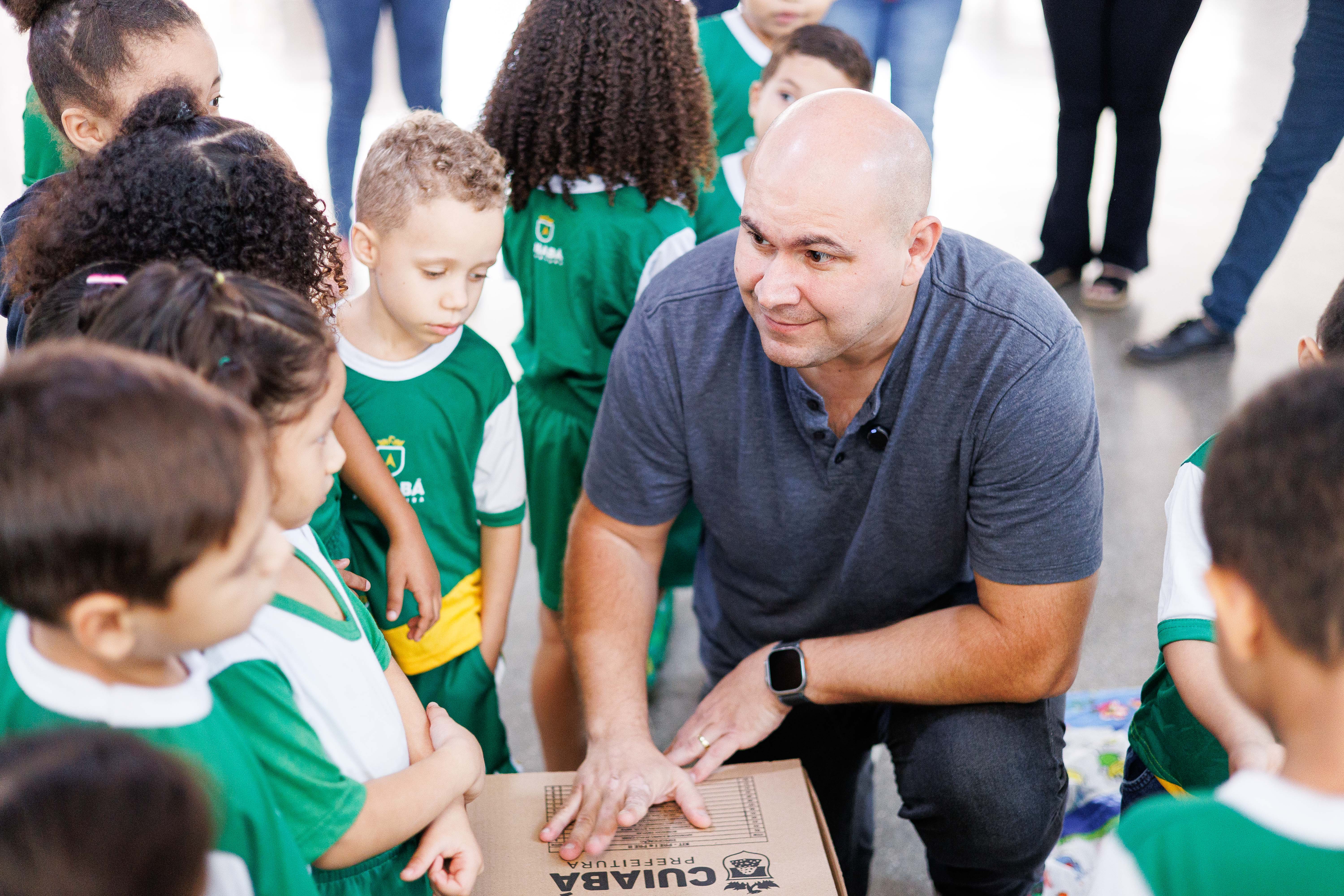 O prefeito de Cuiabá, Abilio Brunini, acompanhou nesta quinta-feira (12) mais uma etapa da entrega de kits escolares, desta vez na Escola Municipal de Educação Básica (Emeb) Augusto Mário. A iniciativa integra o cronograma de distribuição dos materiais para os mais de 62 mil alunos da rede pública da capital.