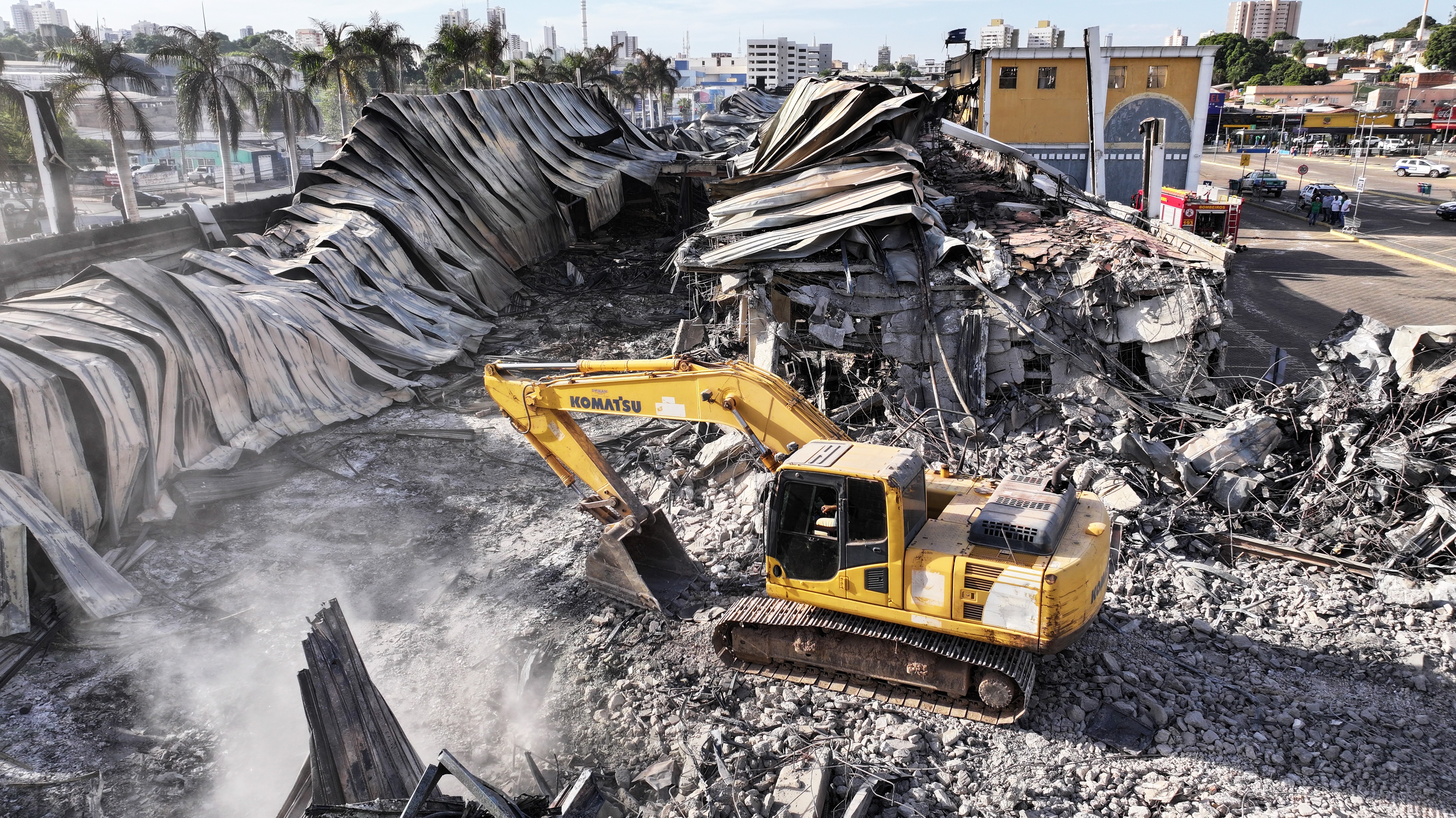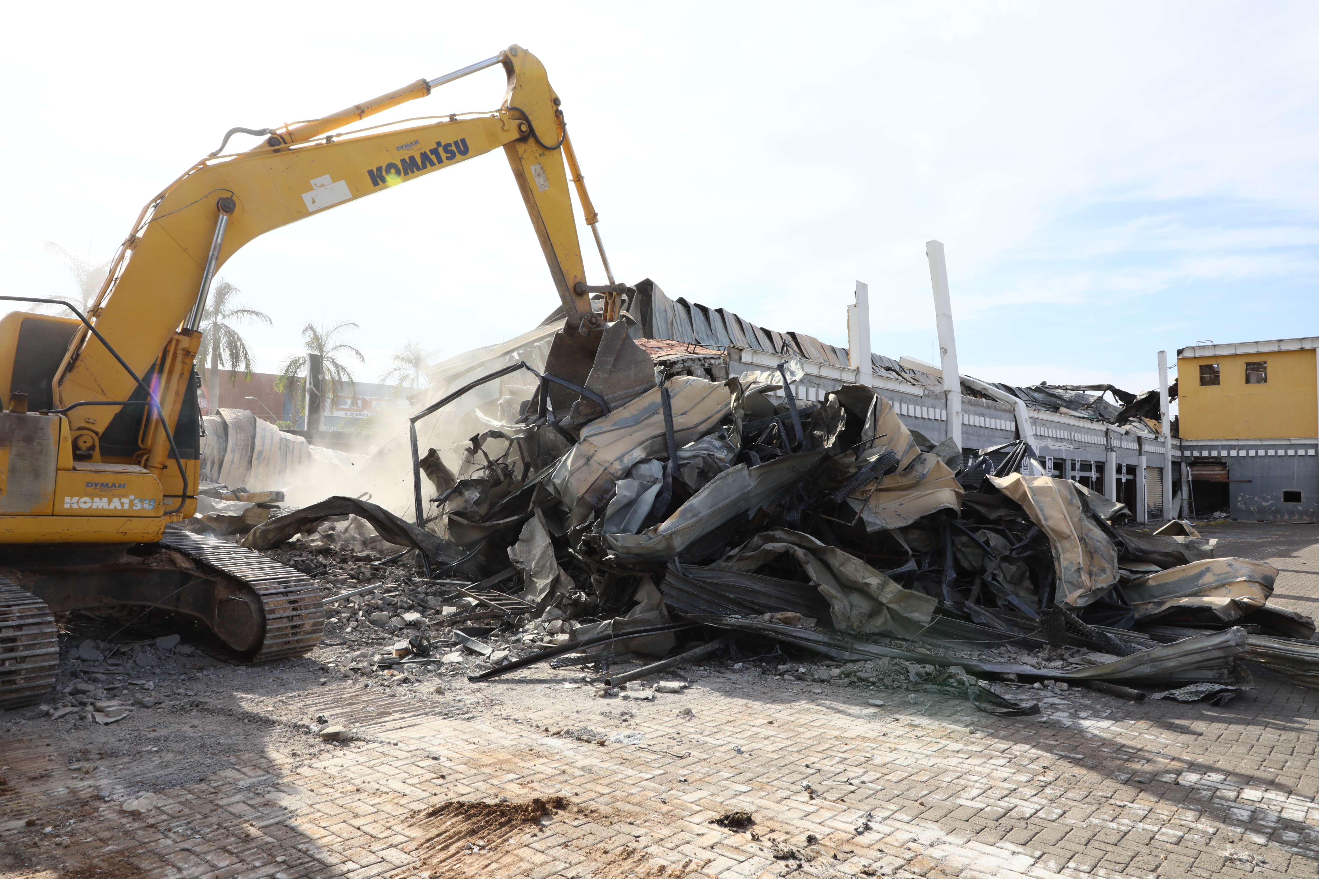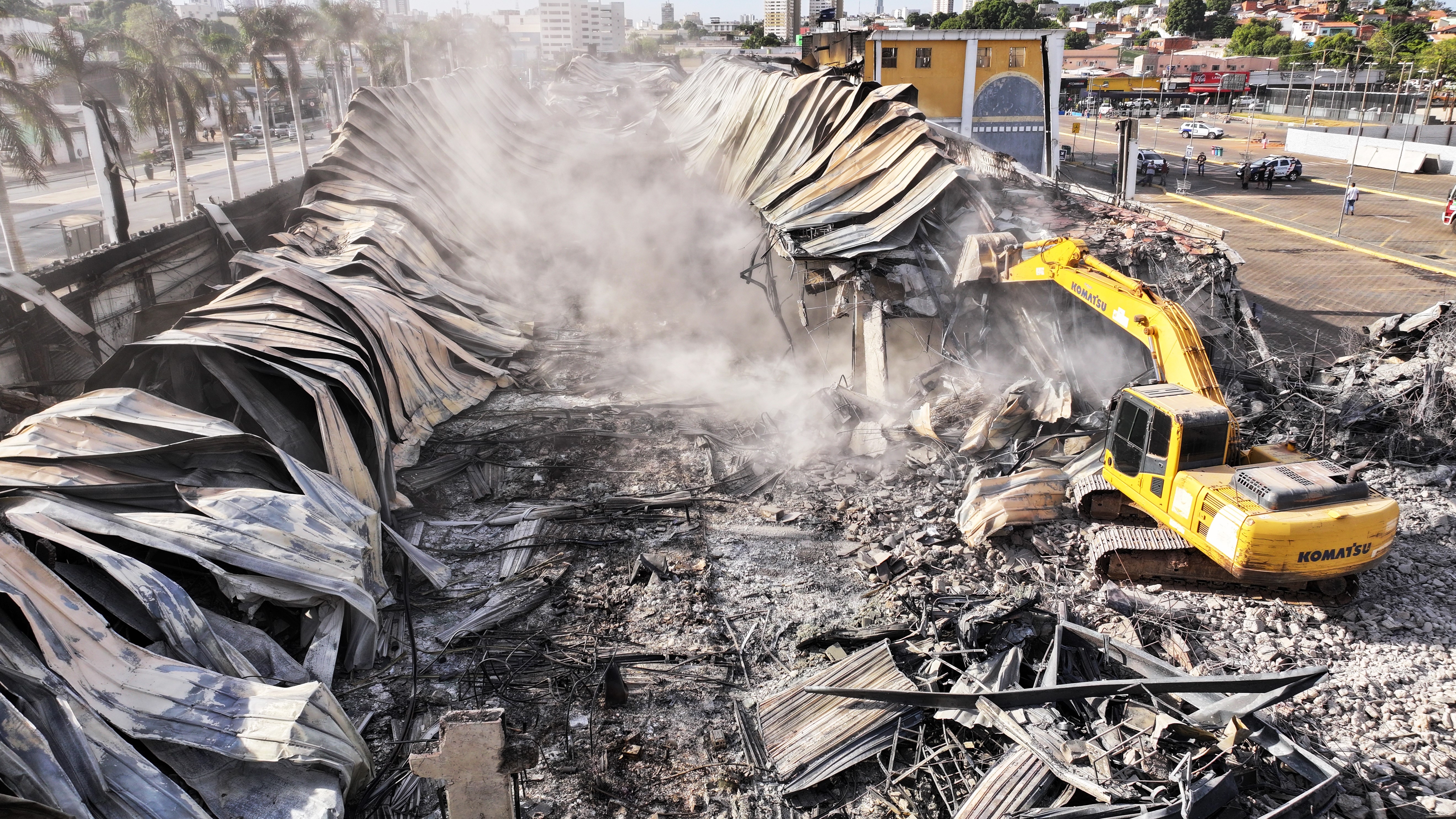 O prefeito de Cuiabá, Emanuel Pinheiro, acompanhou o início dos trabalhos de viabilização de um acesso para as equipes do Corpo de Bombeiros que irão atuar no rescaldo dos focos de incêndio nas ruínas do Shopping Popular, devastado pelas chamas na madrugada de segunda-feira (15). Uma escavadeira da Secretaria Municipal de Obras atua no local, e todo o trabalho é acompanhado pela Defesa Civil de Cuiabá e coordenado pelo Corpo de Bombeiros de Mato Grosso. A próxima etapa será a remoção do que sobrou após as chamas, mas o processo ocorrerá somente após a solicitação do Corpo de Bombeiros e liberação da Perícia Oficial e Identificação Técnica do Estado de Mato Grosso (Politec).